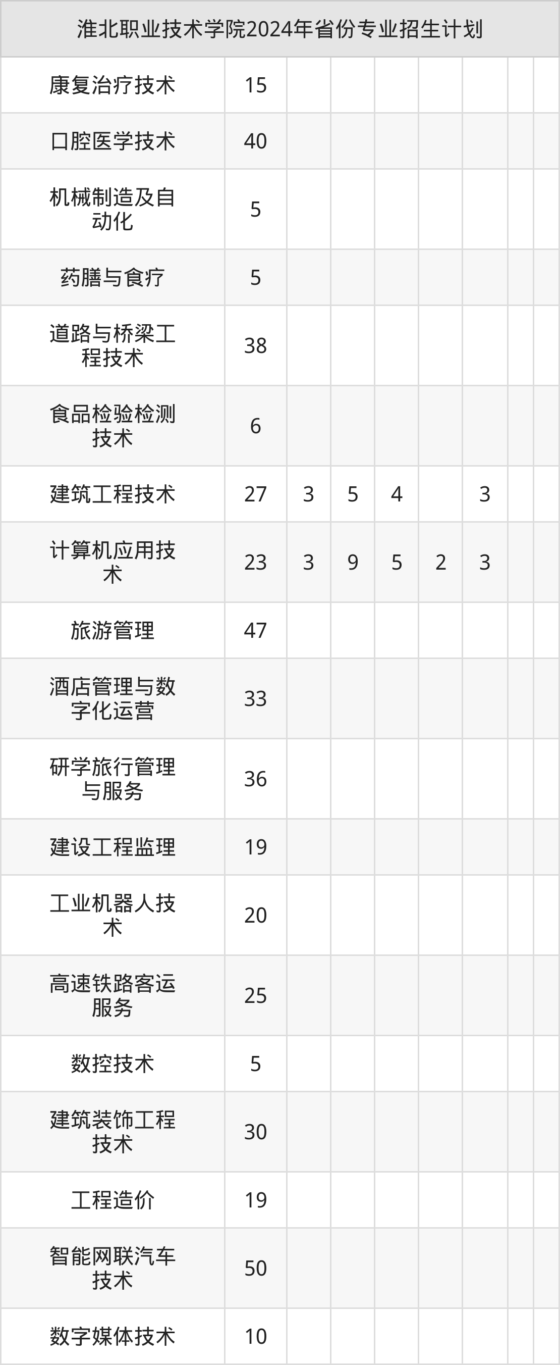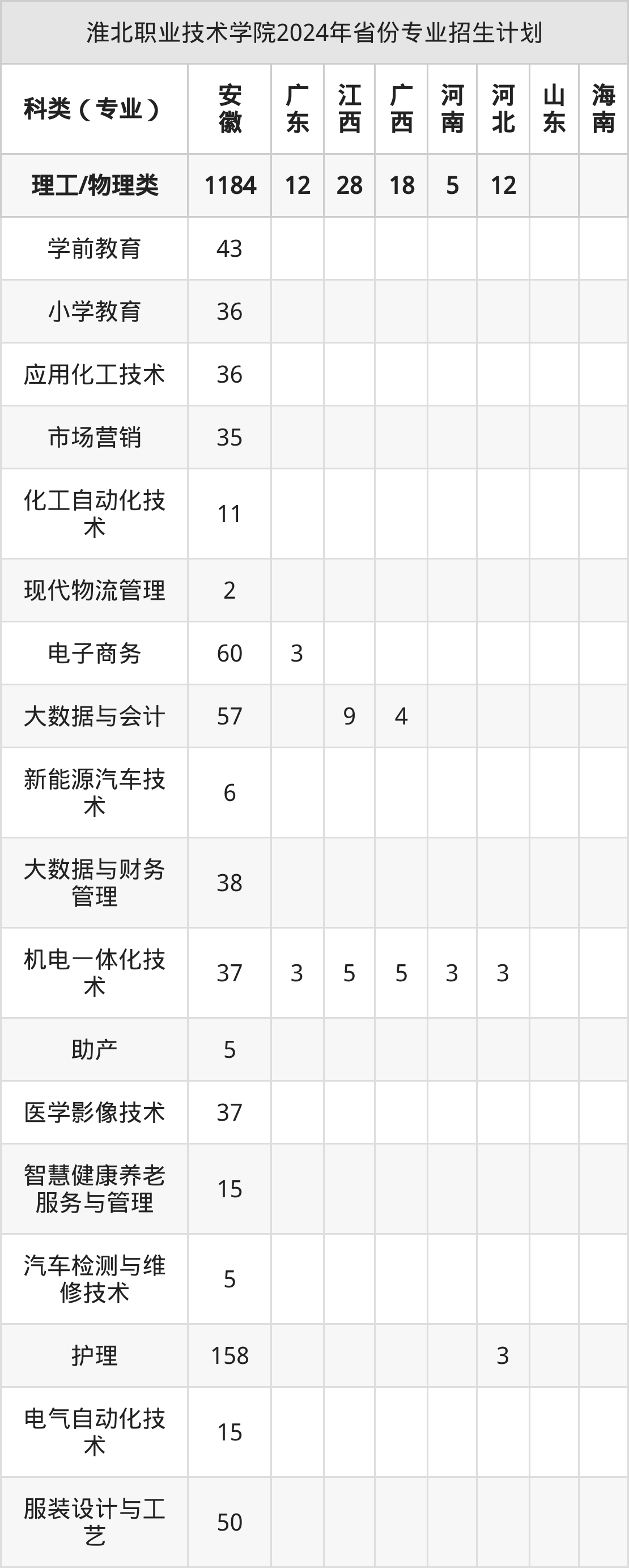 2025年淮北职业技术学院专科招生计划待公布,下面附上2024年数据,暂供参考: