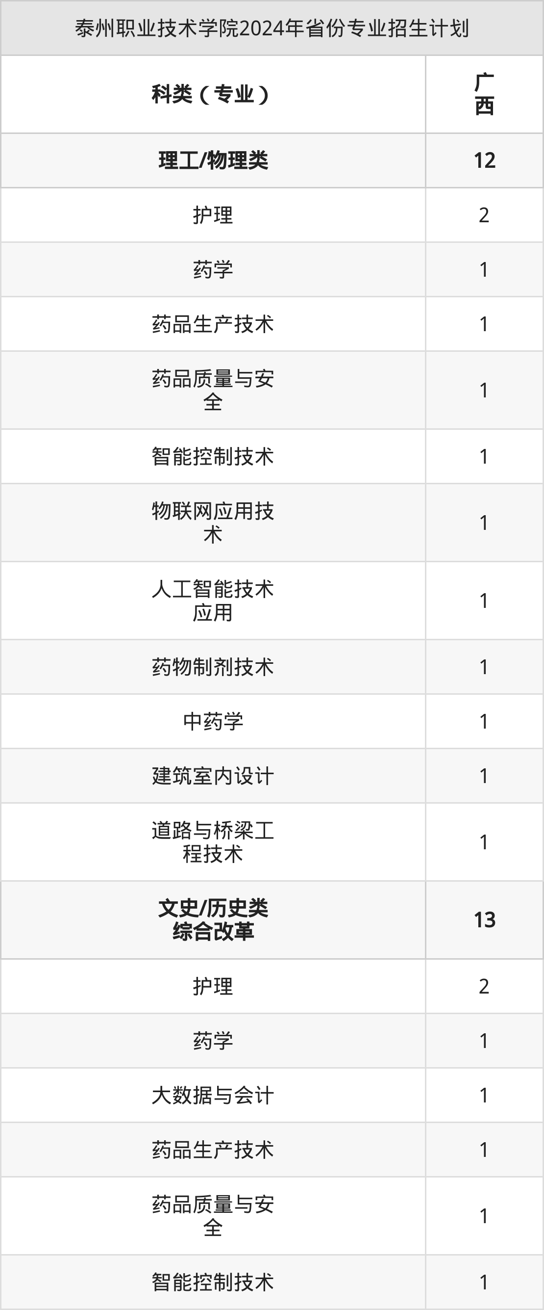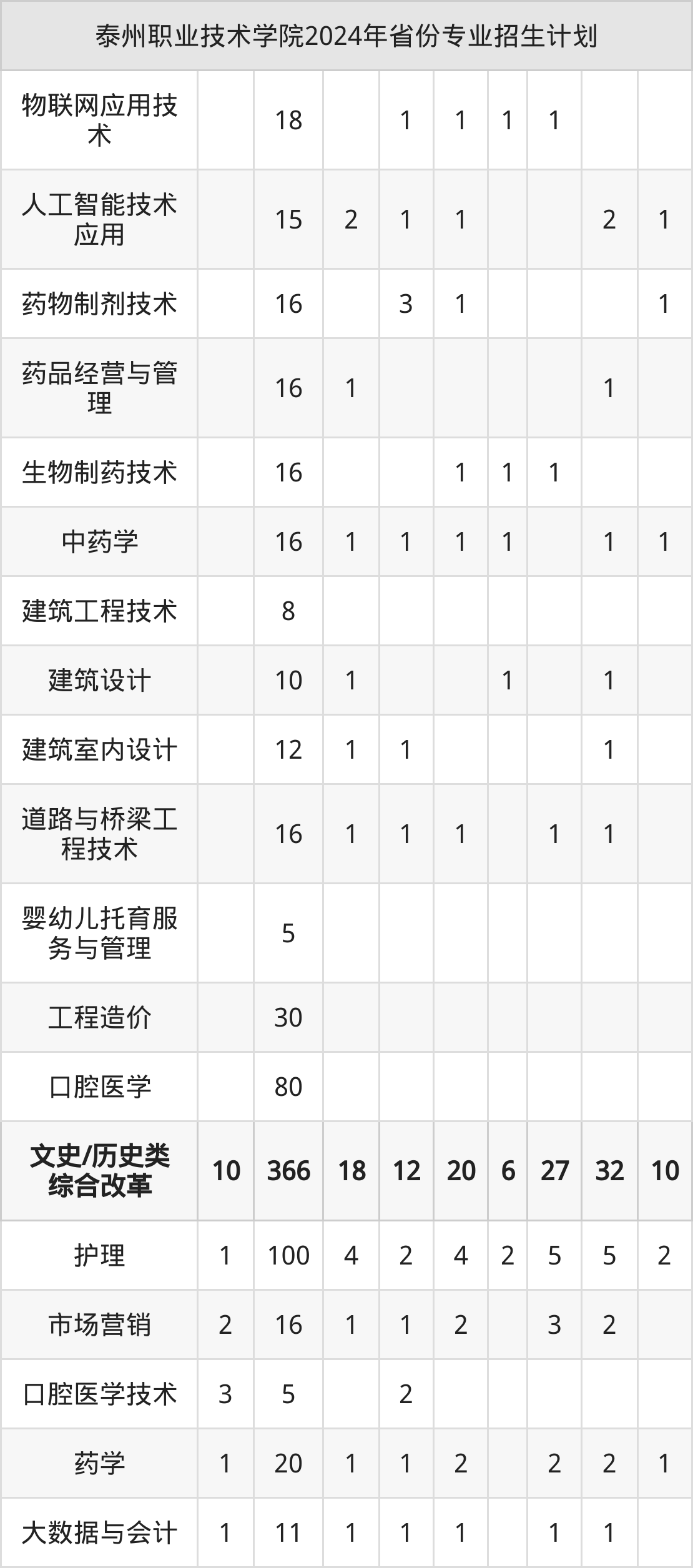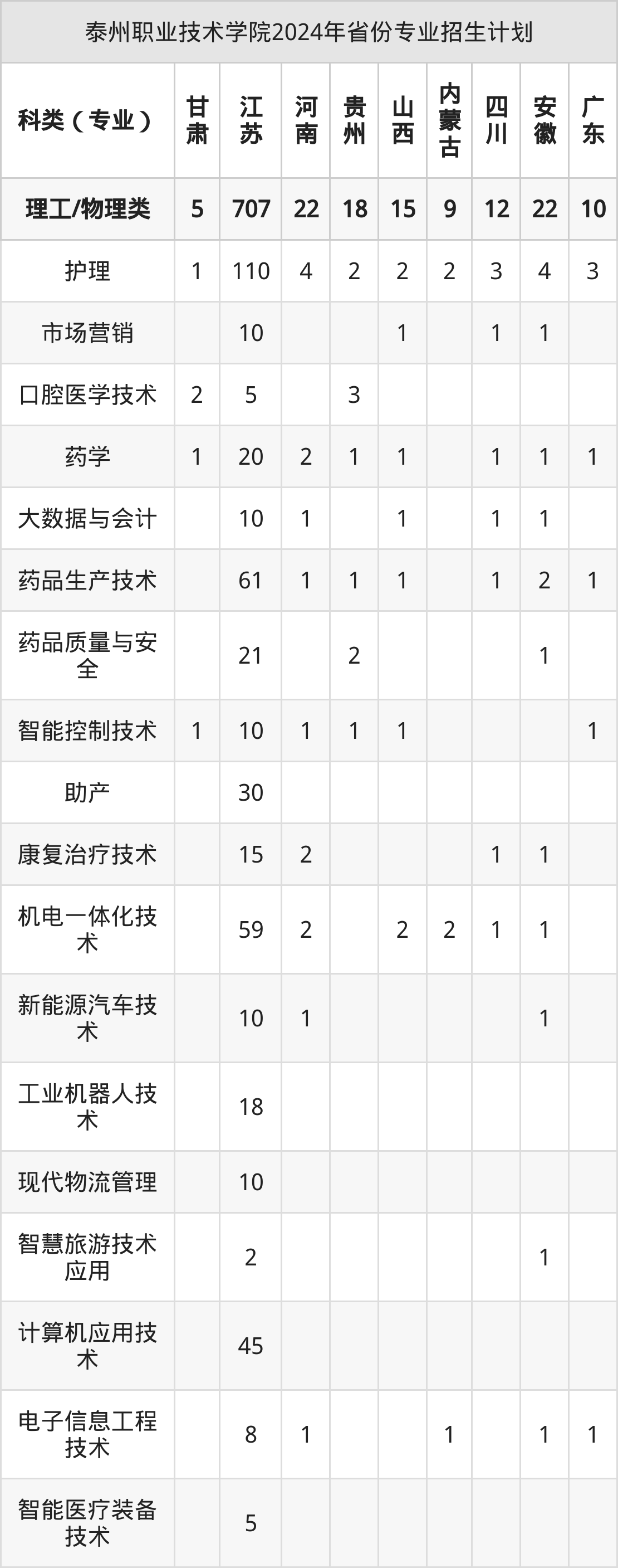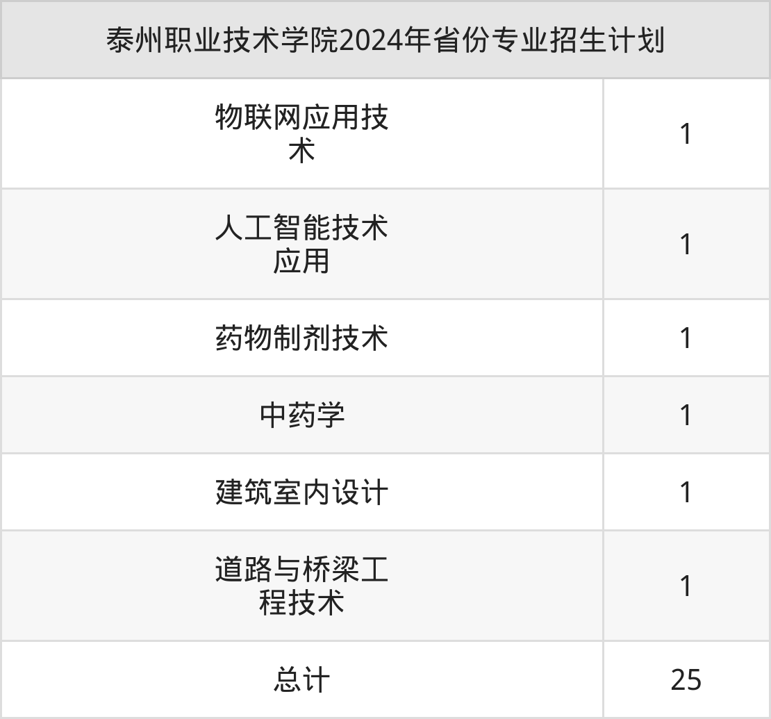2025年泰州职业技术学院专科招生计划待公布,下面附上2024年数据,暂供参考: