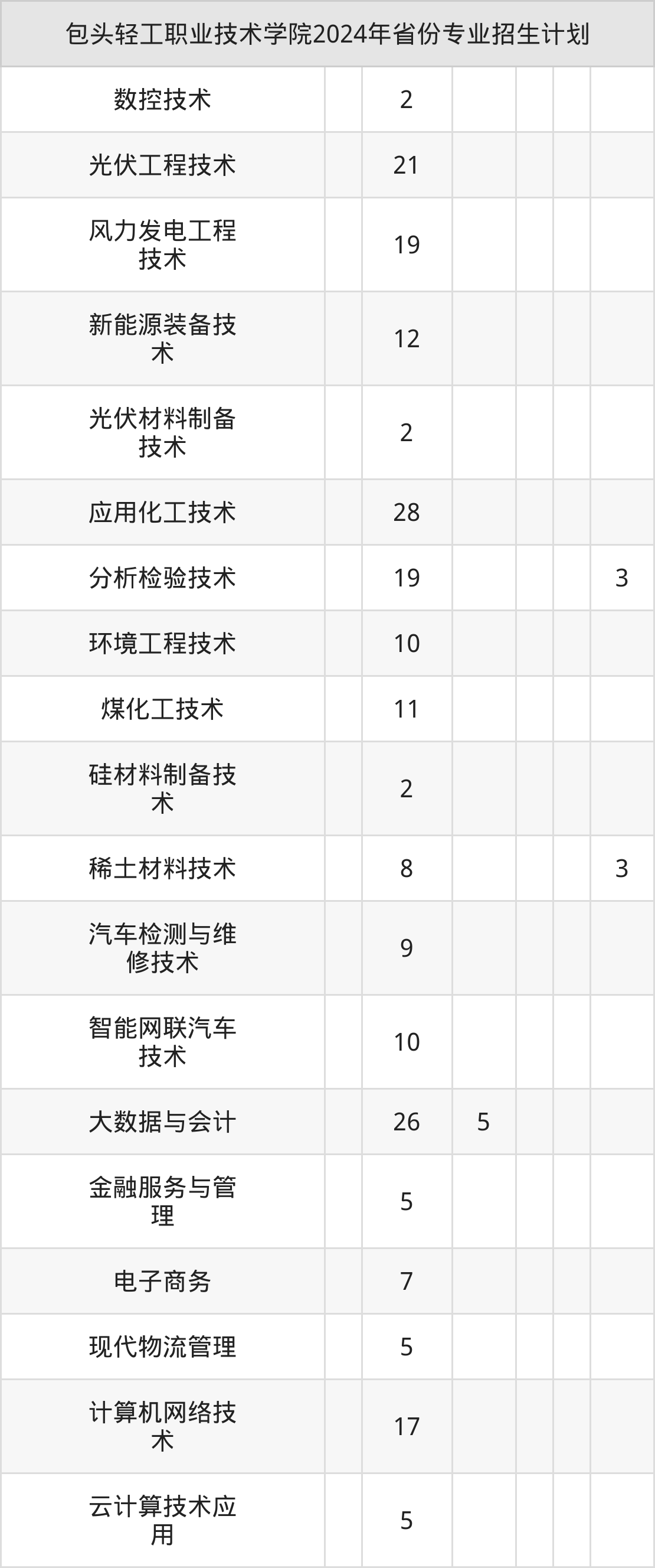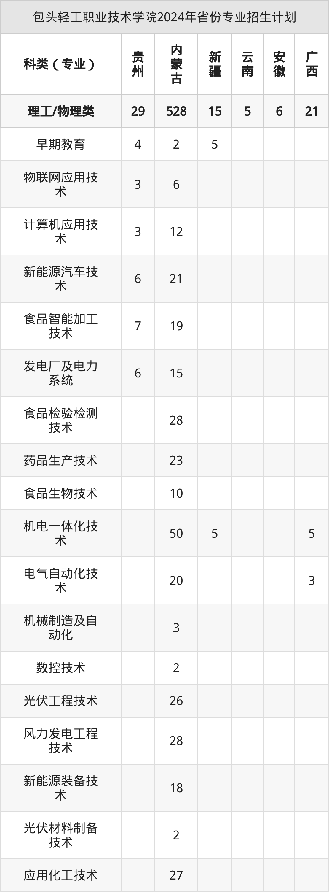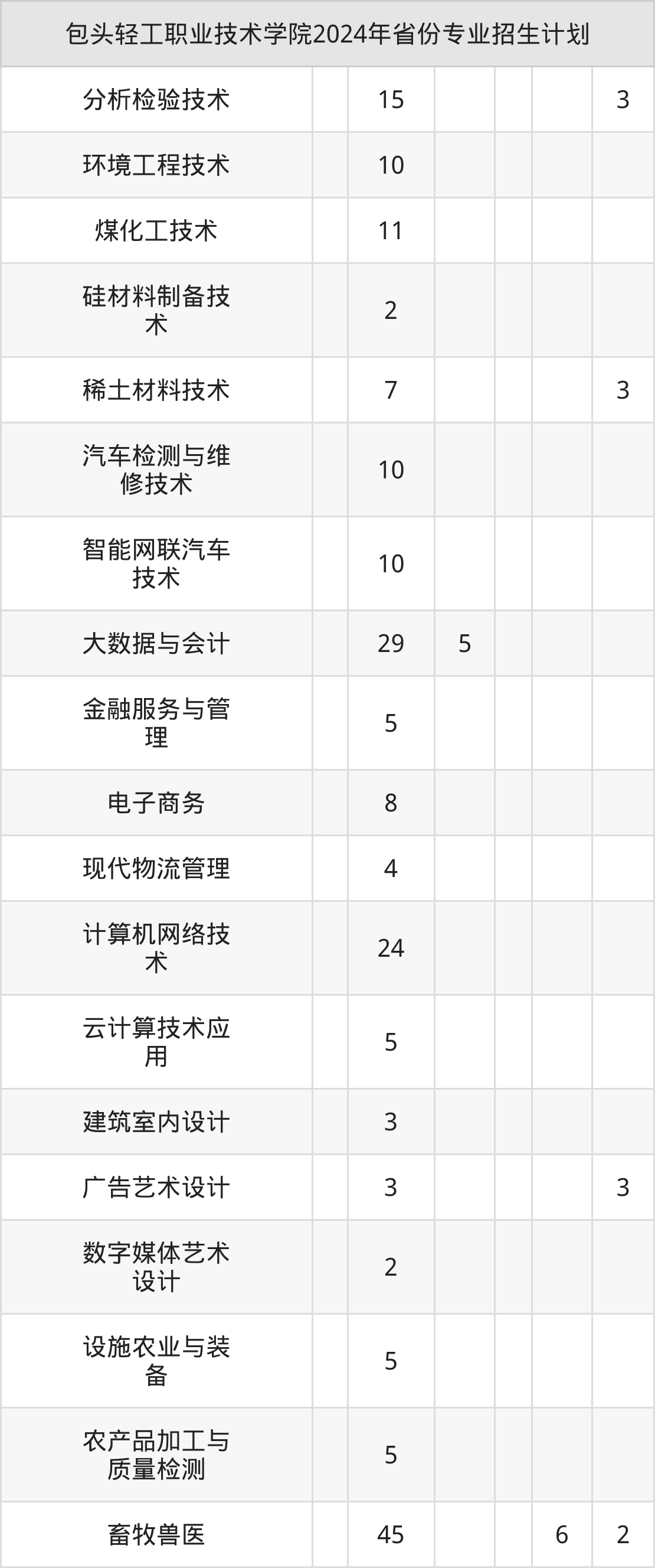 2025年包头轻工职业技术学院专科招生计划待公布,下面附上2024年数据,暂供参考: