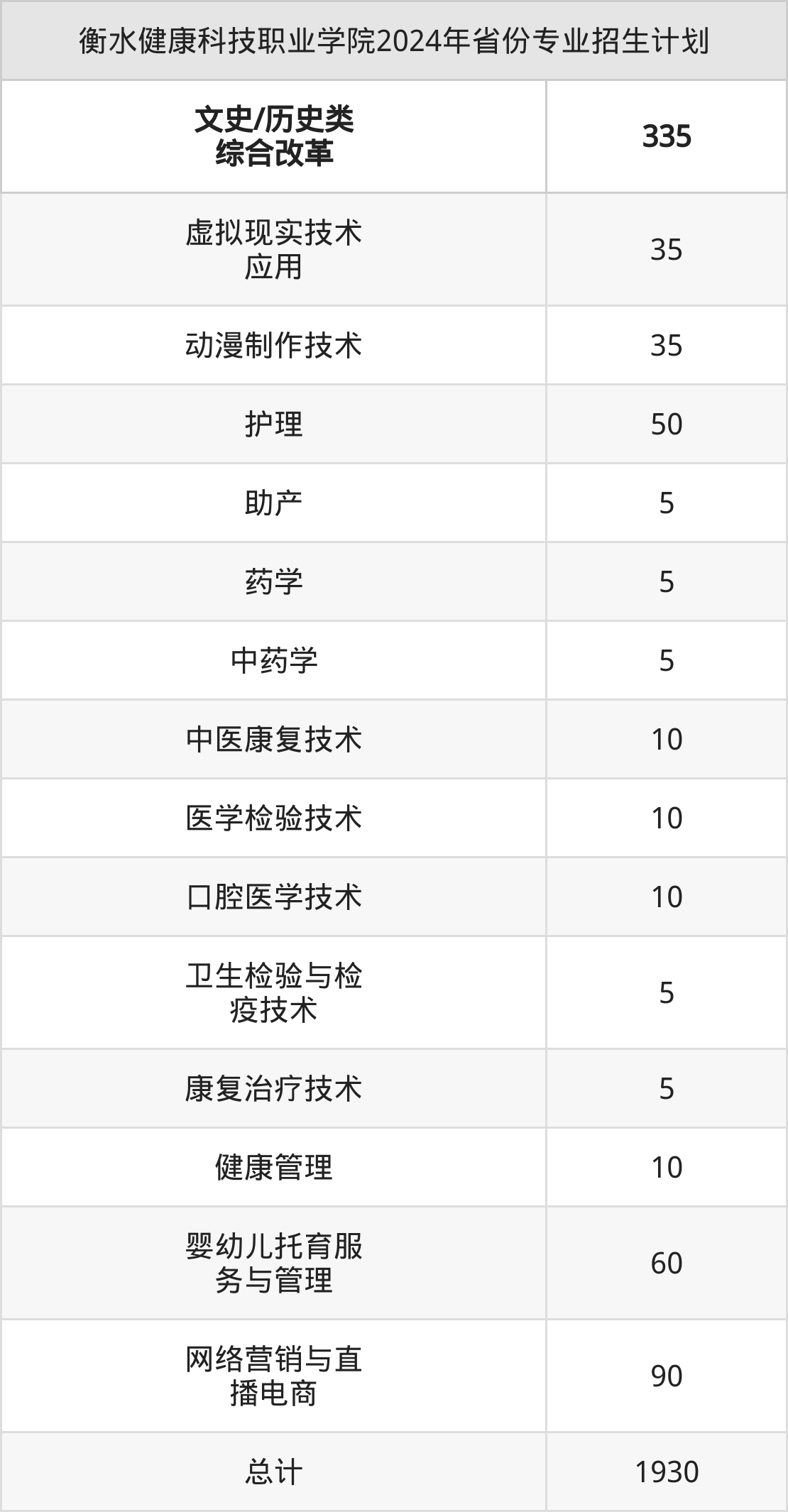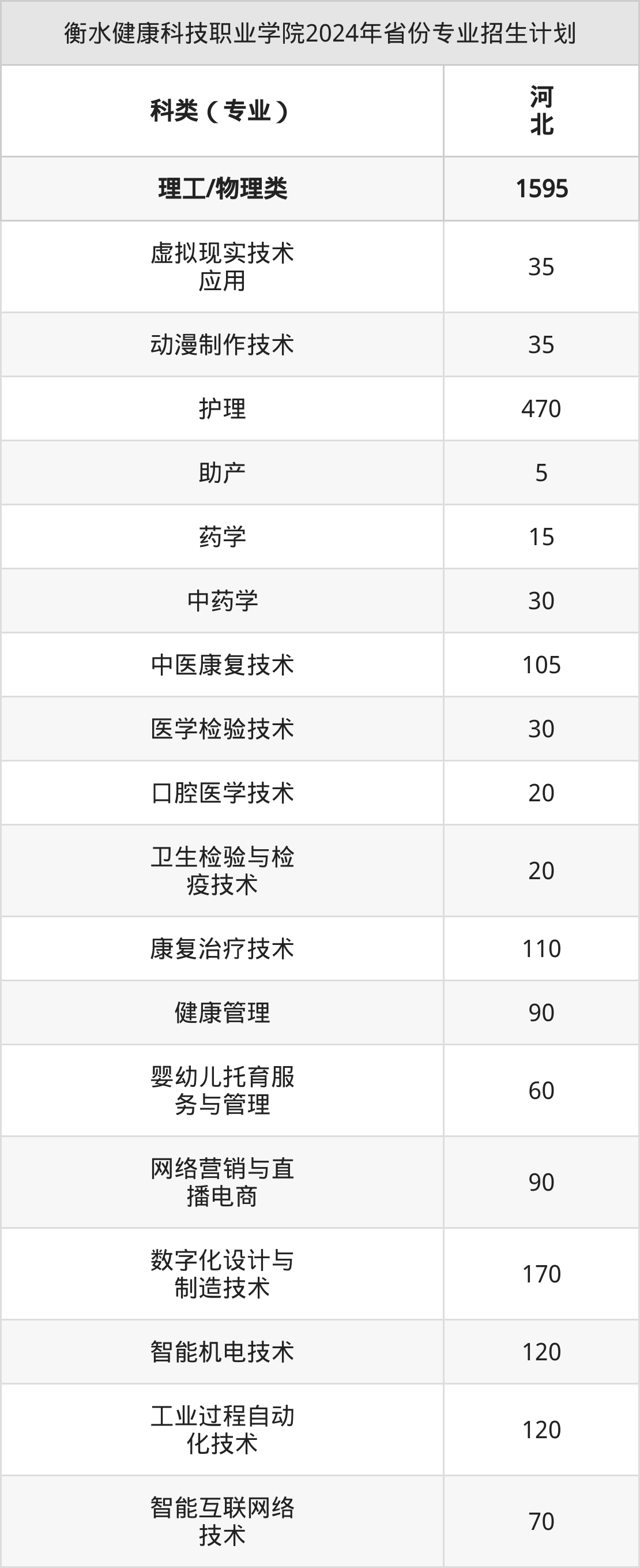 2025年衡水健康科技职业学院专科招生计划待公布,下面附上2024年数据,暂供参考: