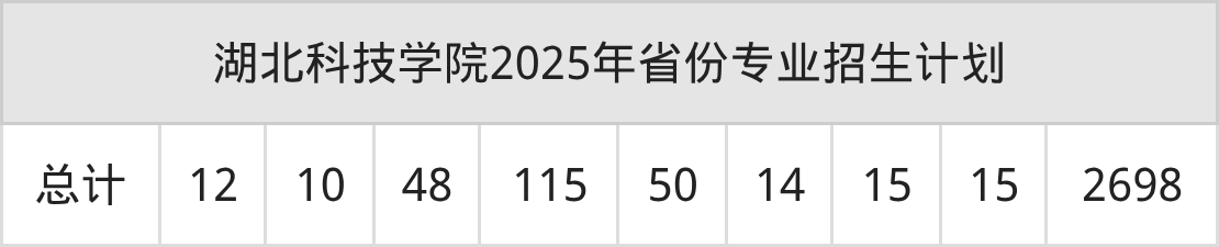 2026年湖北科技学院本科招生计划待公布,下面附上2025年数据,暂供参考: