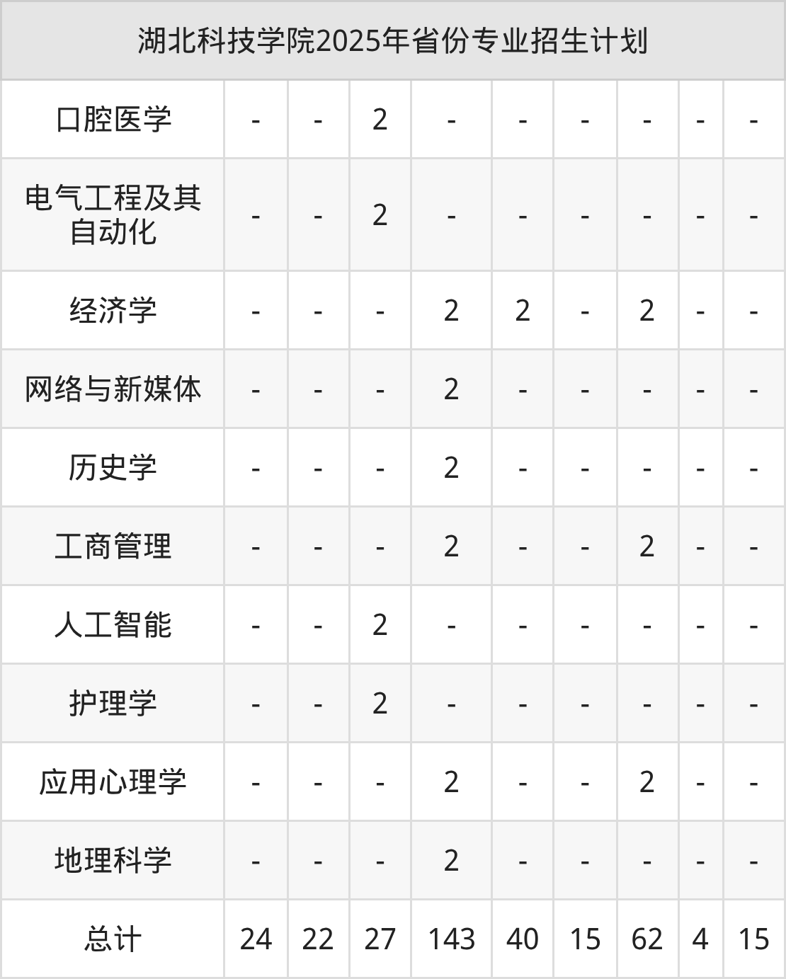 而各省份的招生计划数为河北22人,湖南143人,重庆15人,辽宁10人,新疆14人等。