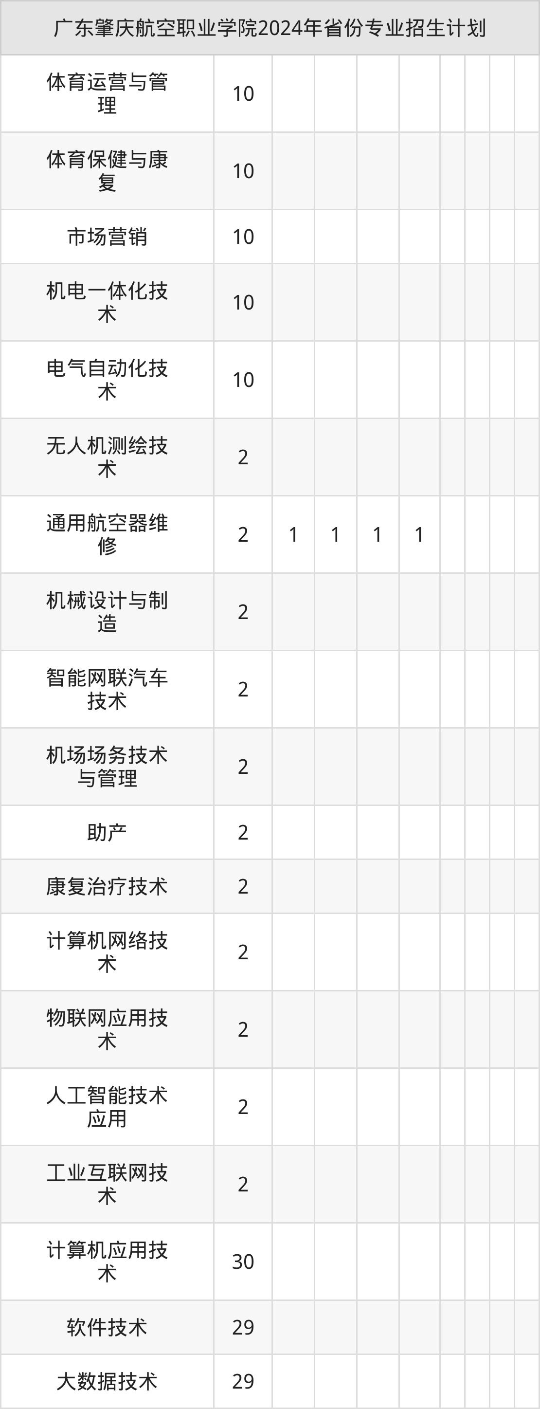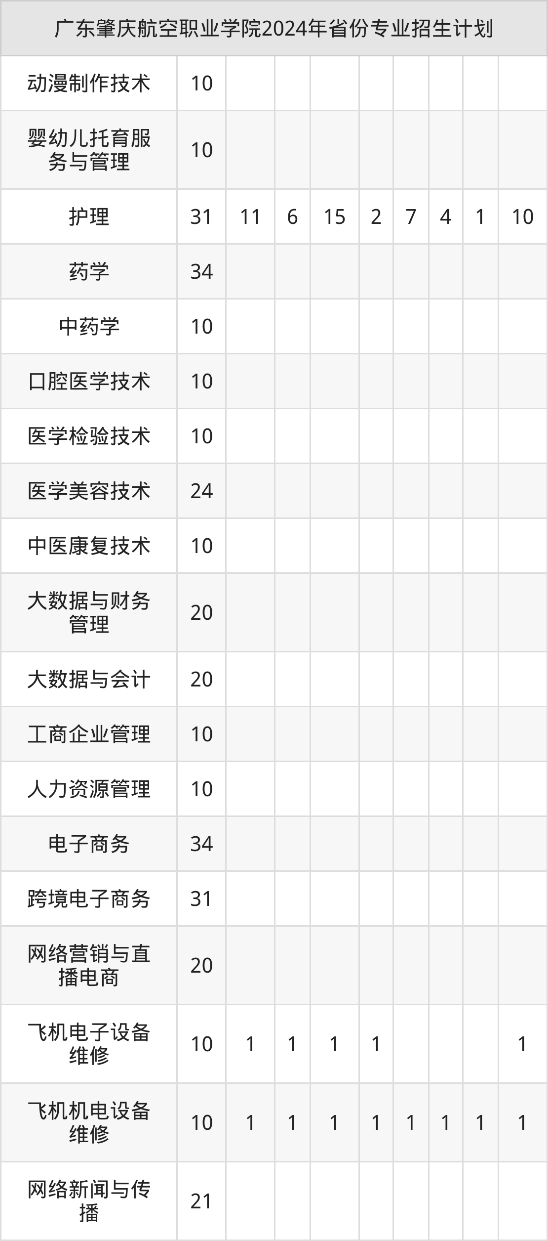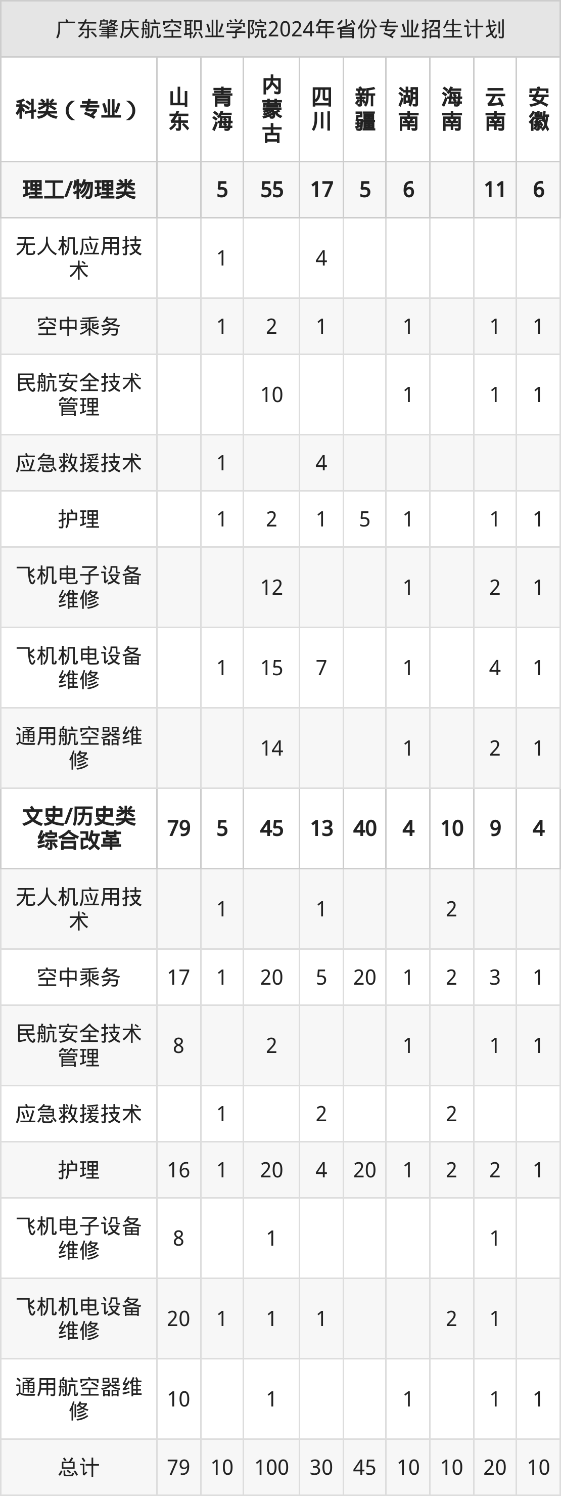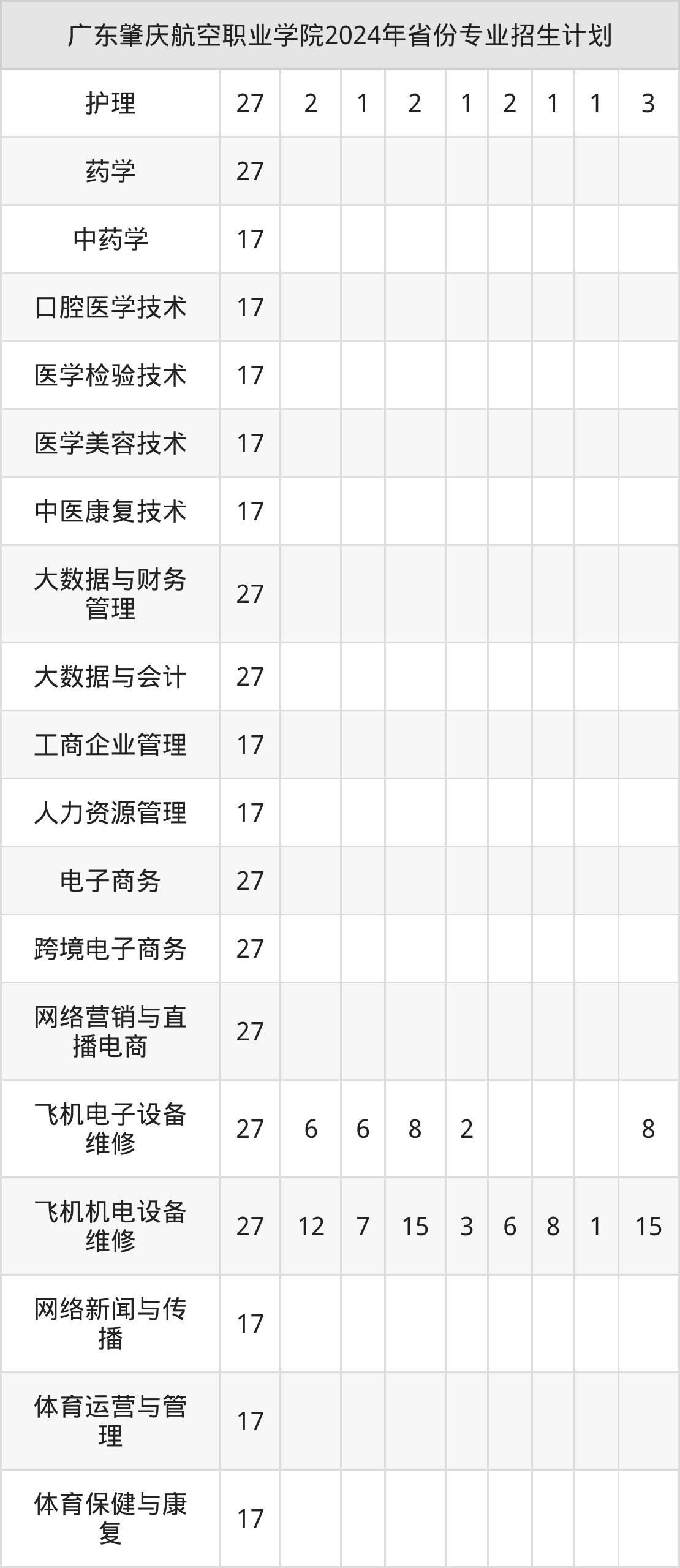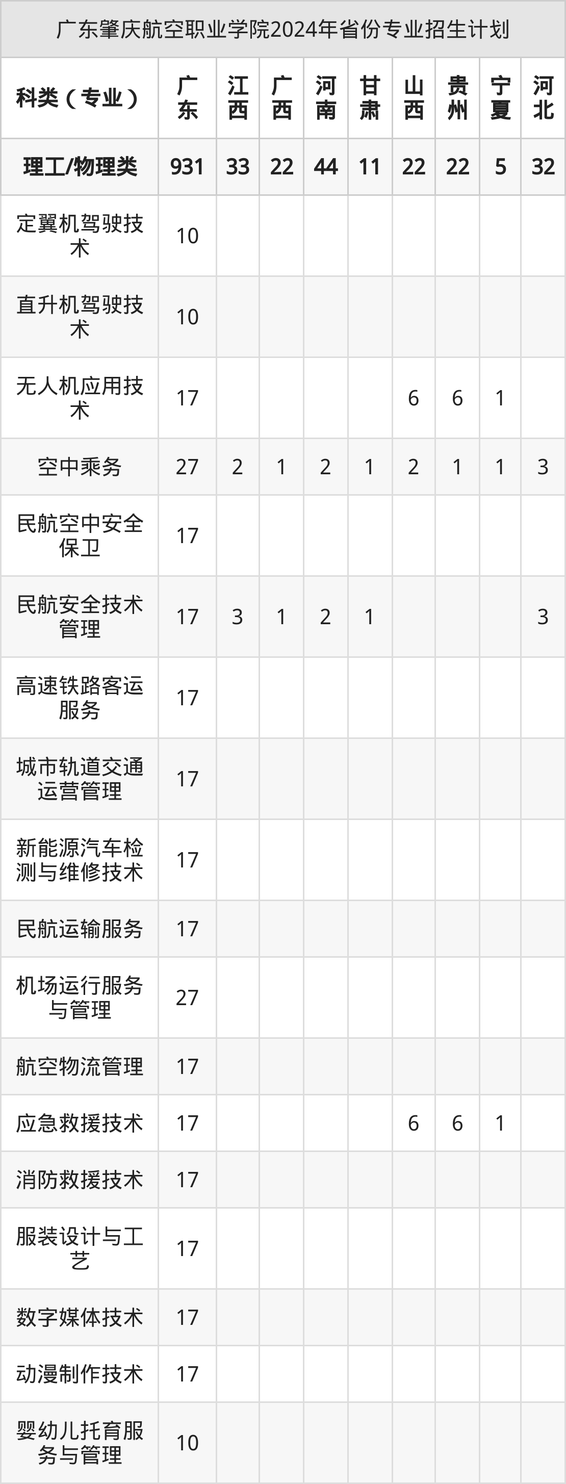 2025年广东肇庆航空职业学院专科招生计划待公布,下面附上2024年数据,暂供参考: