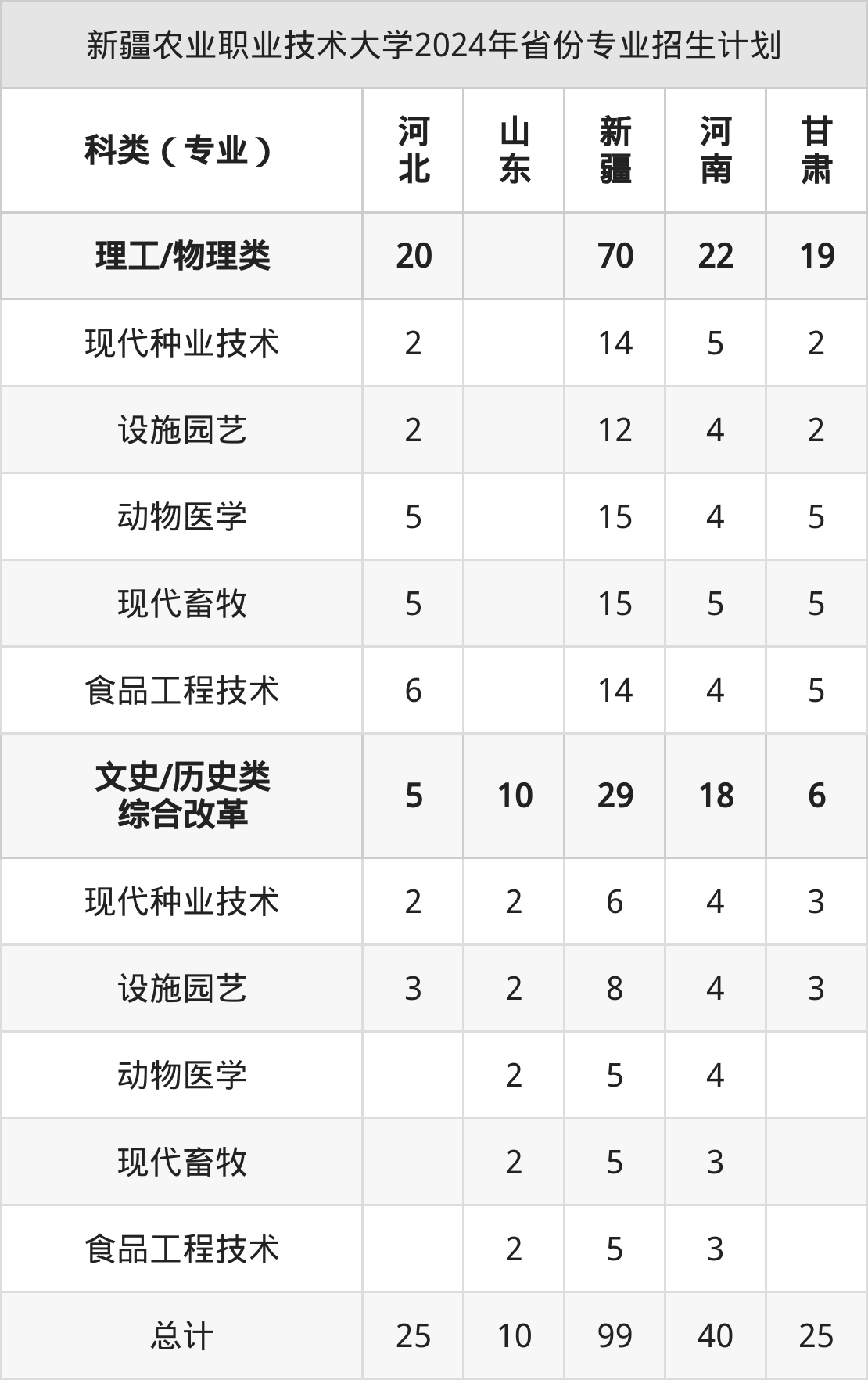 2025年新疆农业职业技术大学本科招生计划待公布,下面附上2024年数据,暂供参考: