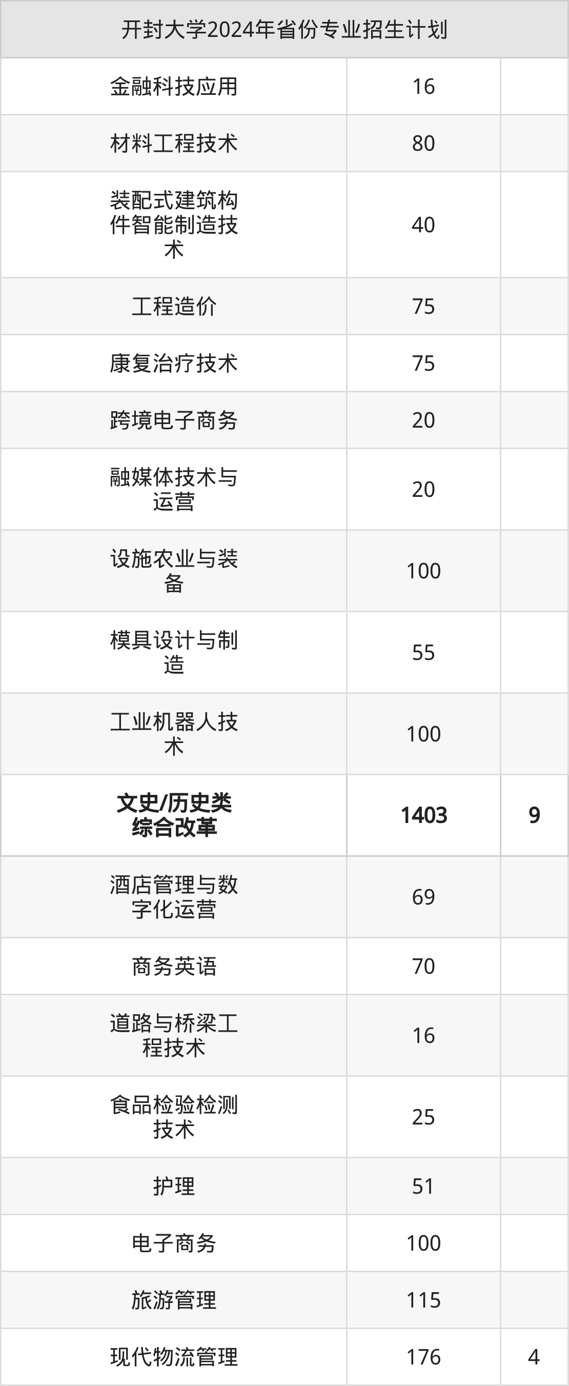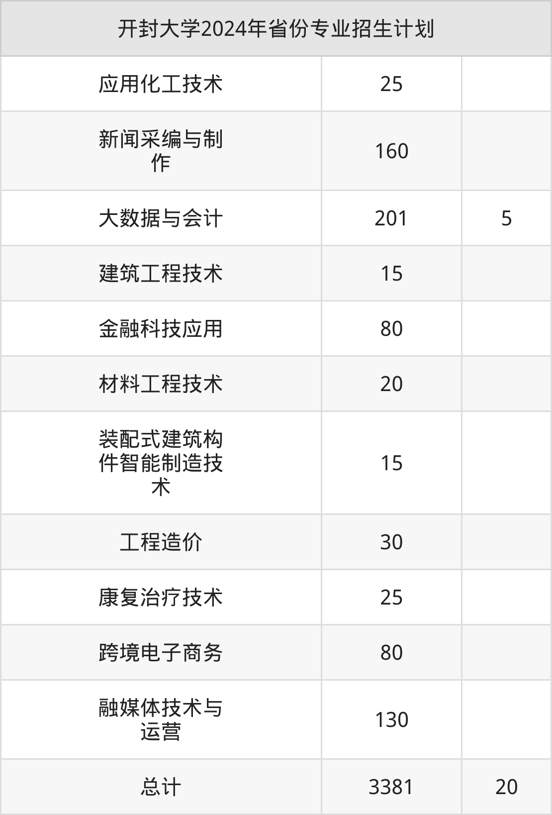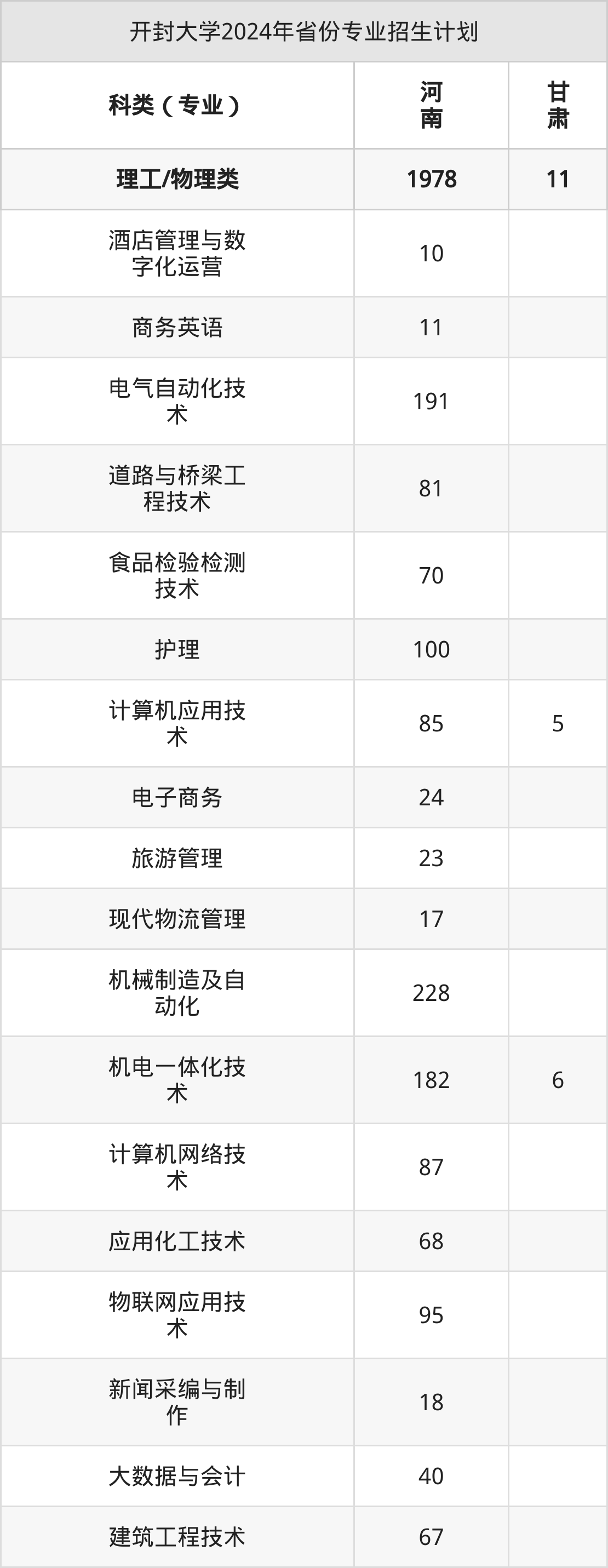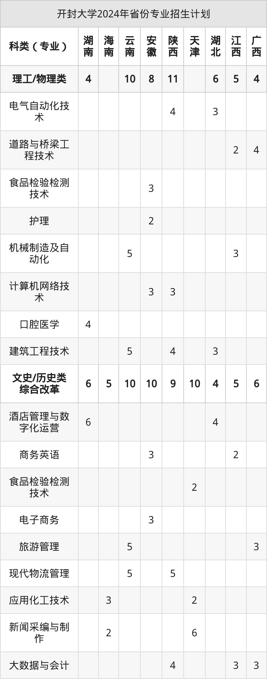2025年开封大学专科招生计划待公布,下面附上2024年数据,暂供参考: