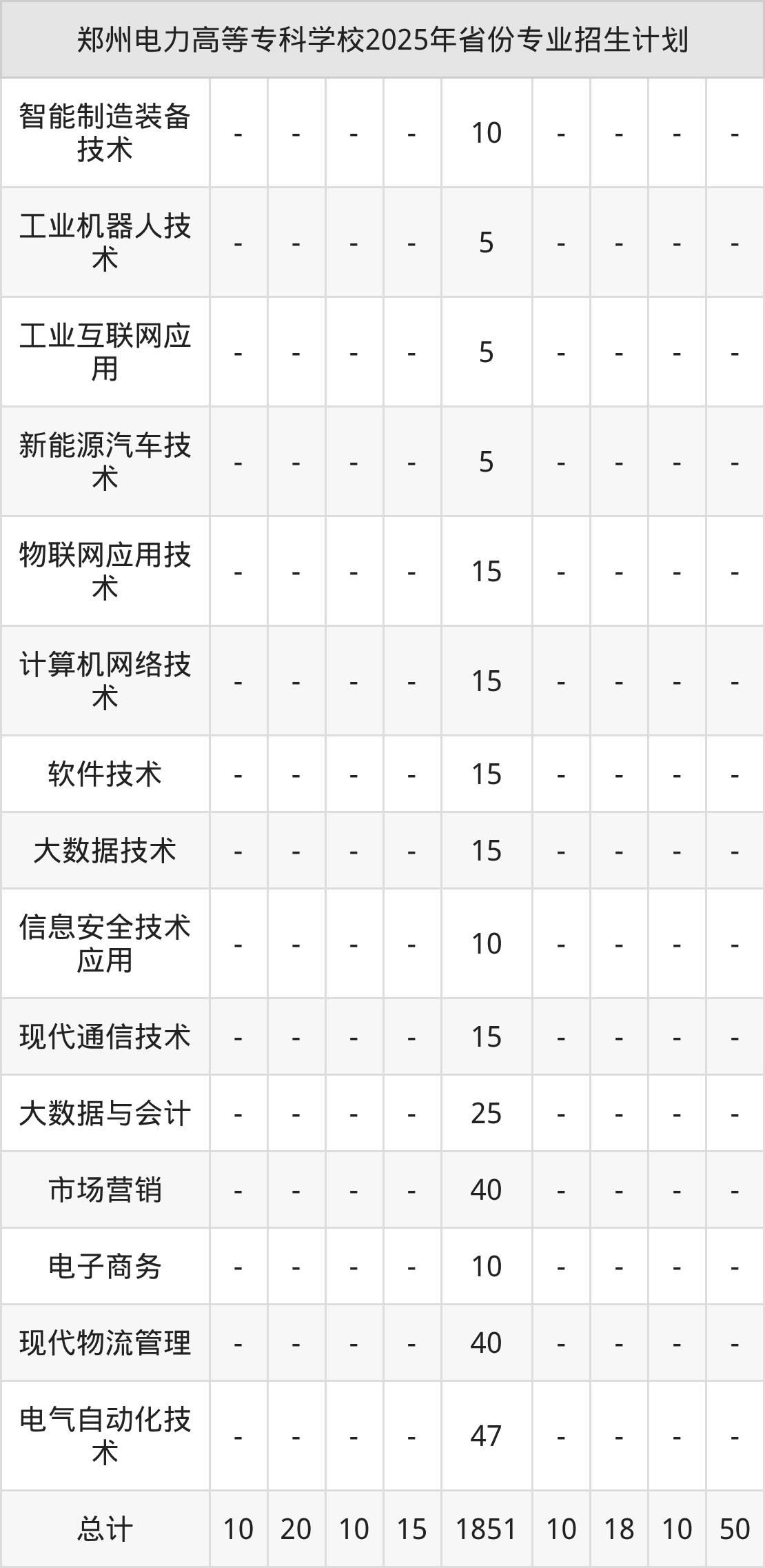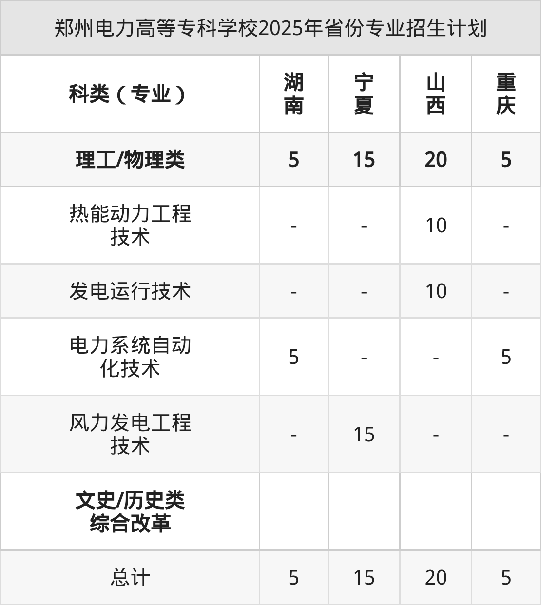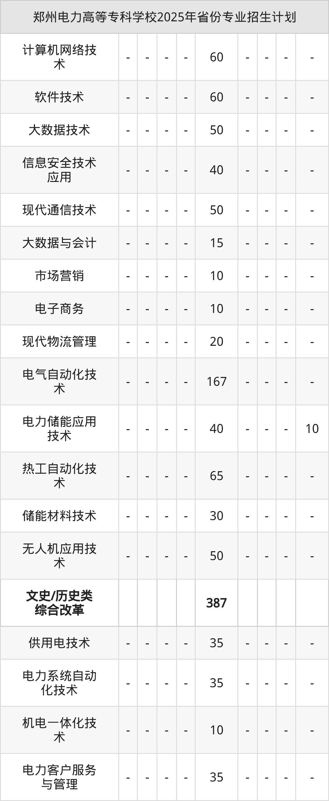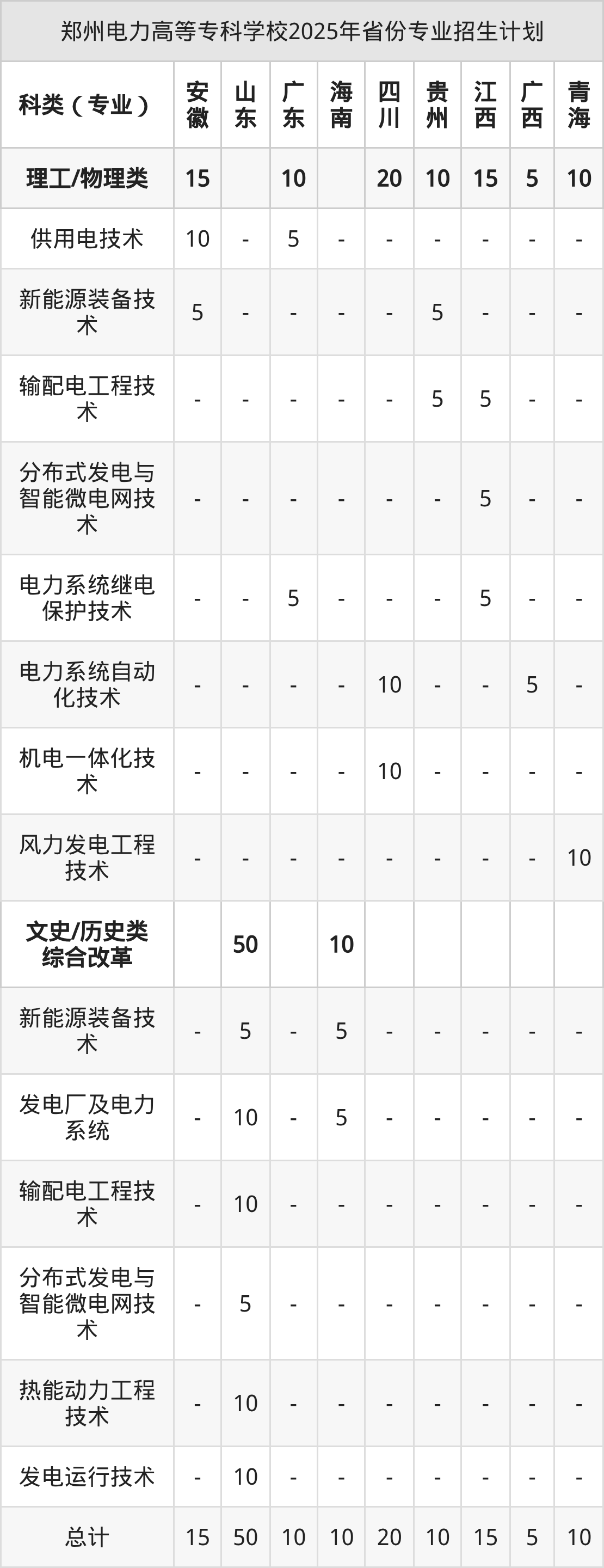 2026年郑州电力高等专科学校专科招生计划待公布,下面附上2025年数据,暂供参考: