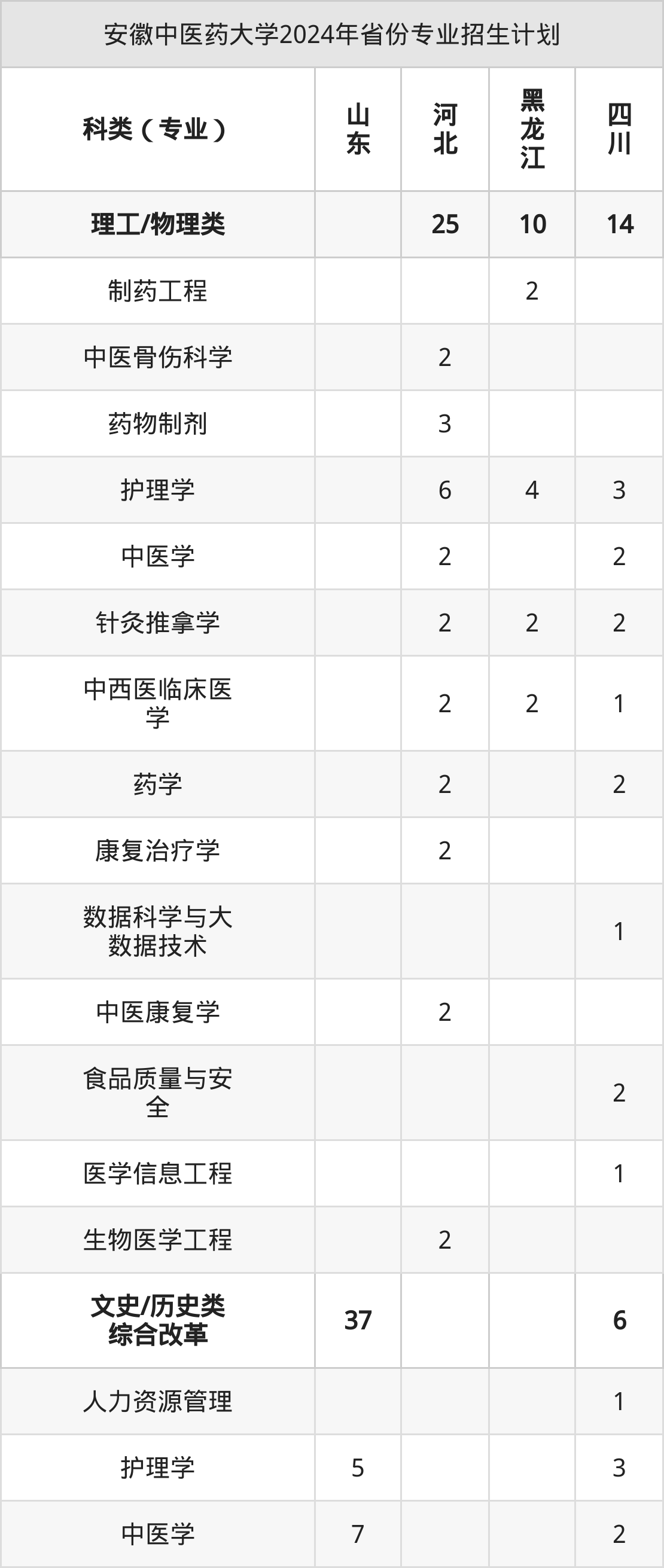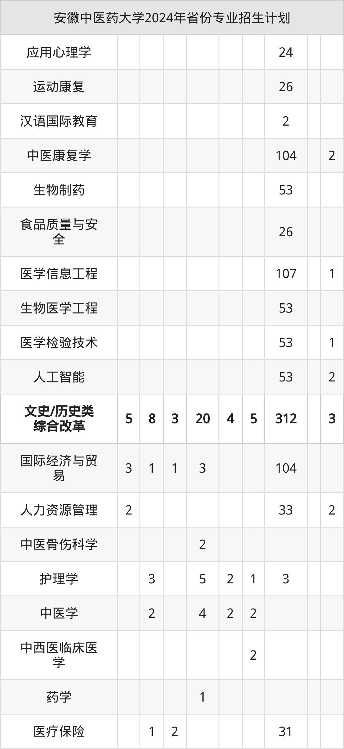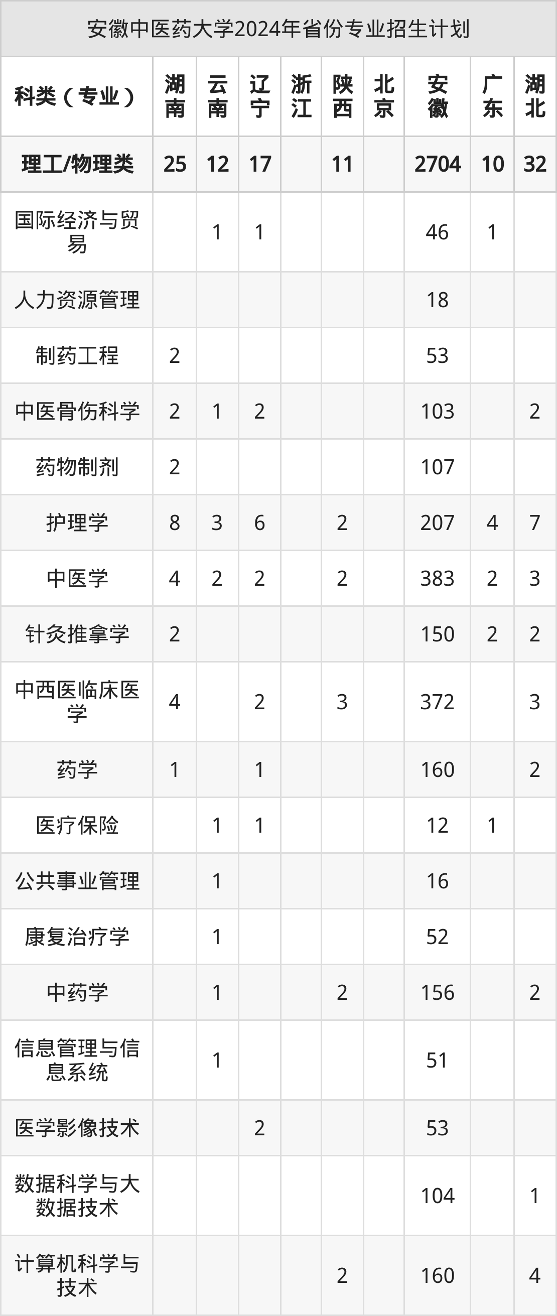 2025年安徽中医药大学本科招生计划待公布,下面附上2024年数据,暂供参考: