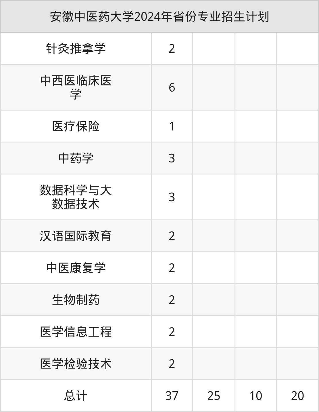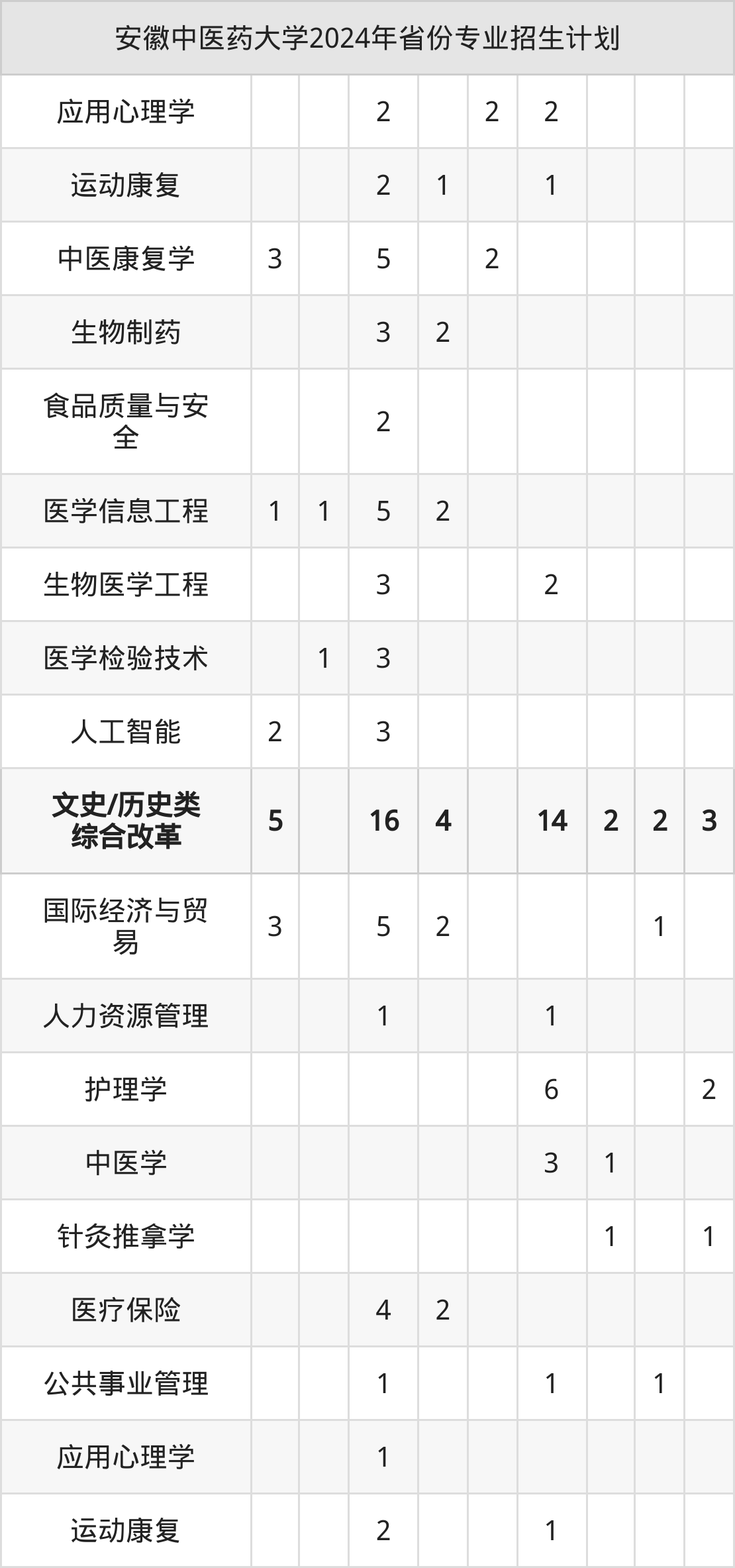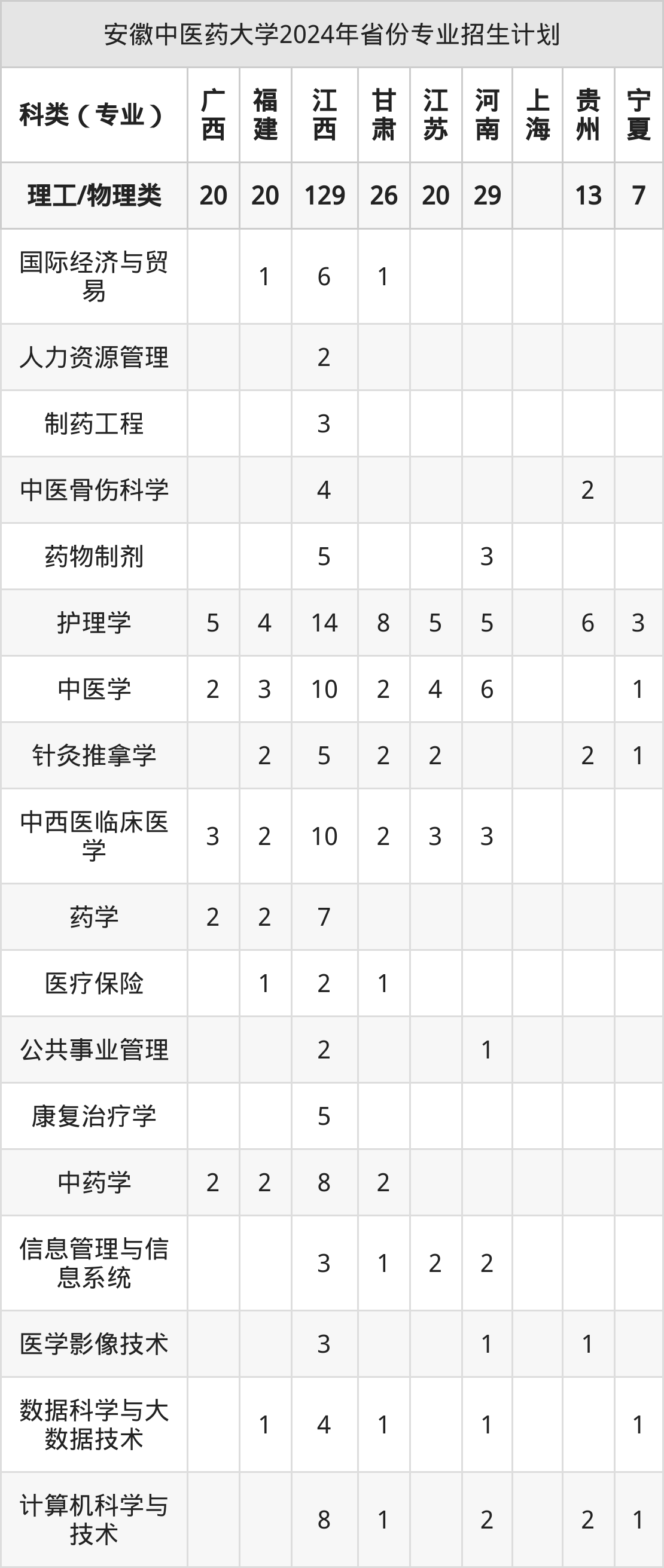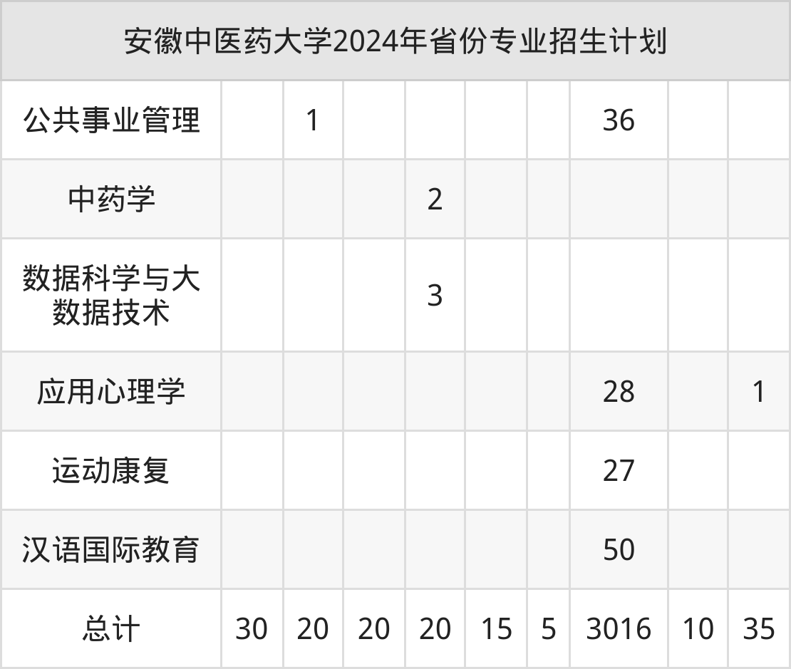 2025年安徽中医药大学本科招生计划待公布,下面附上2024年数据,暂供参考: