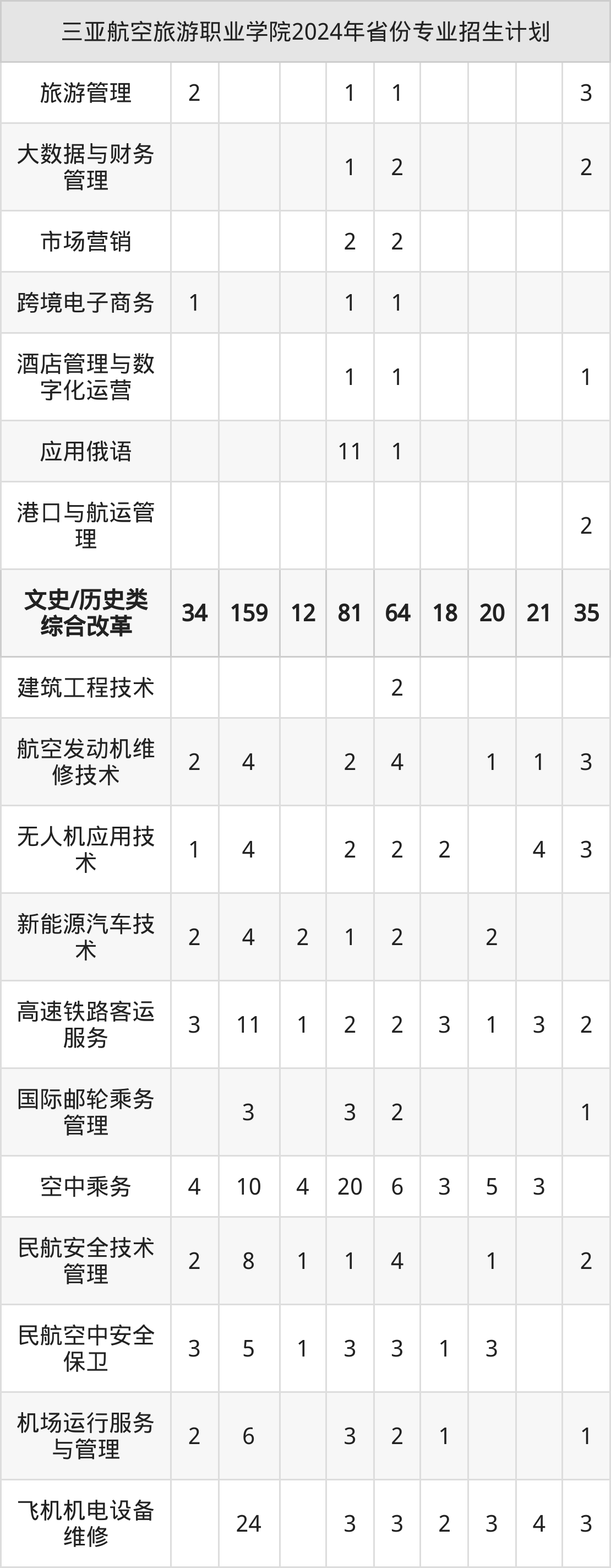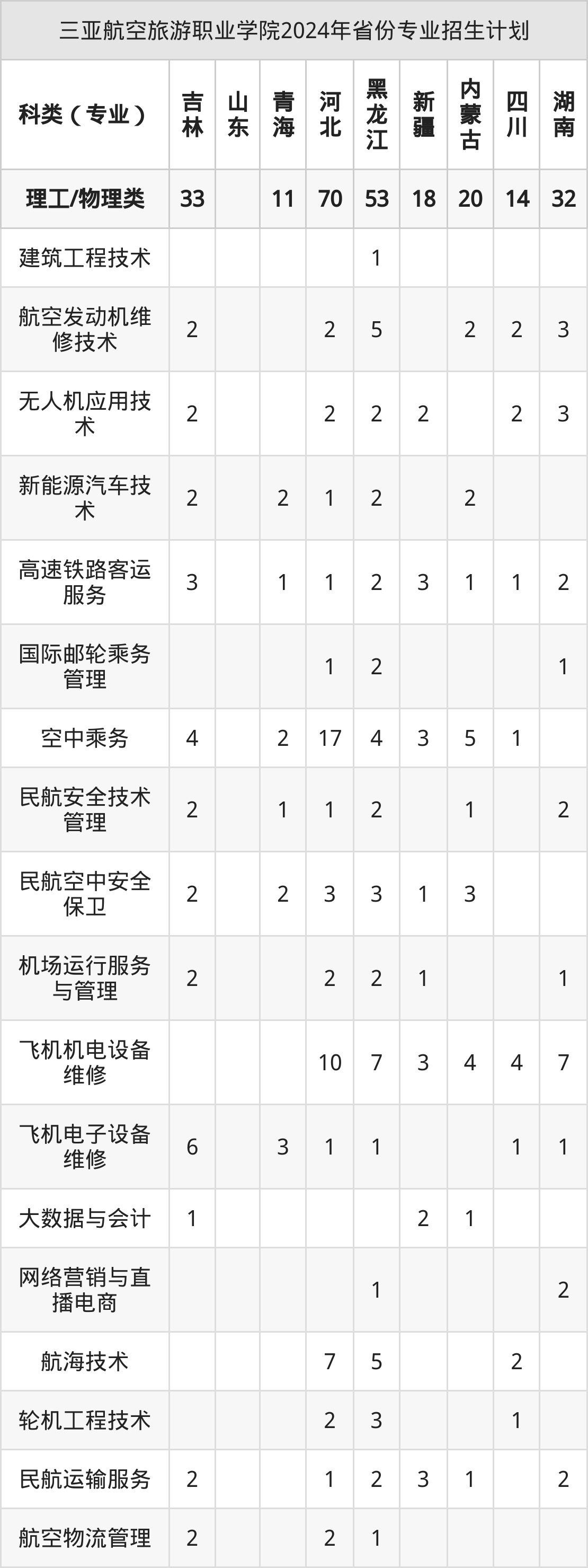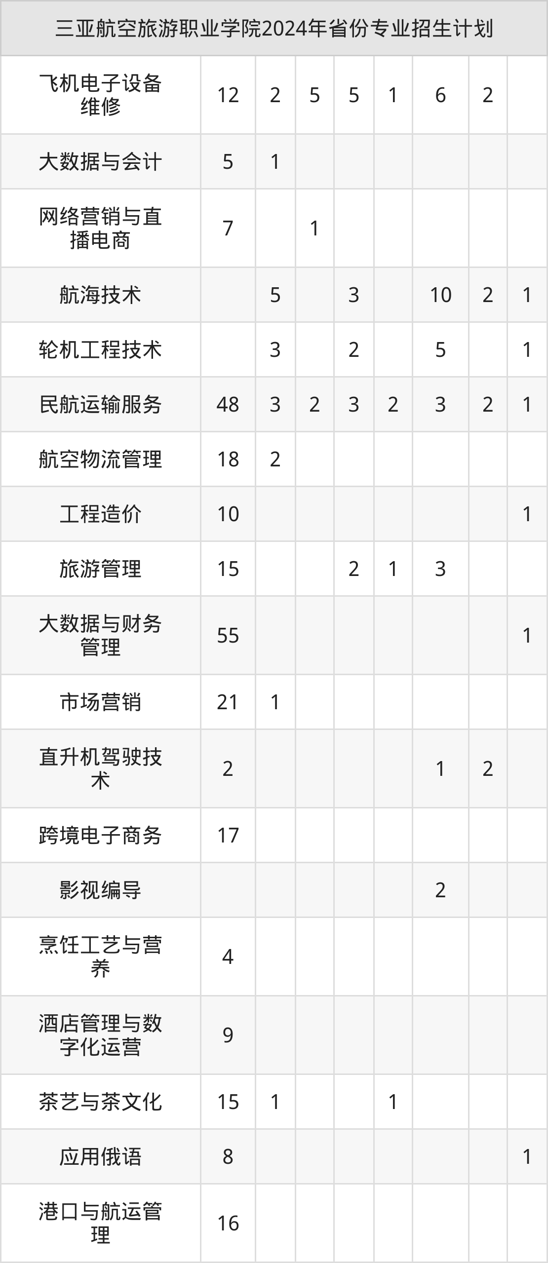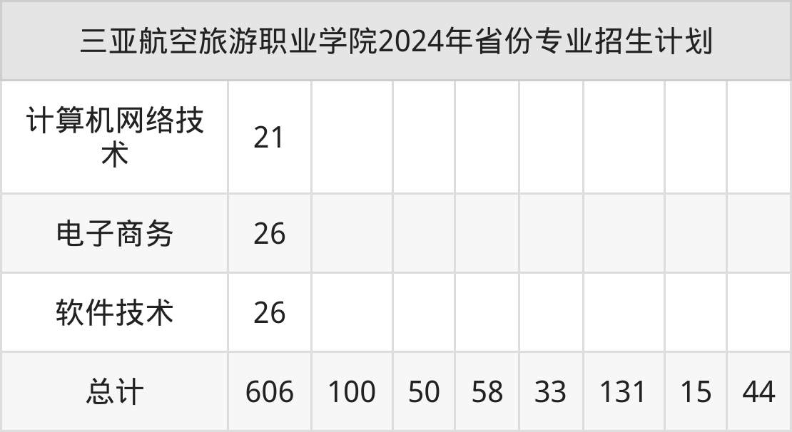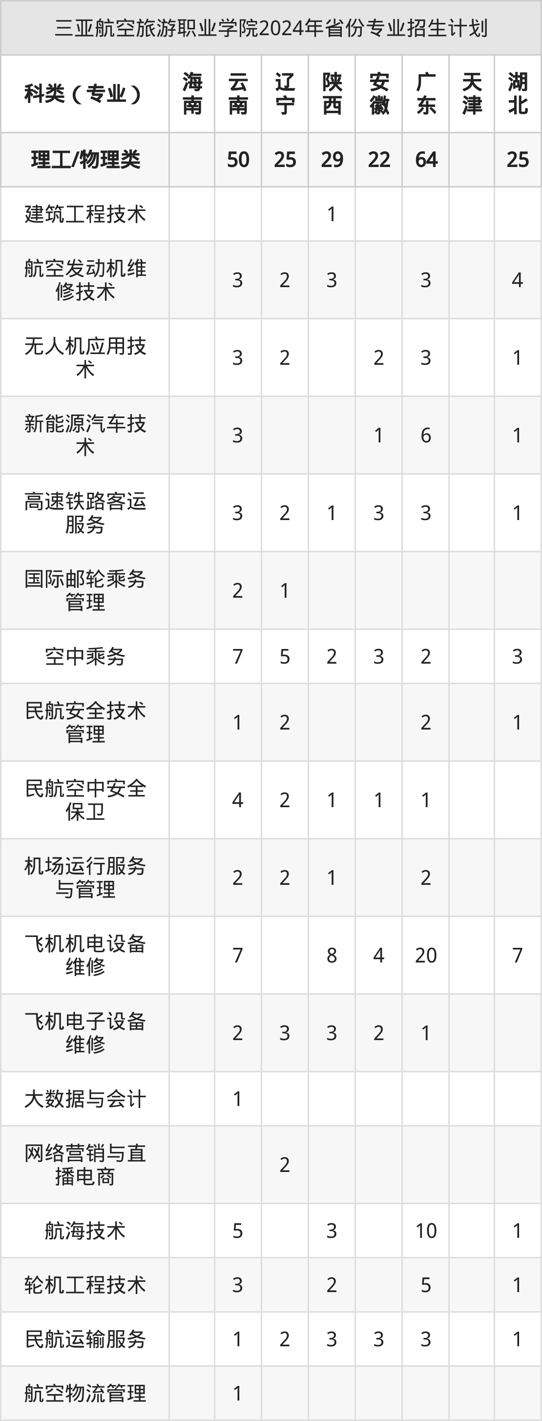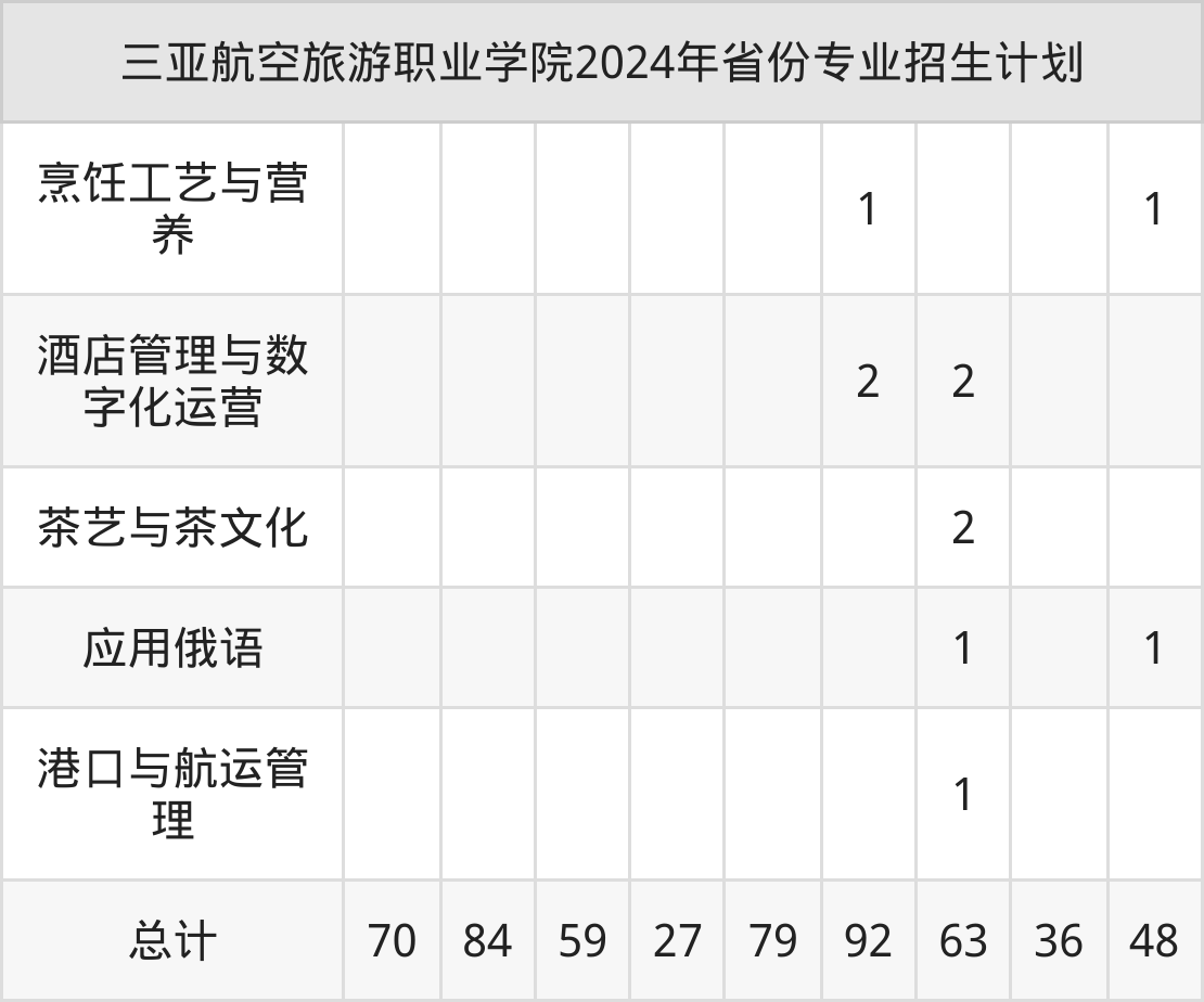 2025年三亚航空旅游职业学院专科招生计划待公布,下面附上2024年数据,暂供参考:
