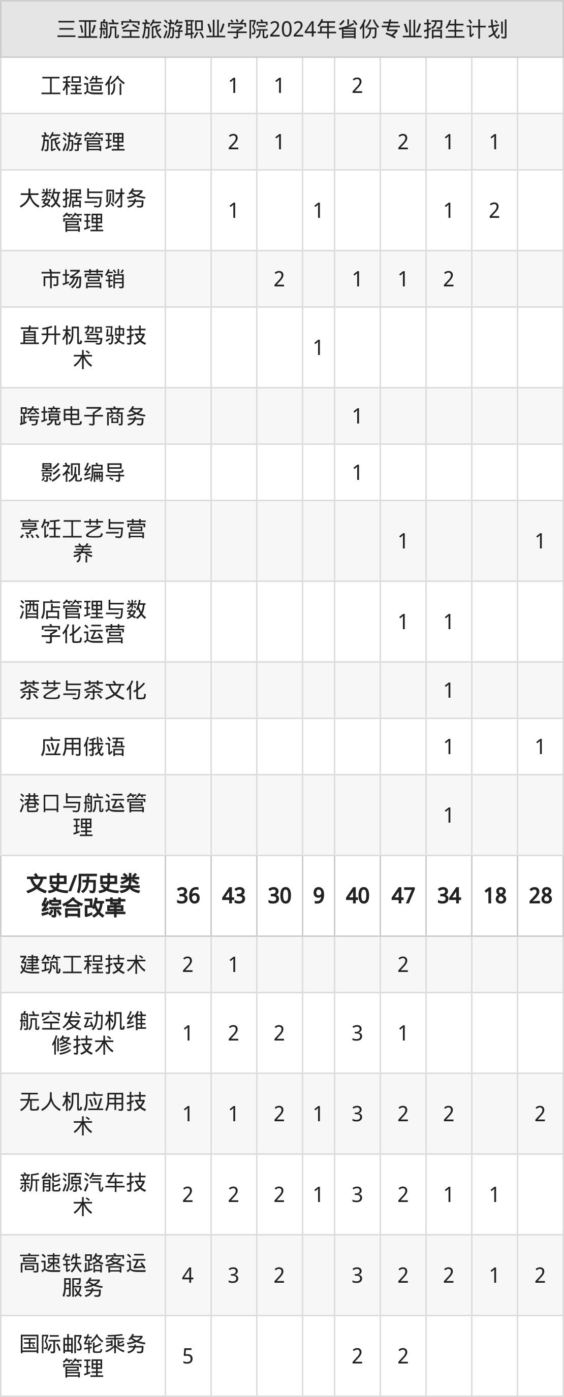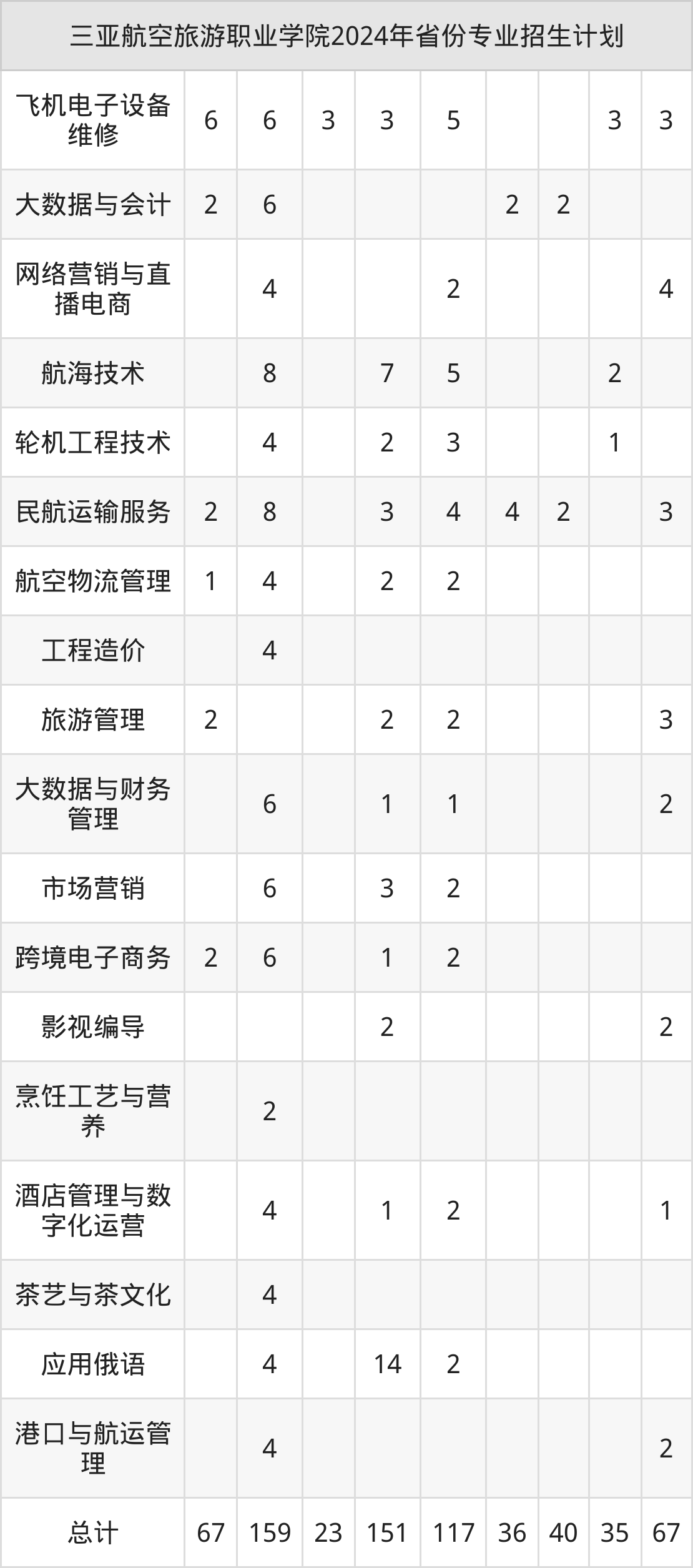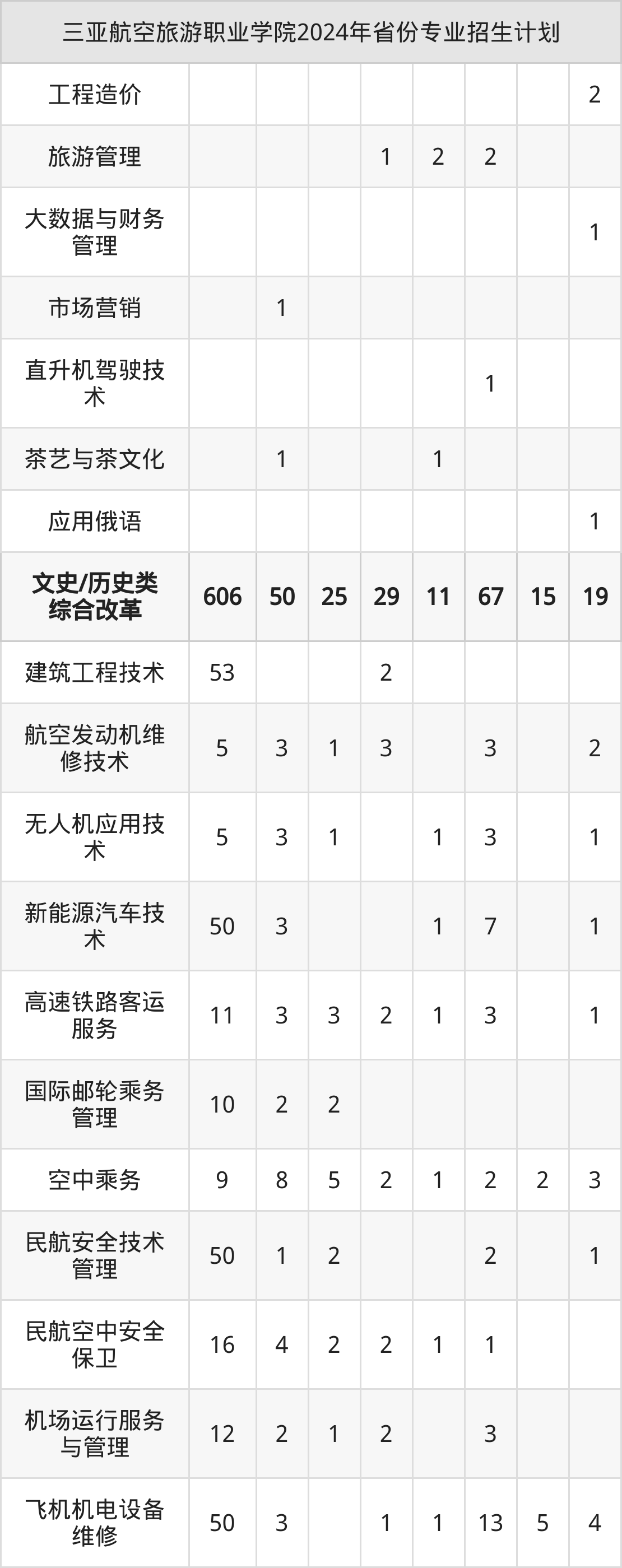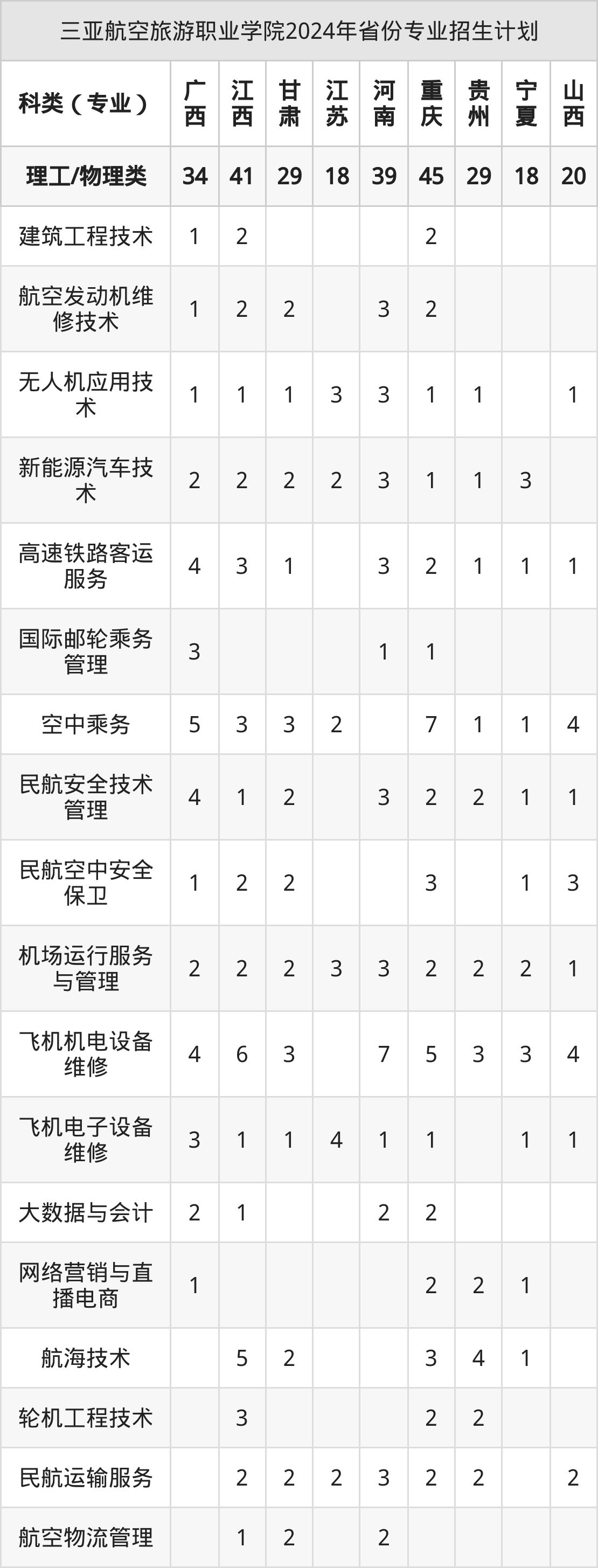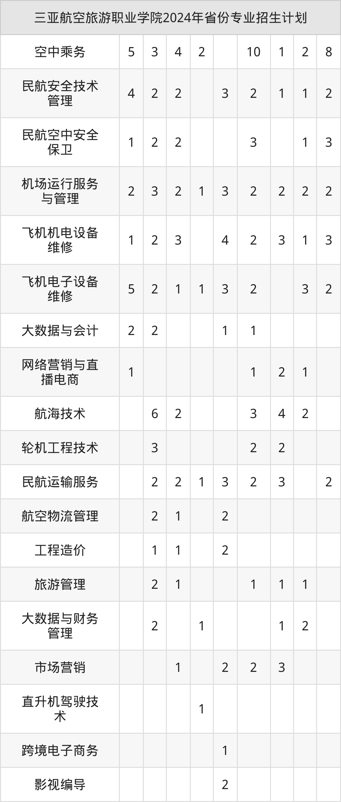 2025年三亚航空旅游职业学院专科招生计划待公布,下面附上2024年数据,暂供参考: