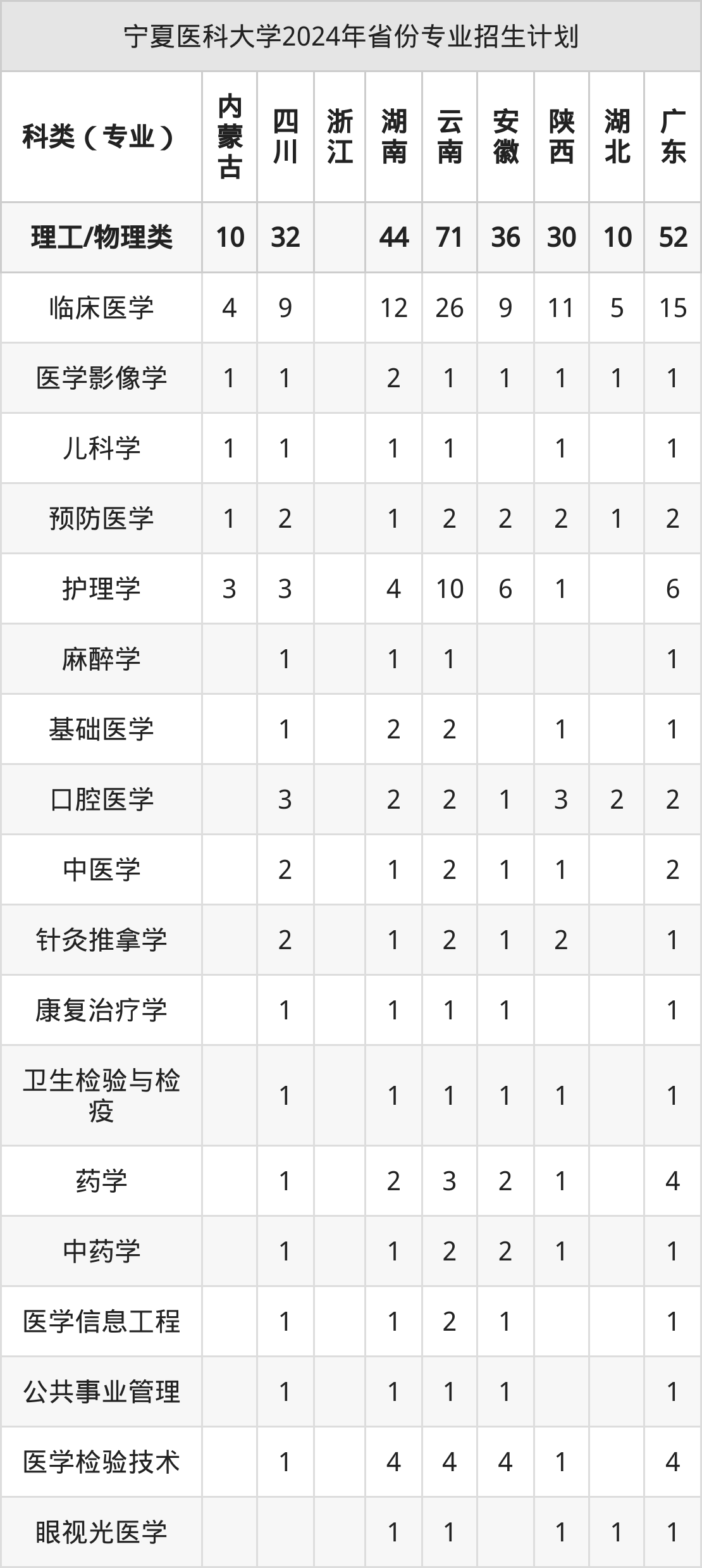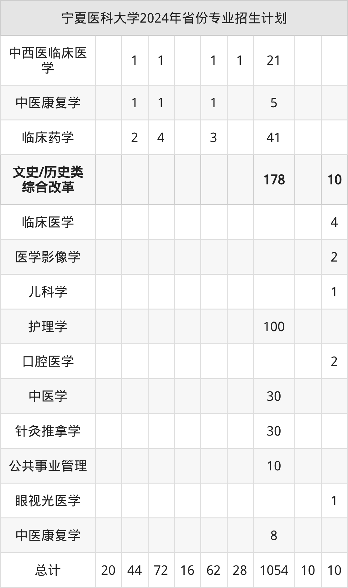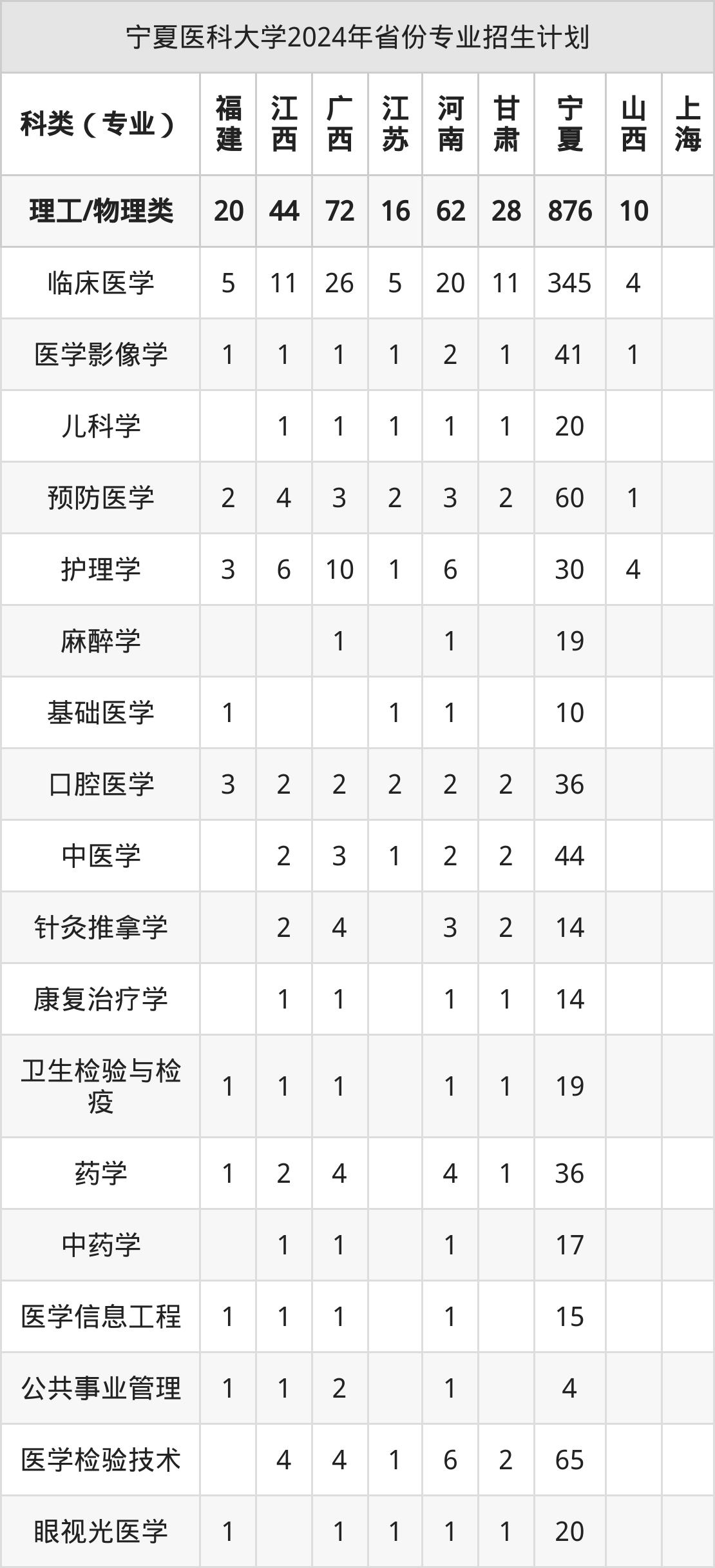 2025年宁夏医科大学本科招生计划待公布,下面附上2024年数据,暂供参考: