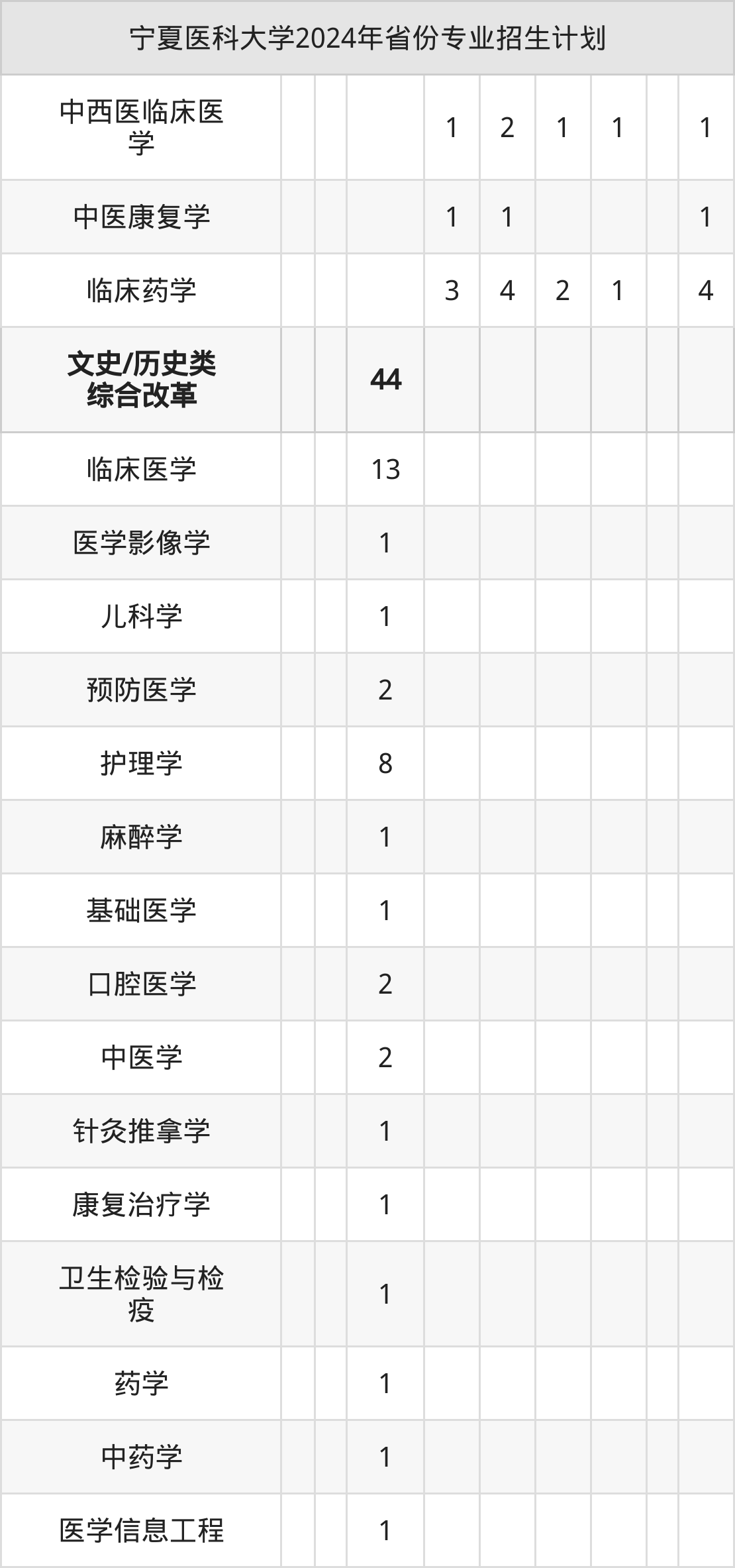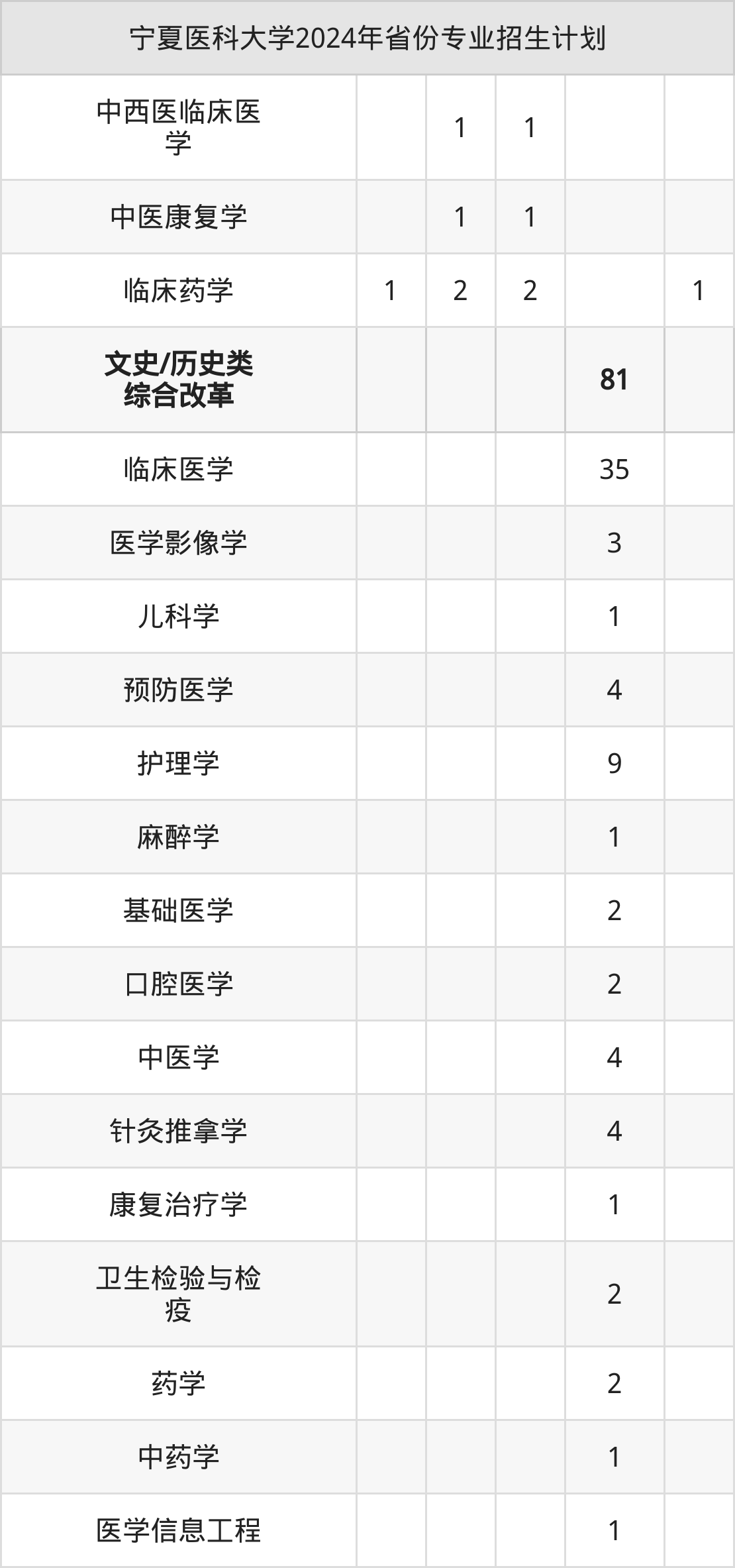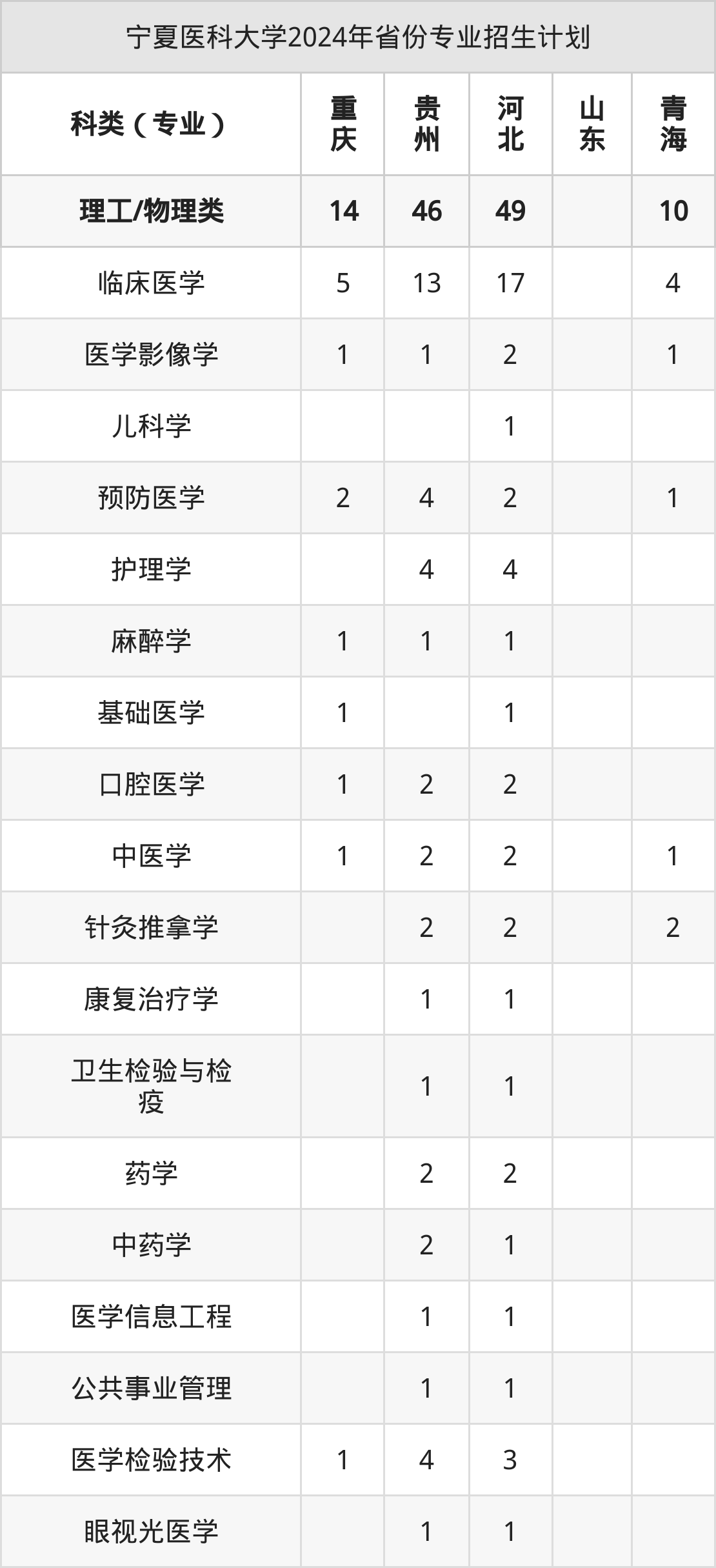 2025年宁夏医科大学本科招生计划待公布,下面附上2024年数据,暂供参考: