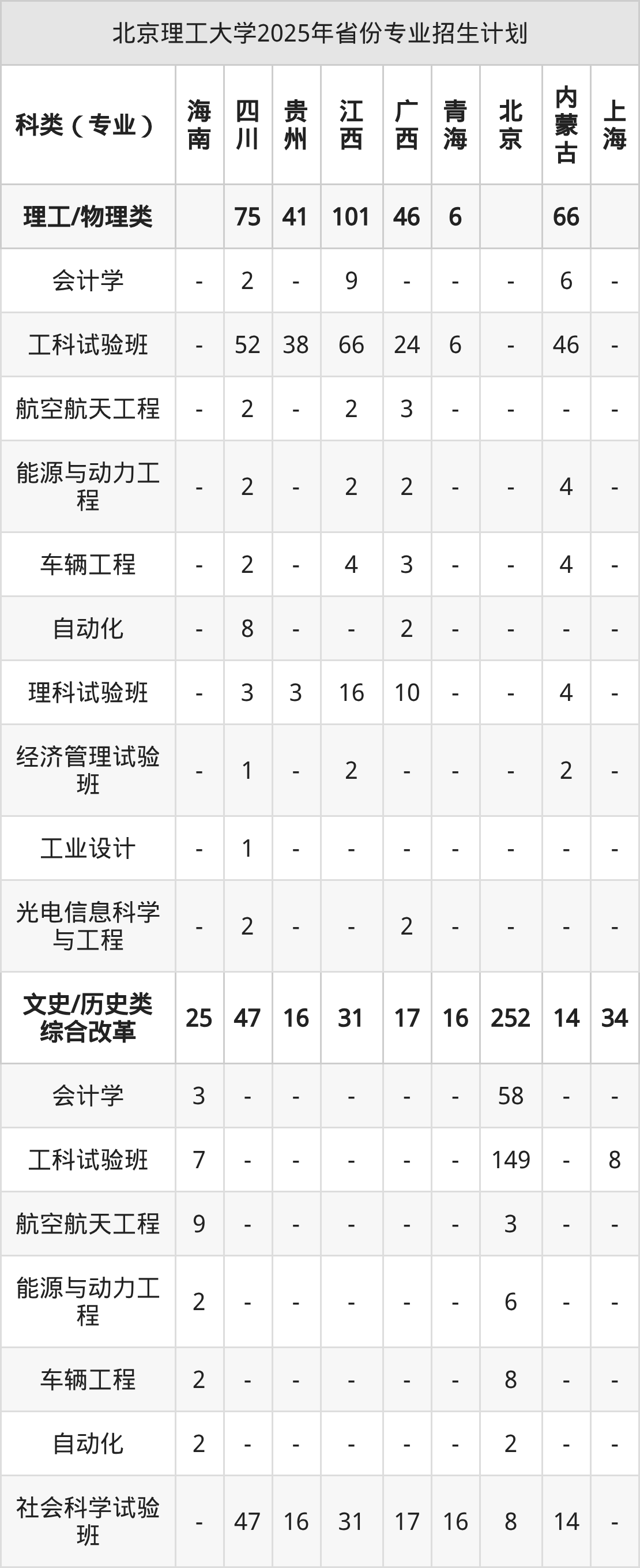 2026年北京理工大学本科招生计划待公布,下面附上2025年数据,暂供参考: