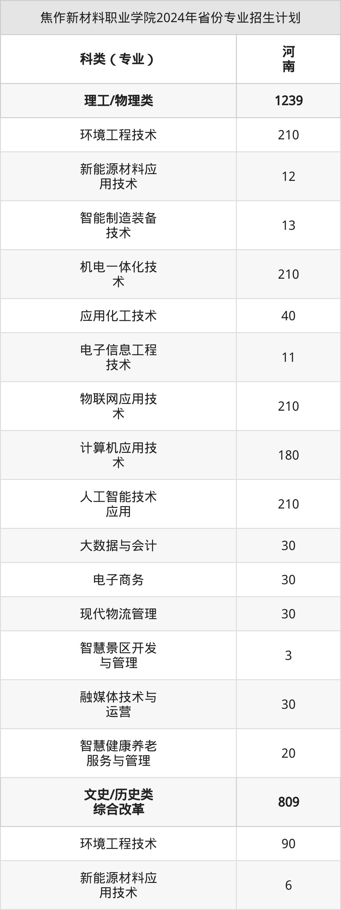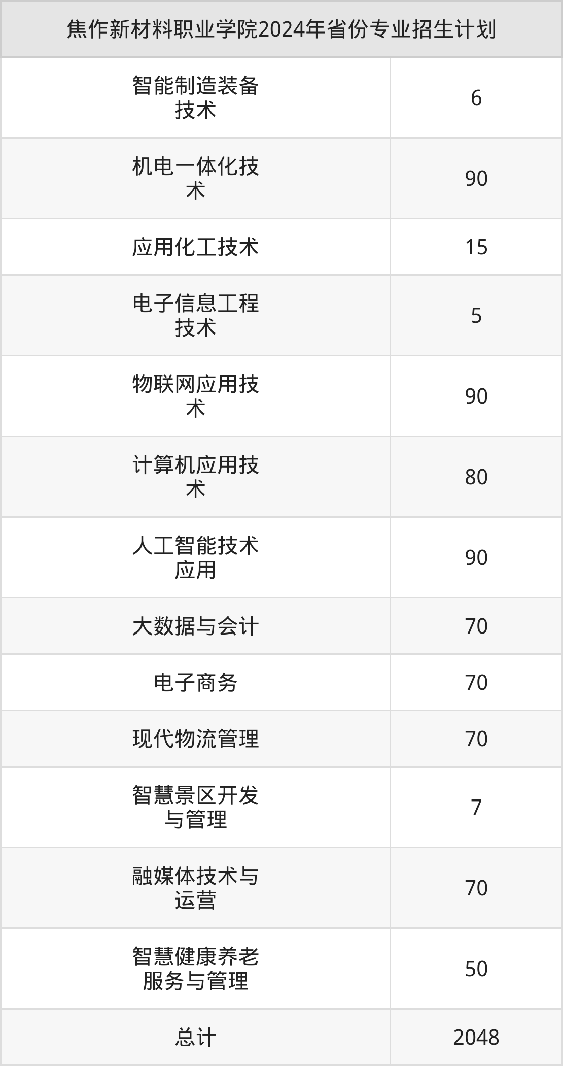 2025年焦作新材料职业学院专科招生计划待公布,下面附上2024年数据,暂供参考: