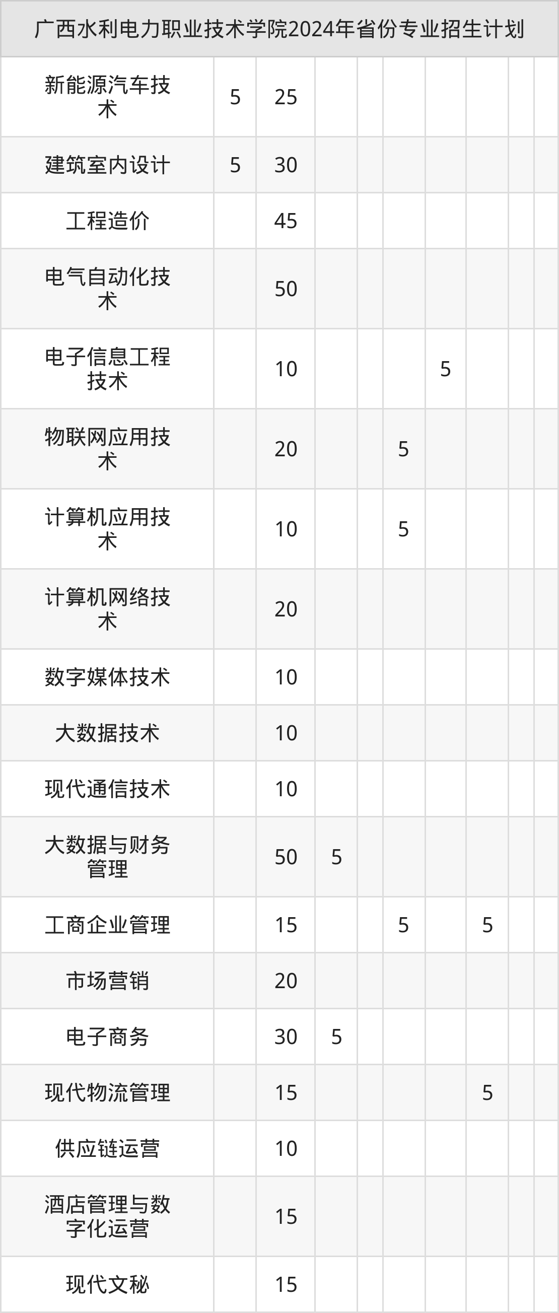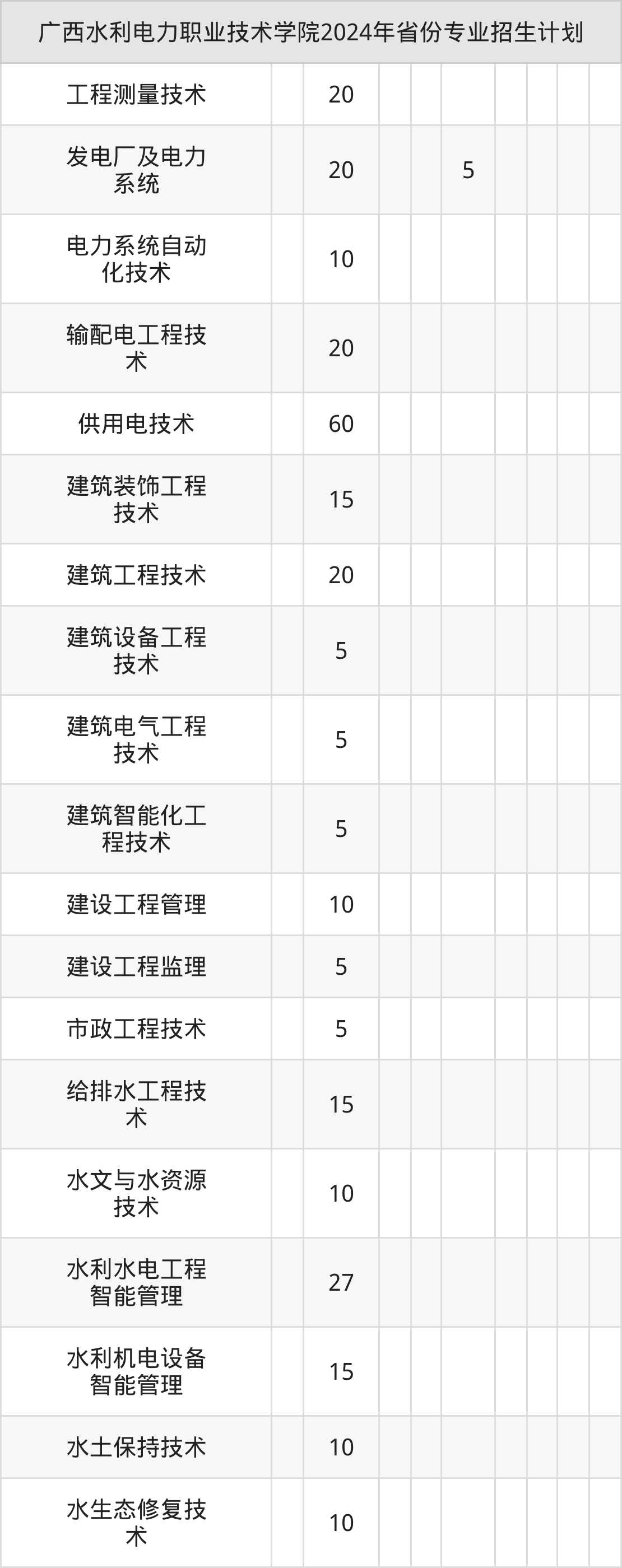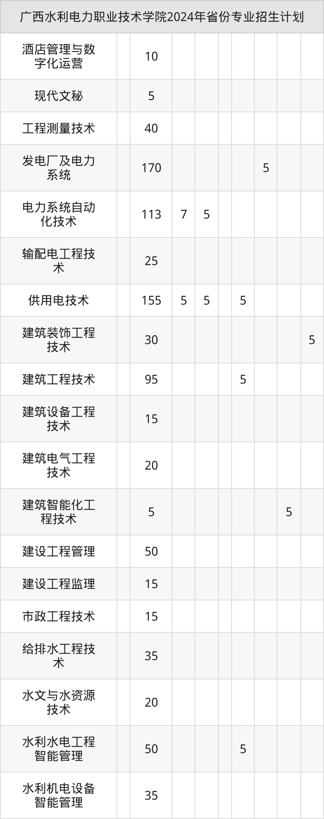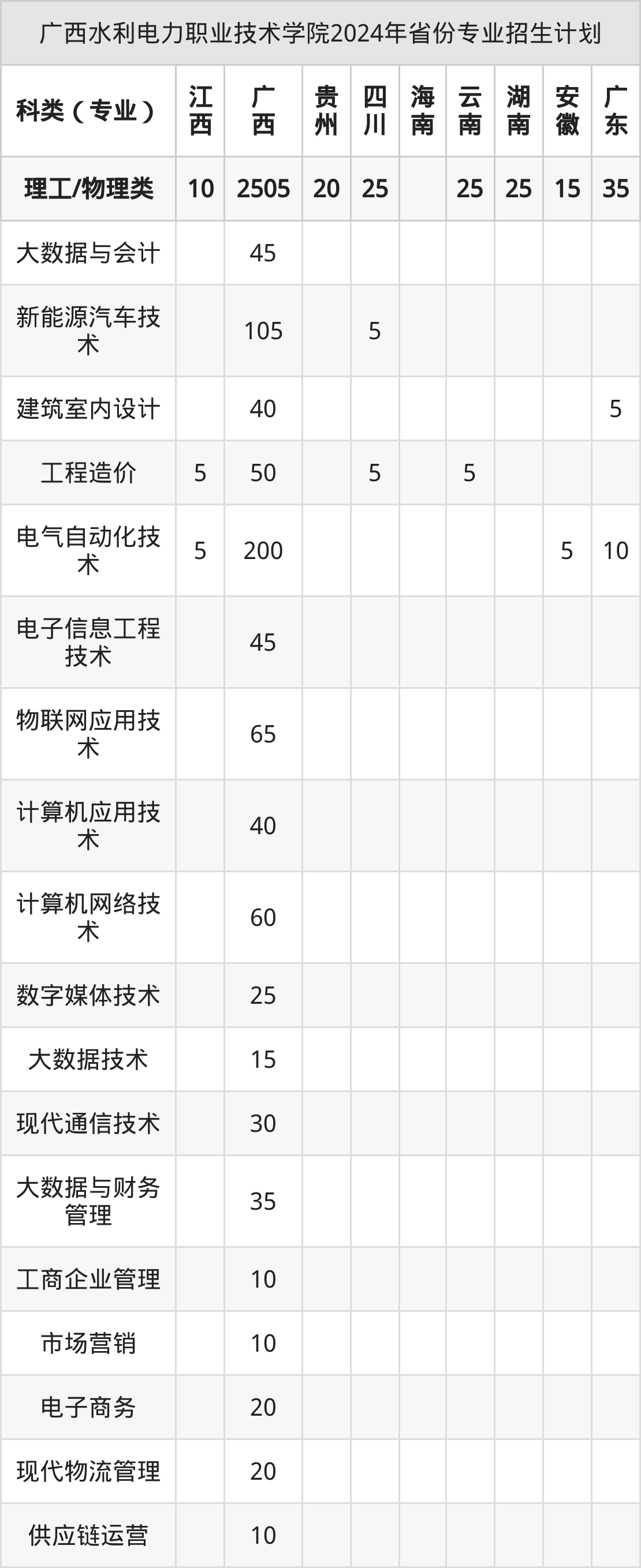 2025年广西水利电力职业技术学院专科招生计划待公布,下面附上2024年数据,暂供参考: