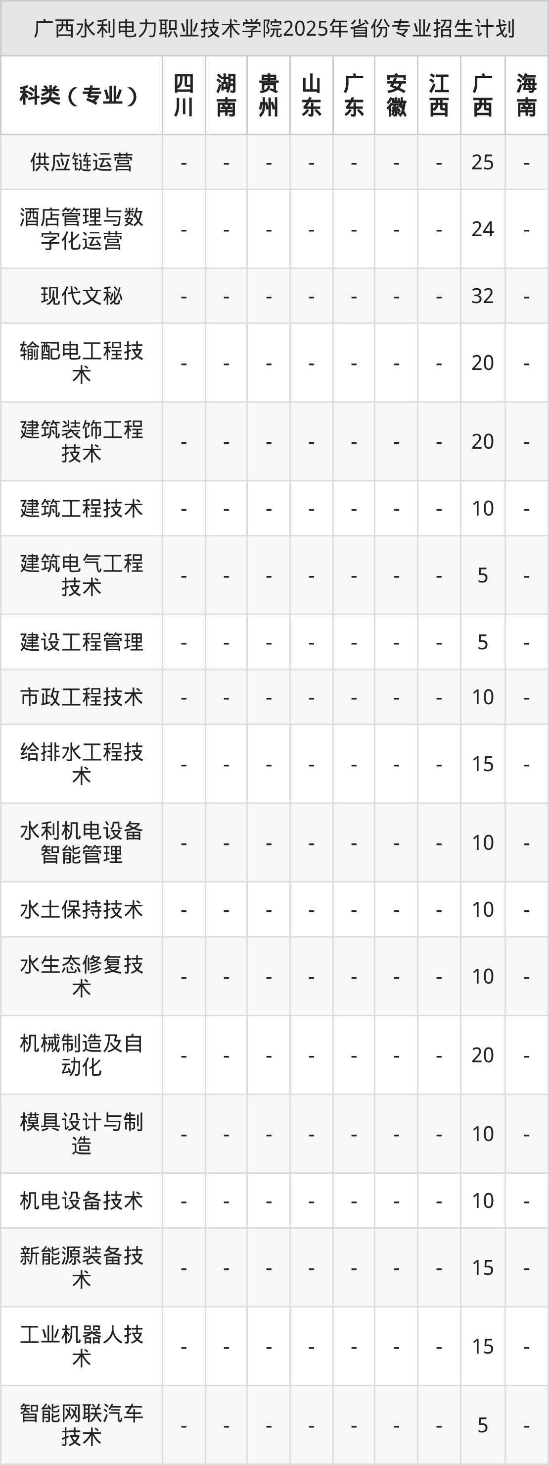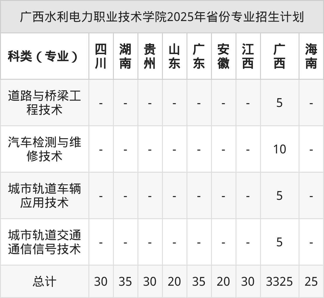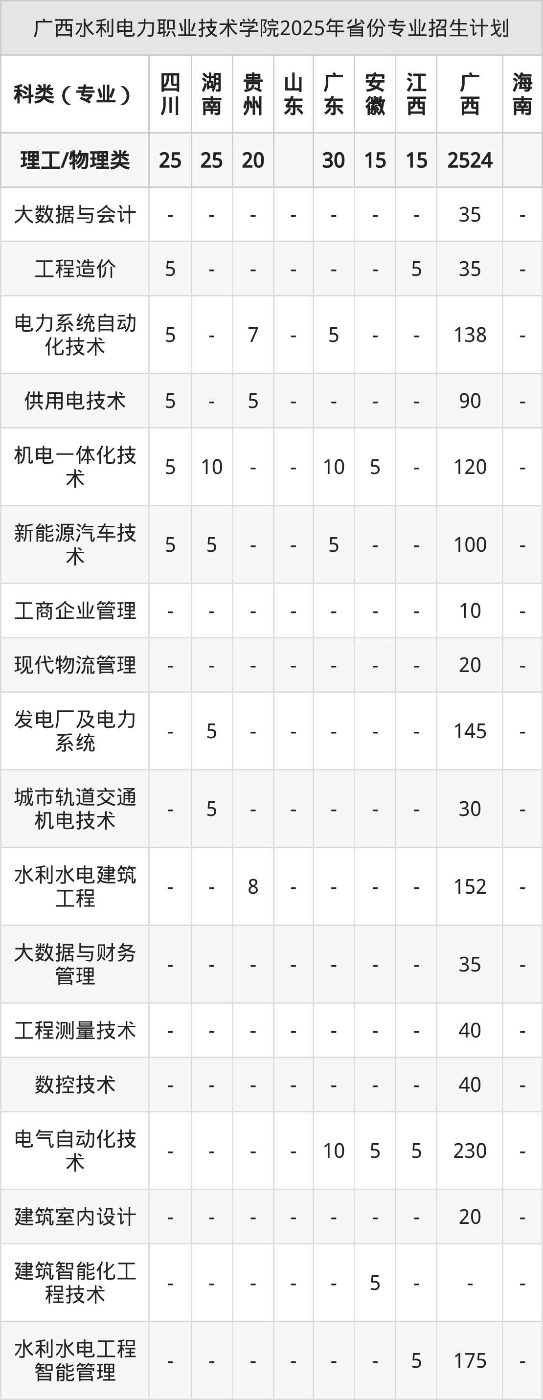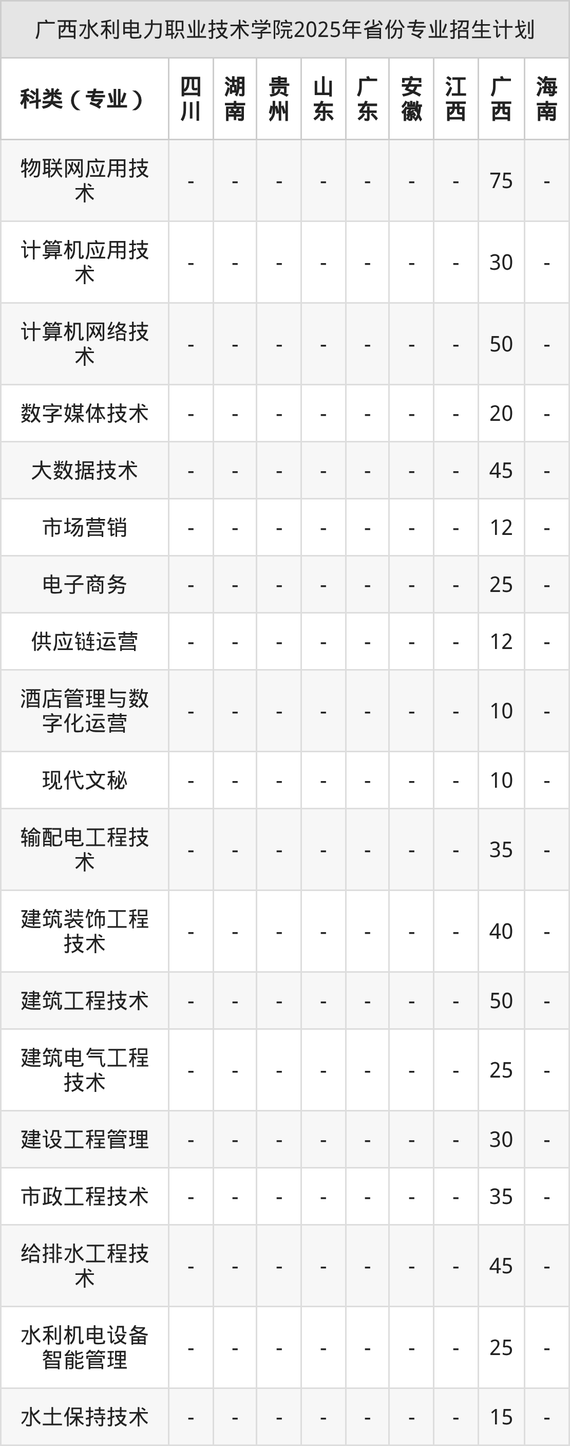 2026年广西水利电力职业技术学院专科招生计划待公布,下面附上2025年数据,暂供参考: