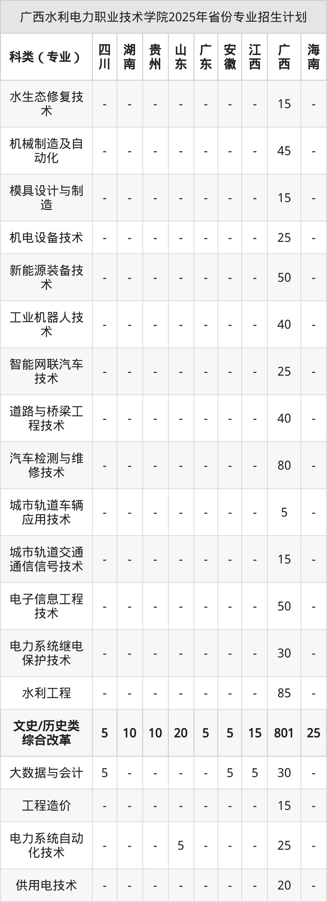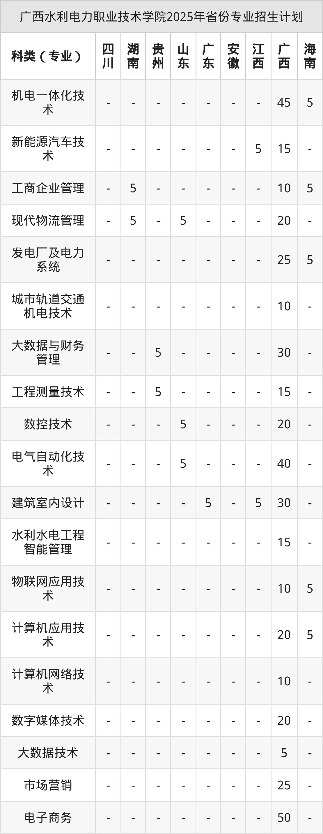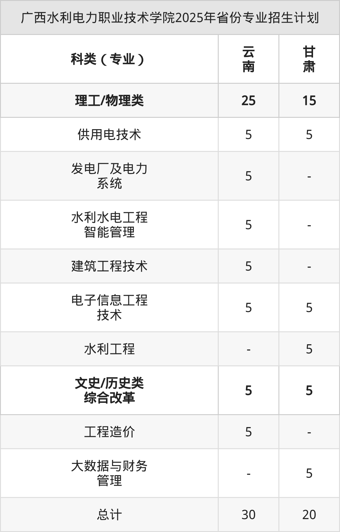 2026年广西水利电力职业技术学院专科招生计划待公布,下面附上2025年数据,暂供参考: