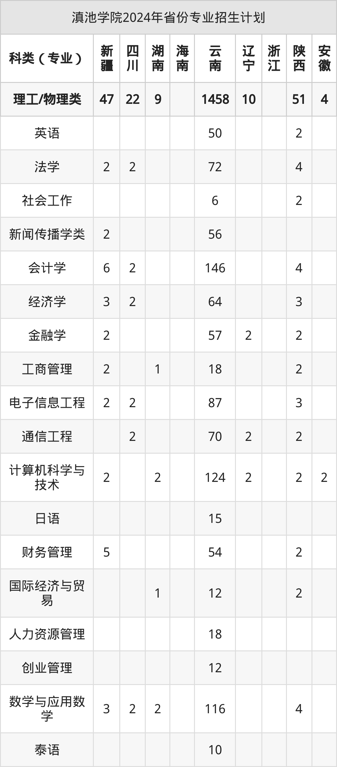 2025年滇池学院本科招生计划待公布,下面附上2024年数据,暂供参考: