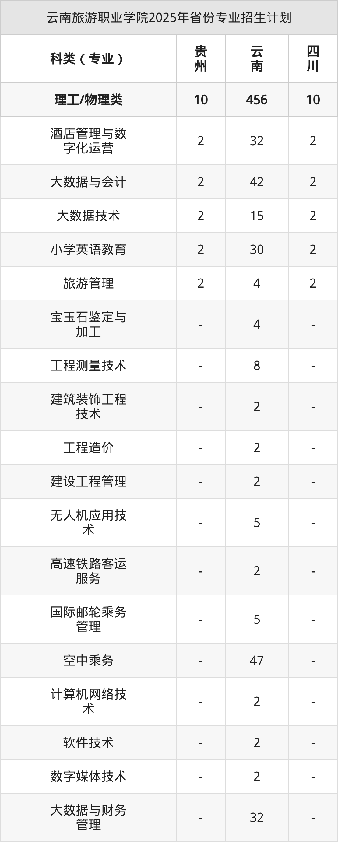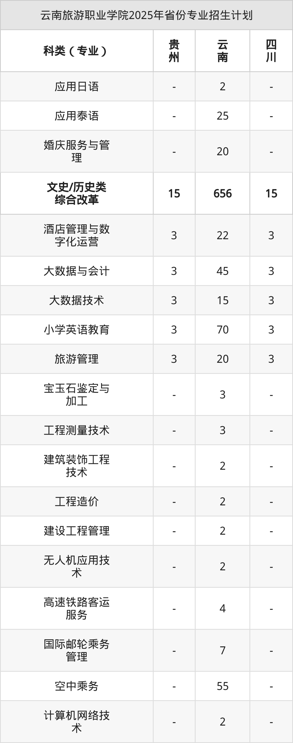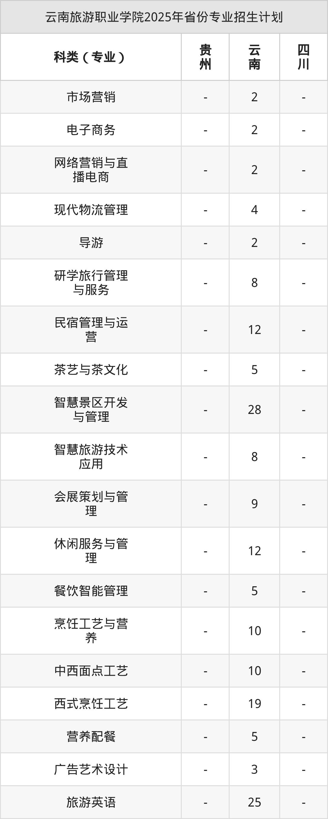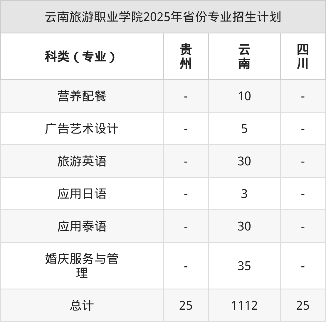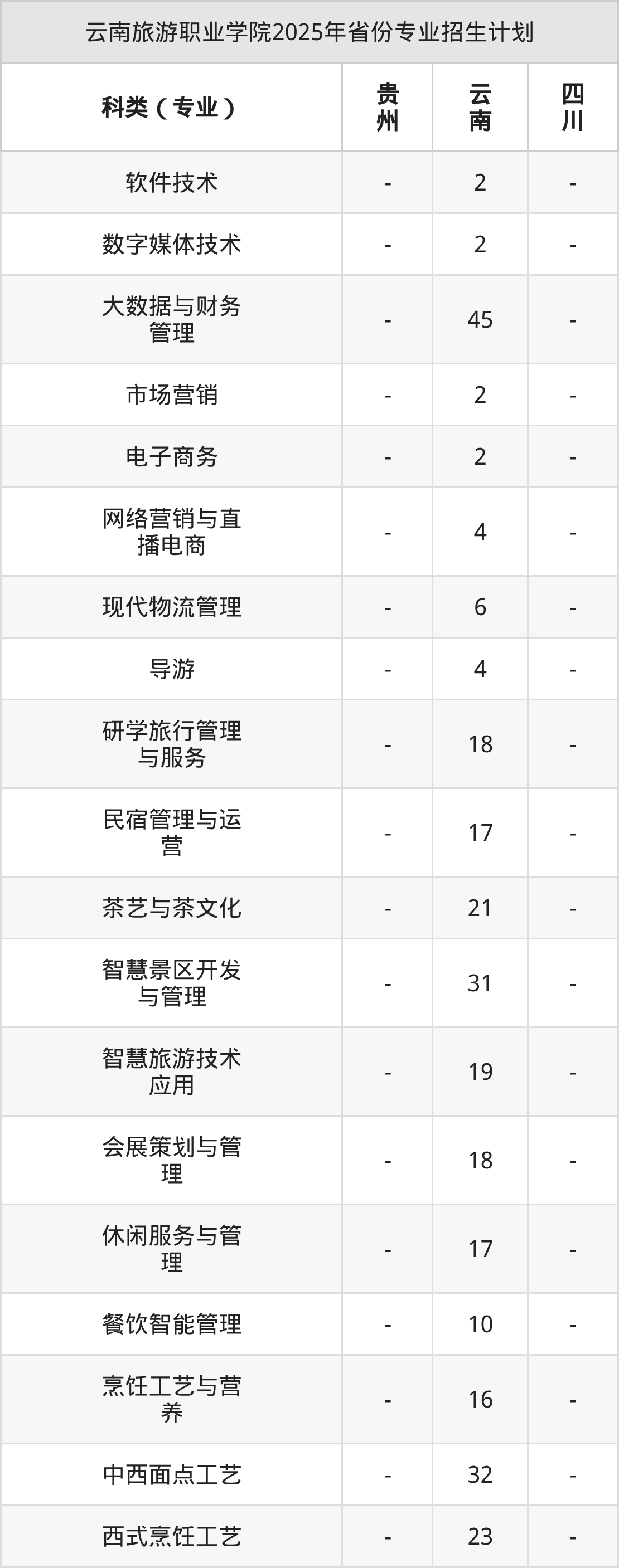 2026年云南旅游职业学院专科招生计划待公布,下面附上2025年数据,暂供参考:
