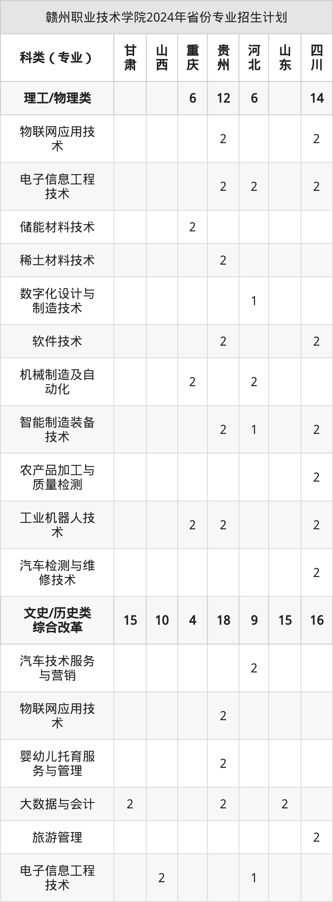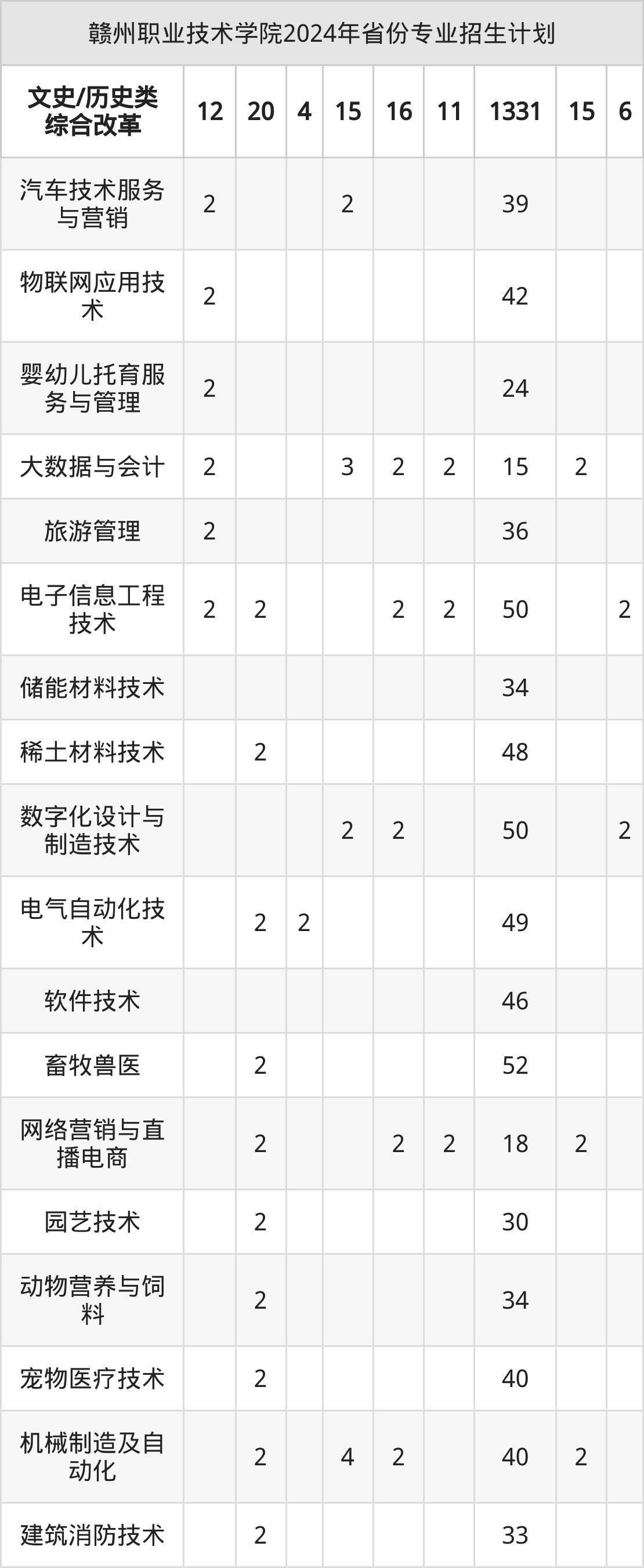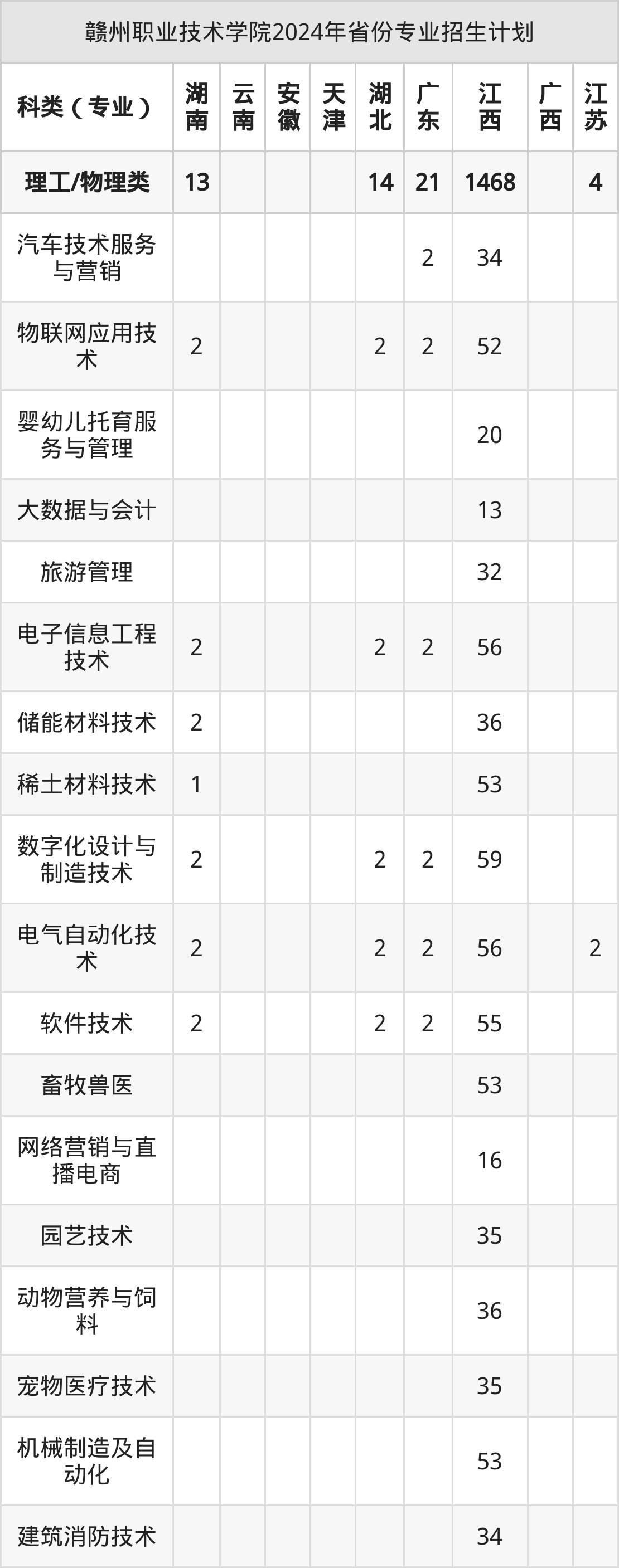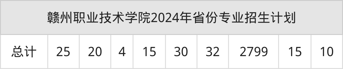 2025年赣州职业技术学院专科招生计划待公布,下面附上2024年数据,暂供参考: