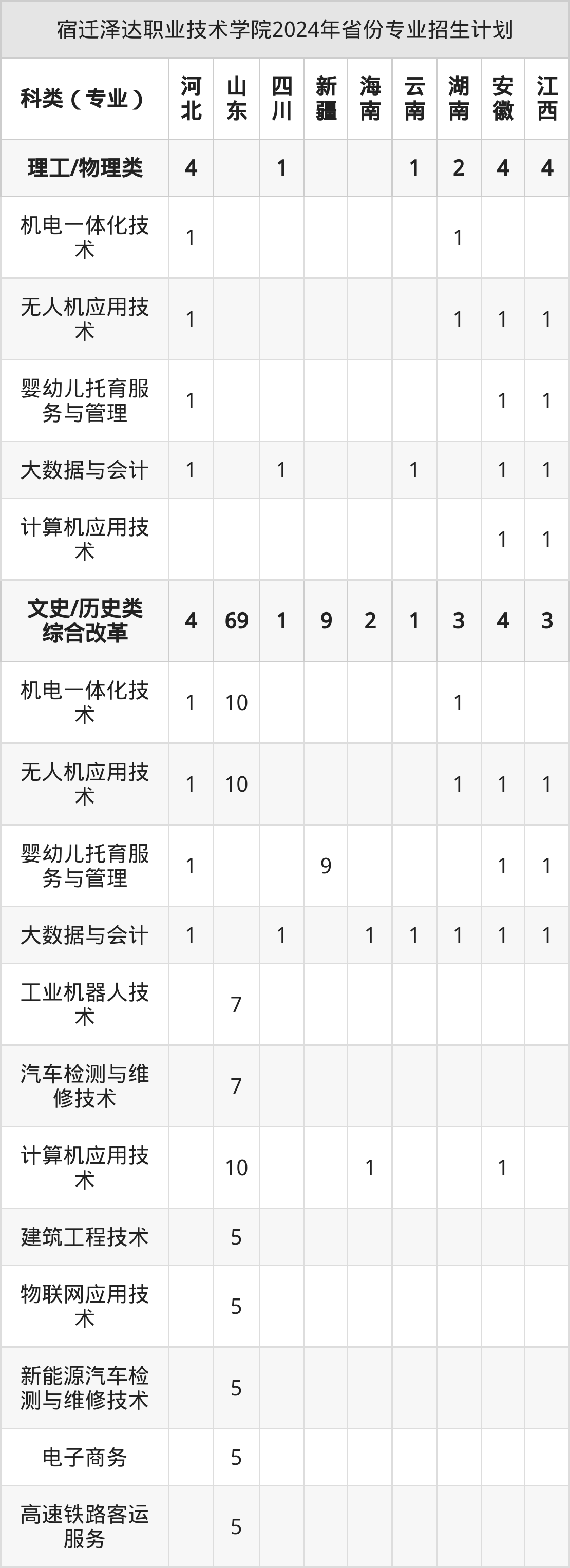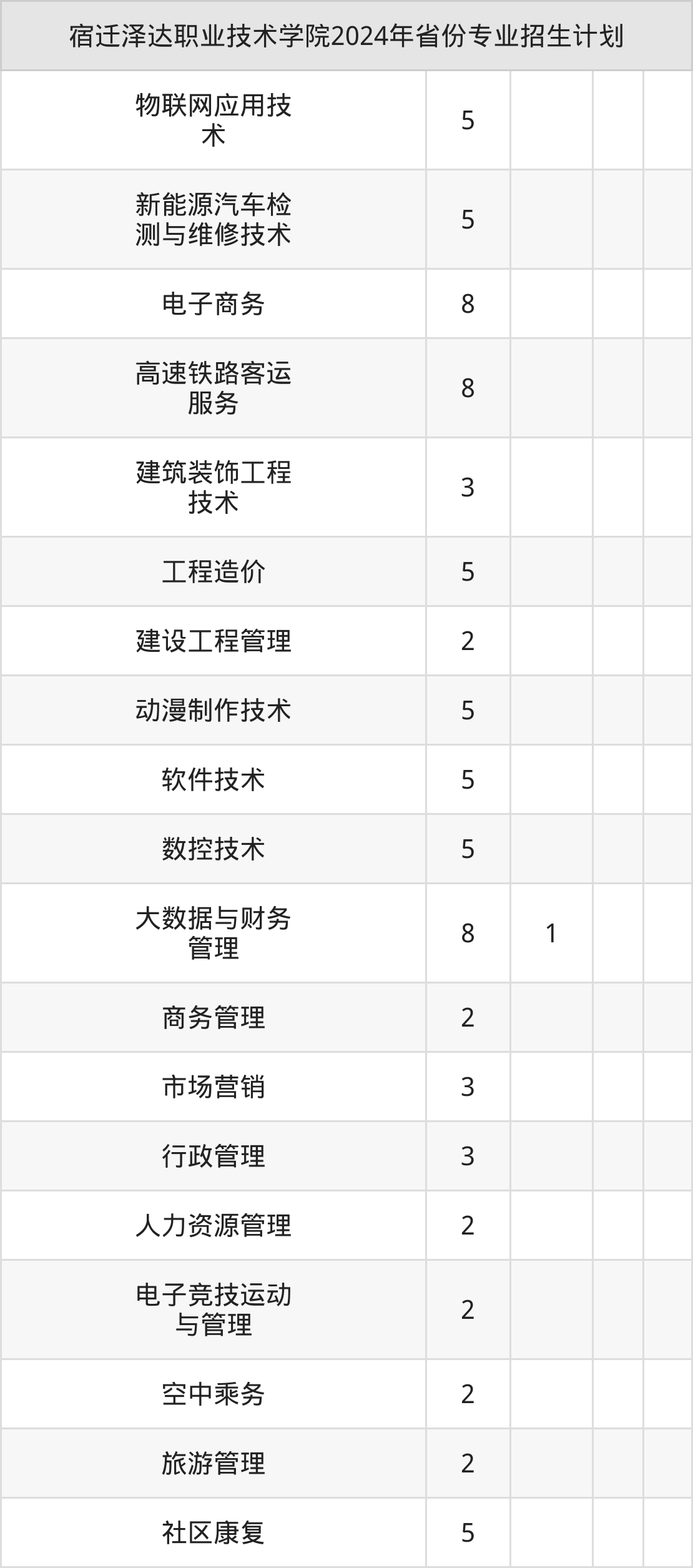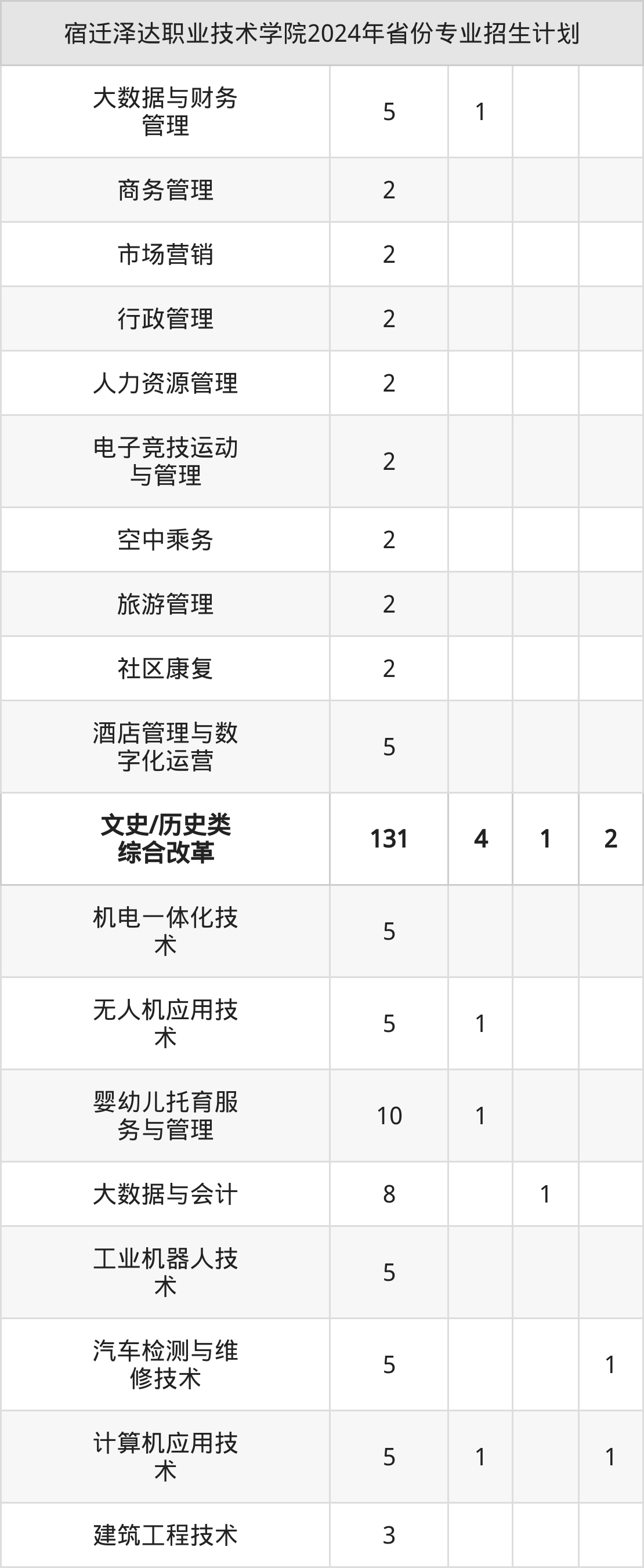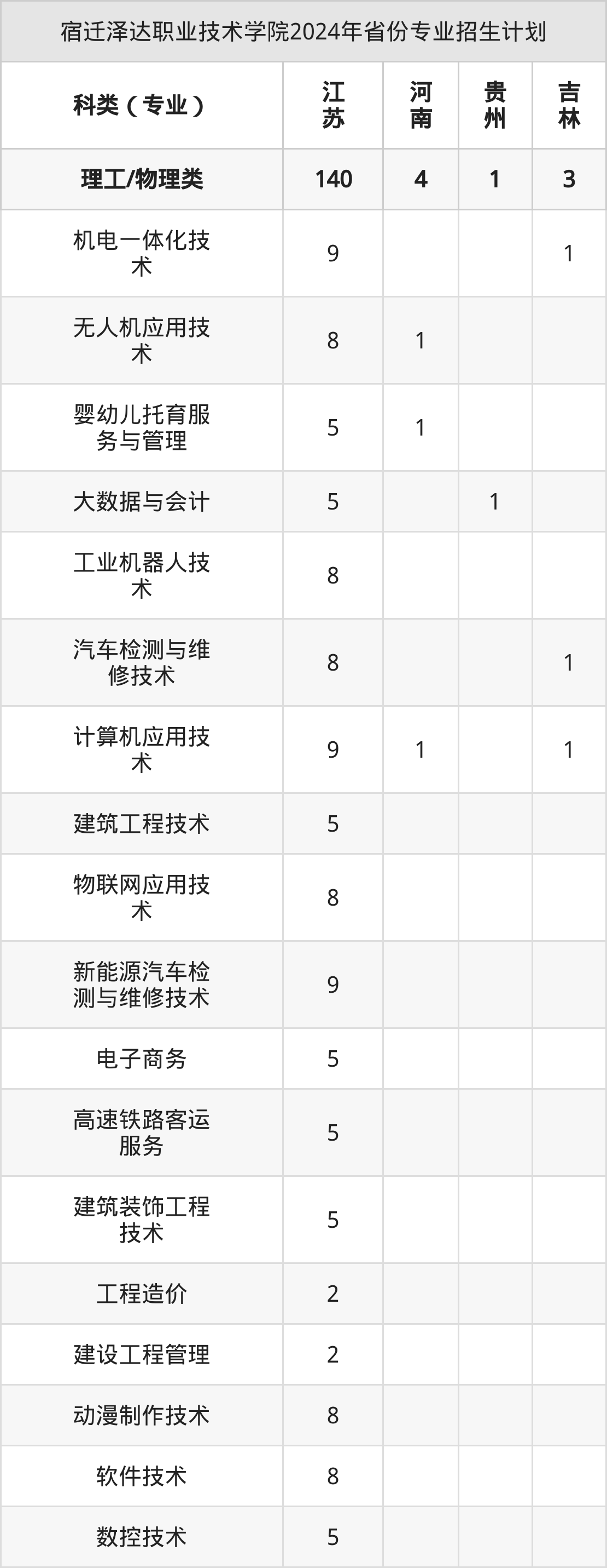 2025年宿迁泽达职业技术学院专科招生计划待公布,下面附上2024年数据,暂供参考: