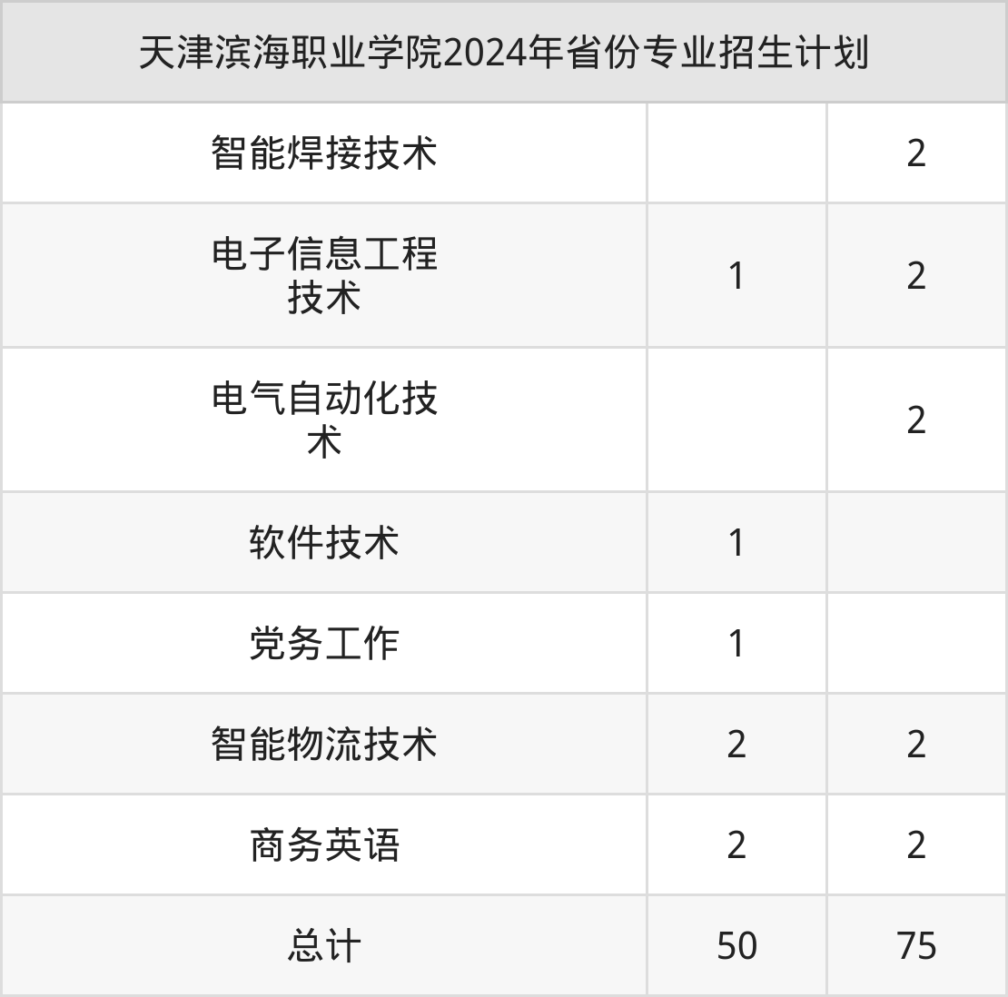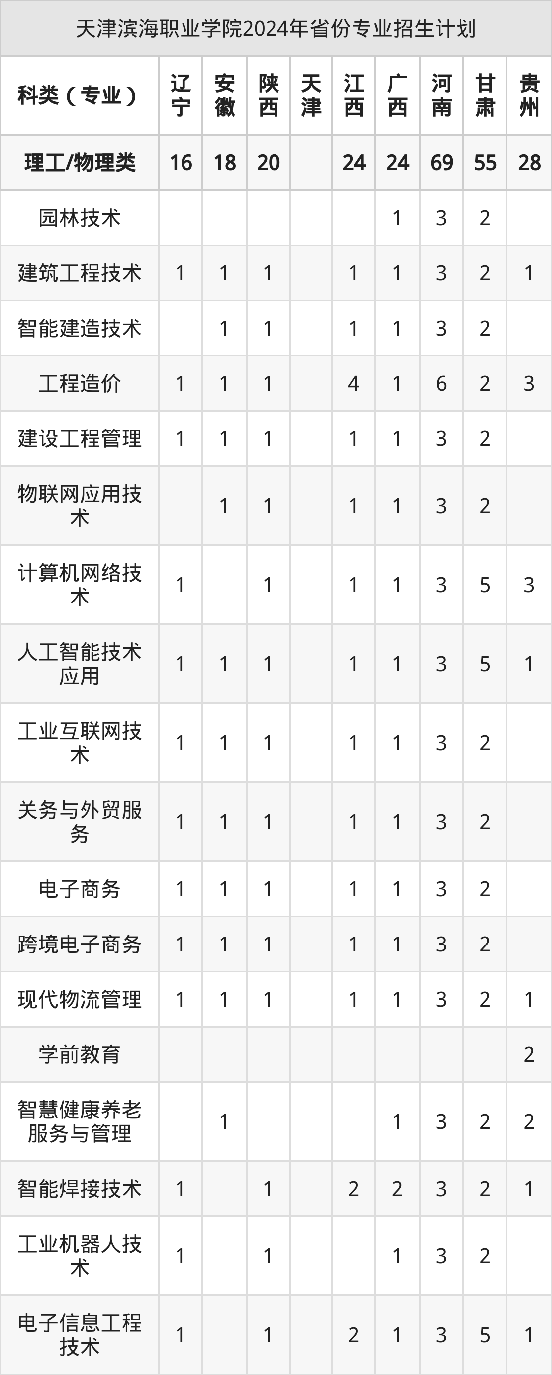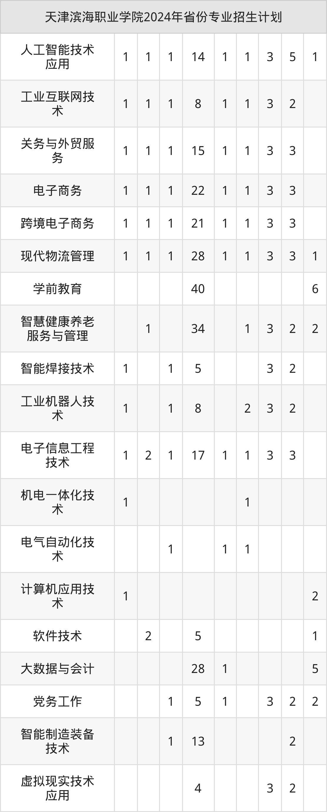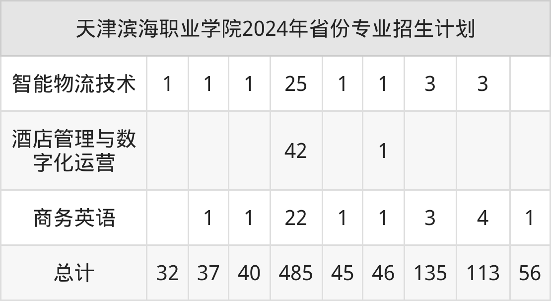 2025年天津滨海职业学院专科招生计划待公布,下面附上2024年数据,暂供参考: