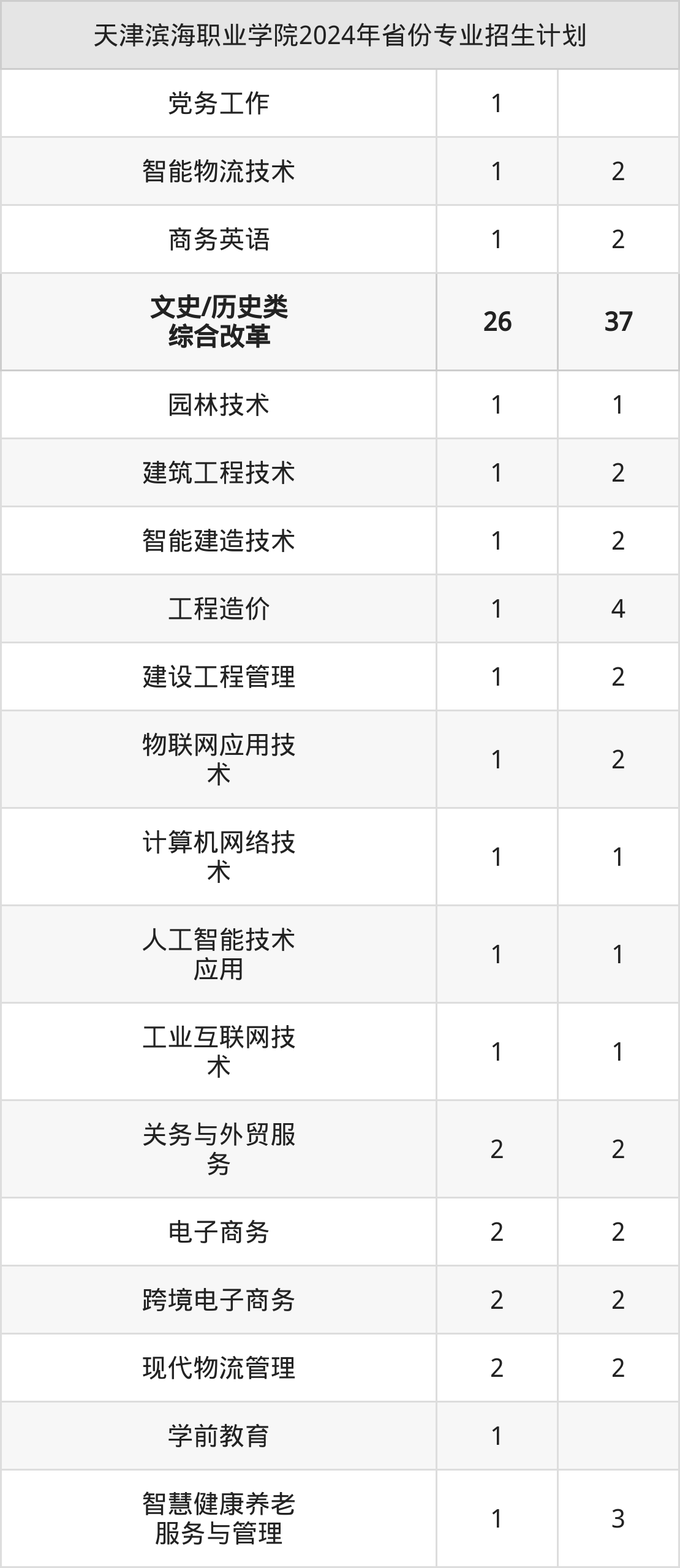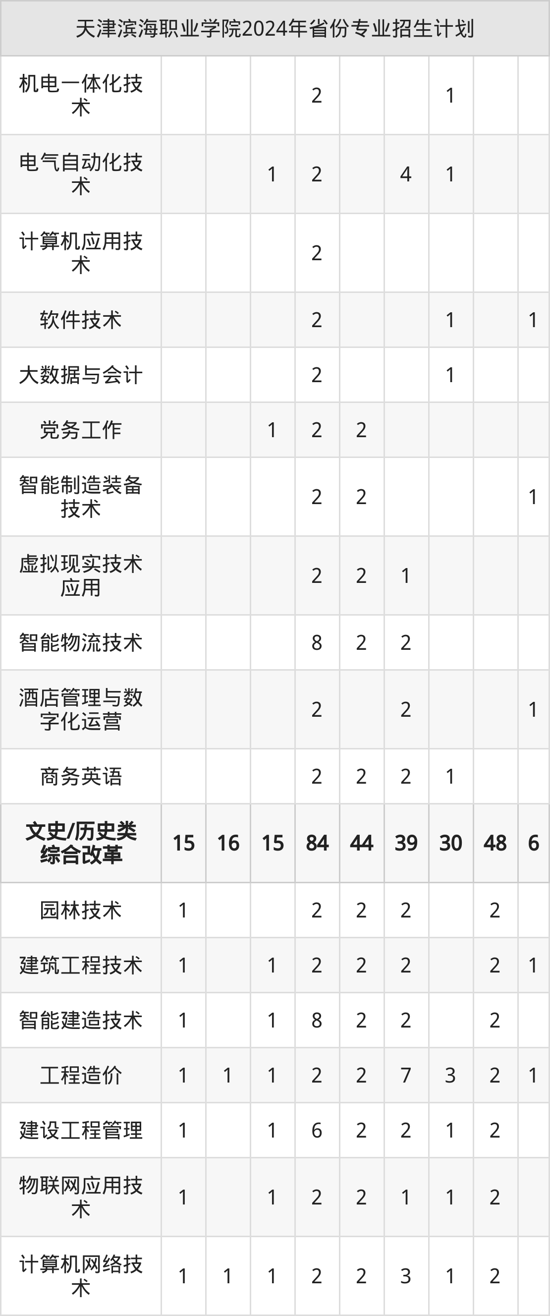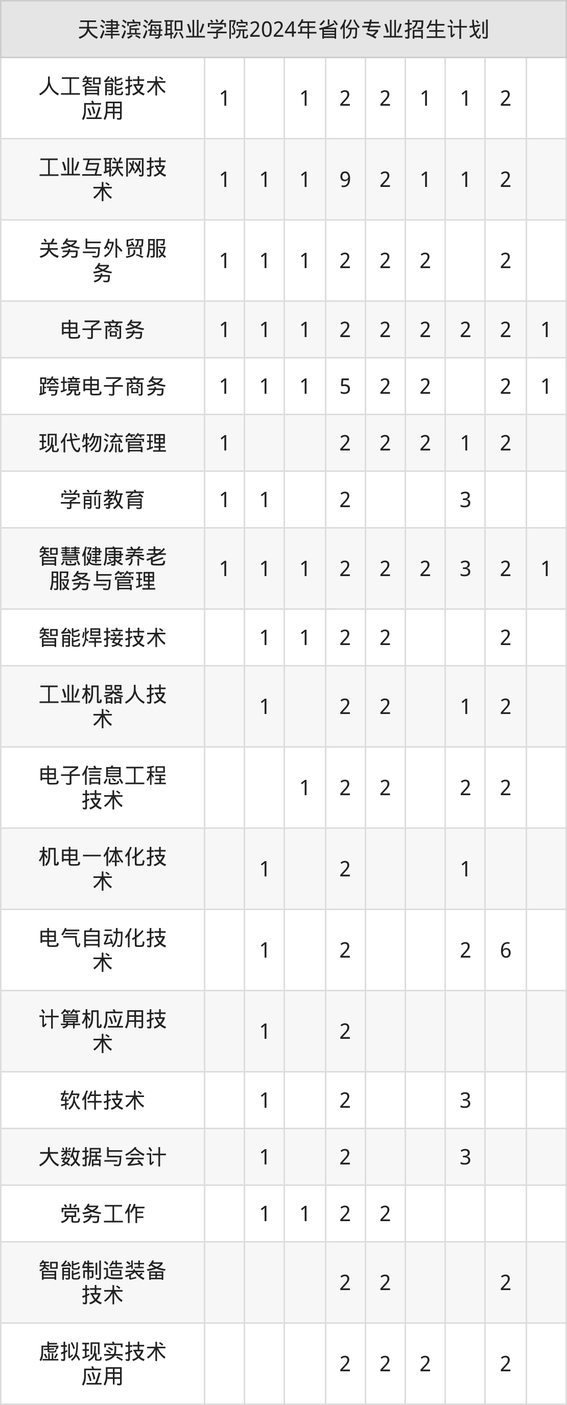 2025年天津滨海职业学院专科招生计划待公布,下面附上2024年数据,暂供参考: