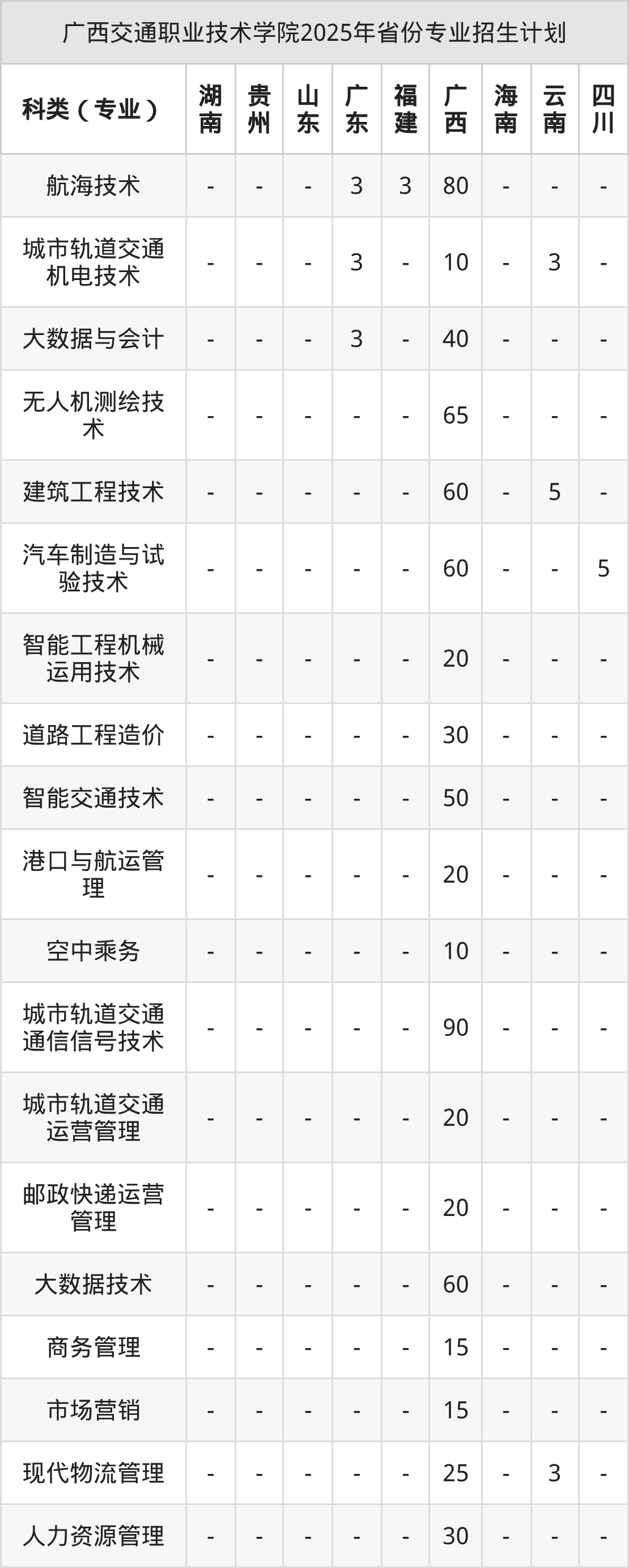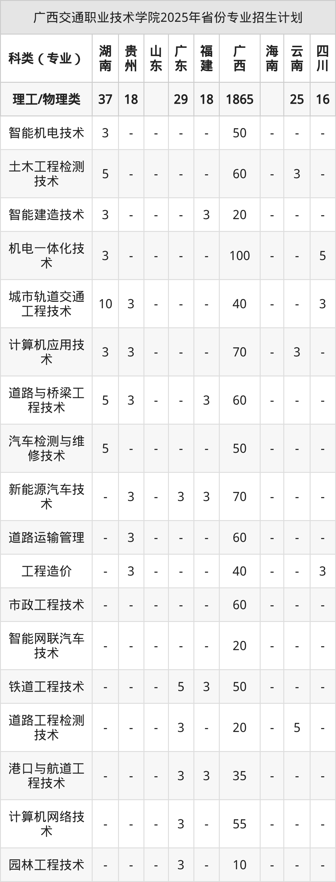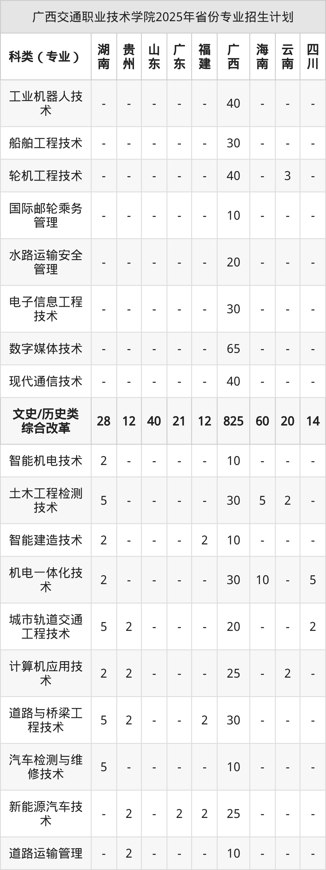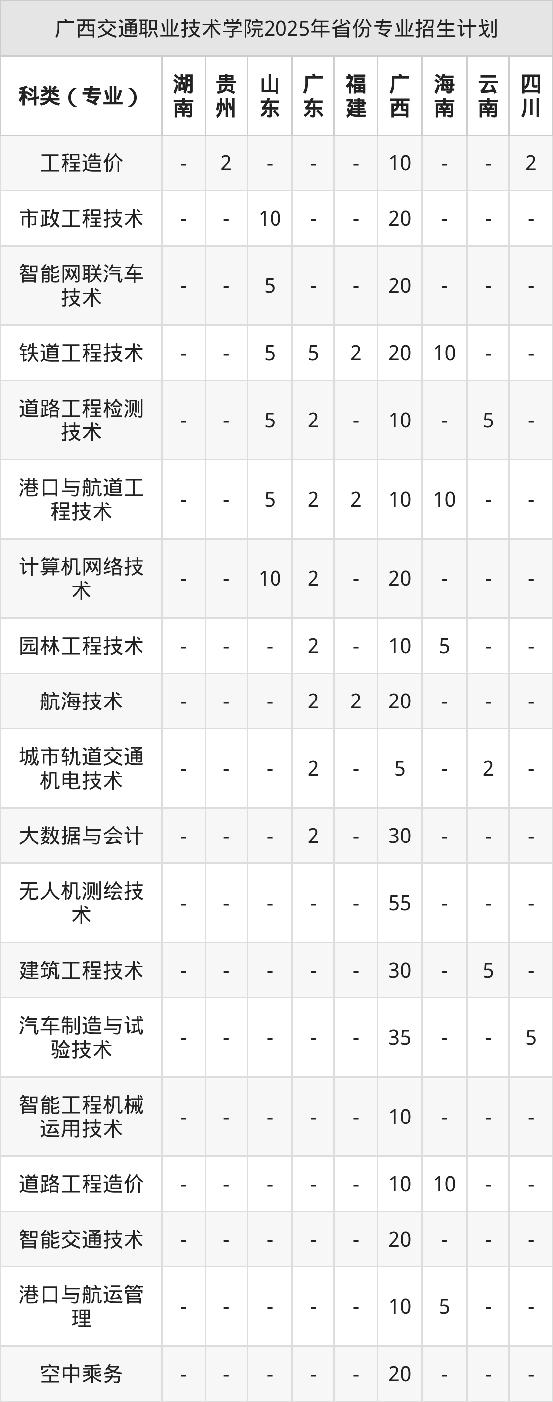 2026年广西交通职业技术学院专科招生计划待公布,下面附上2025年数据,暂供参考: