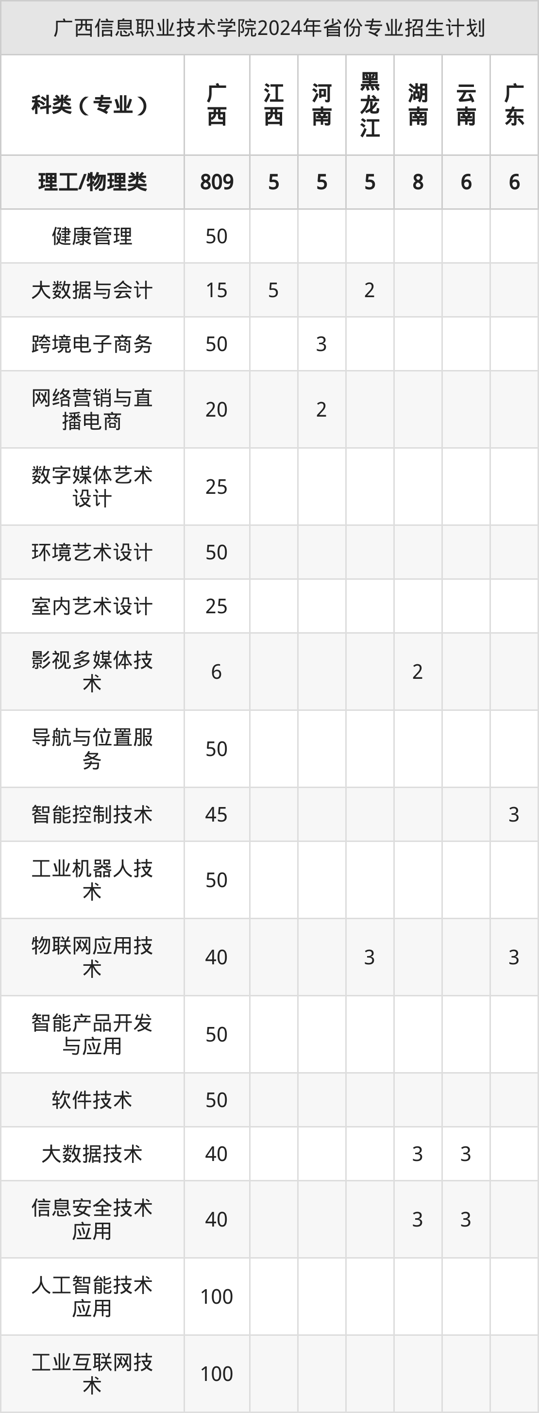 2025年广西信息职业技术学院专科招生计划待公布,下面附上2024年数据,暂供参考: