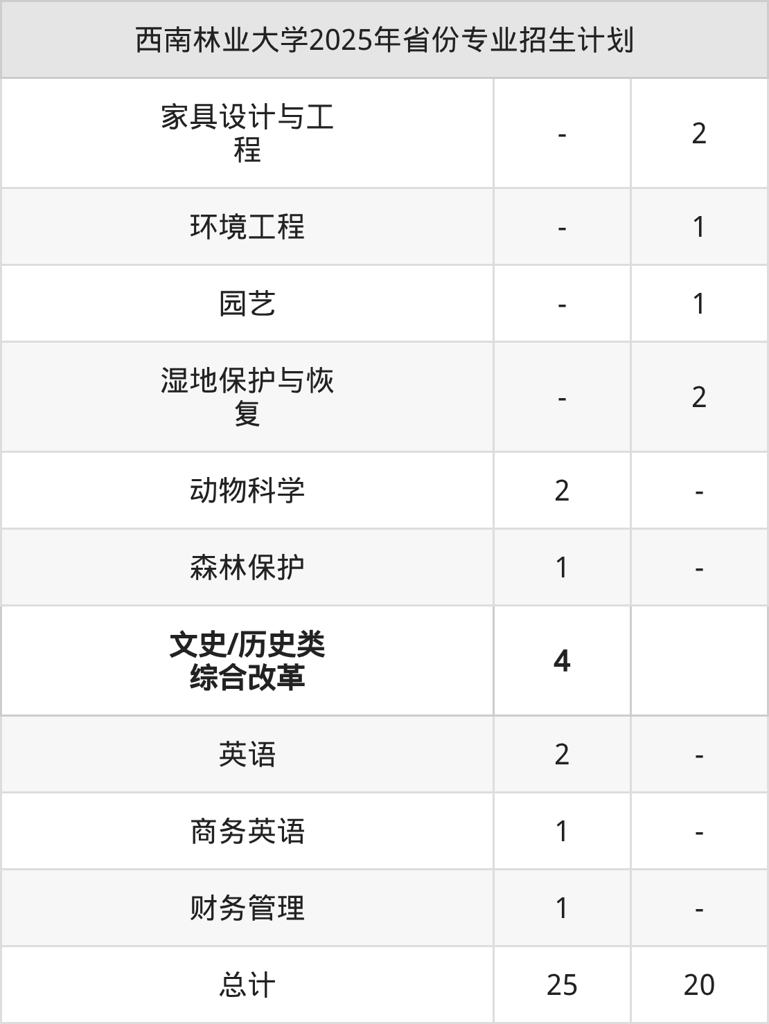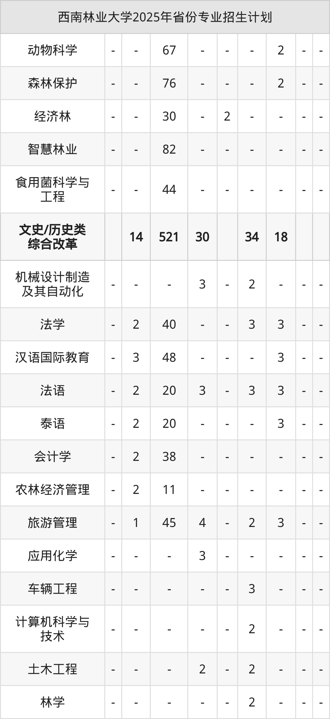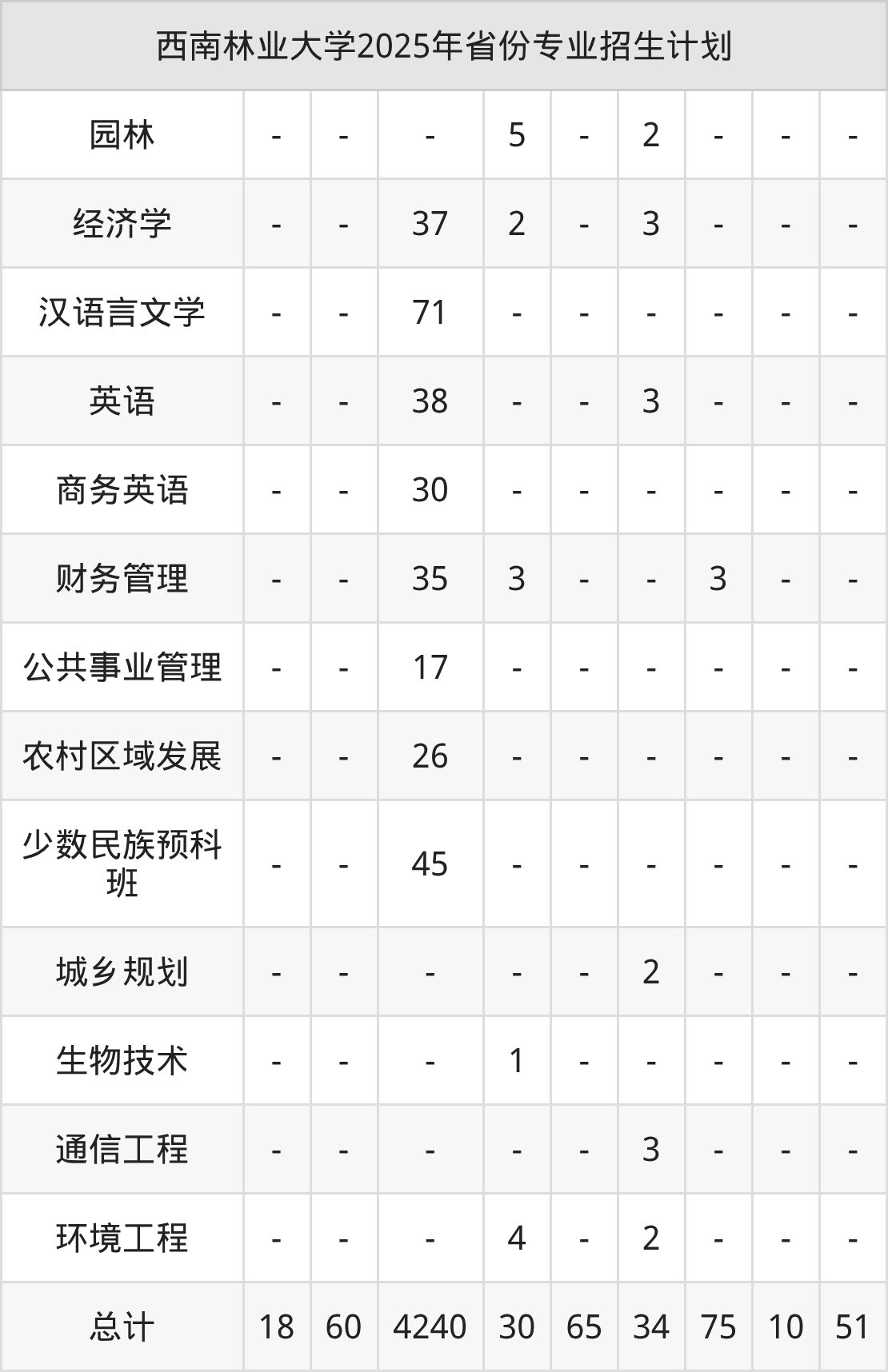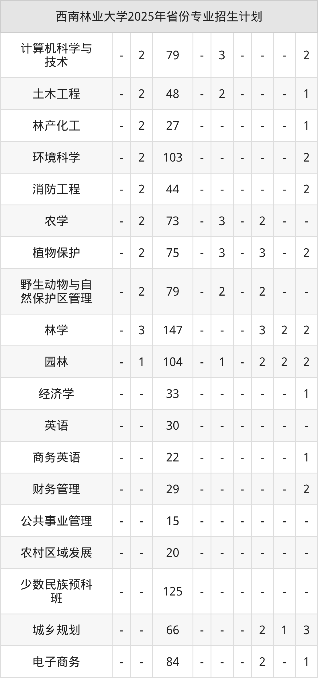 2026年西南林业大学本科招生计划待公布,下面附上2025年数据,暂供参考: