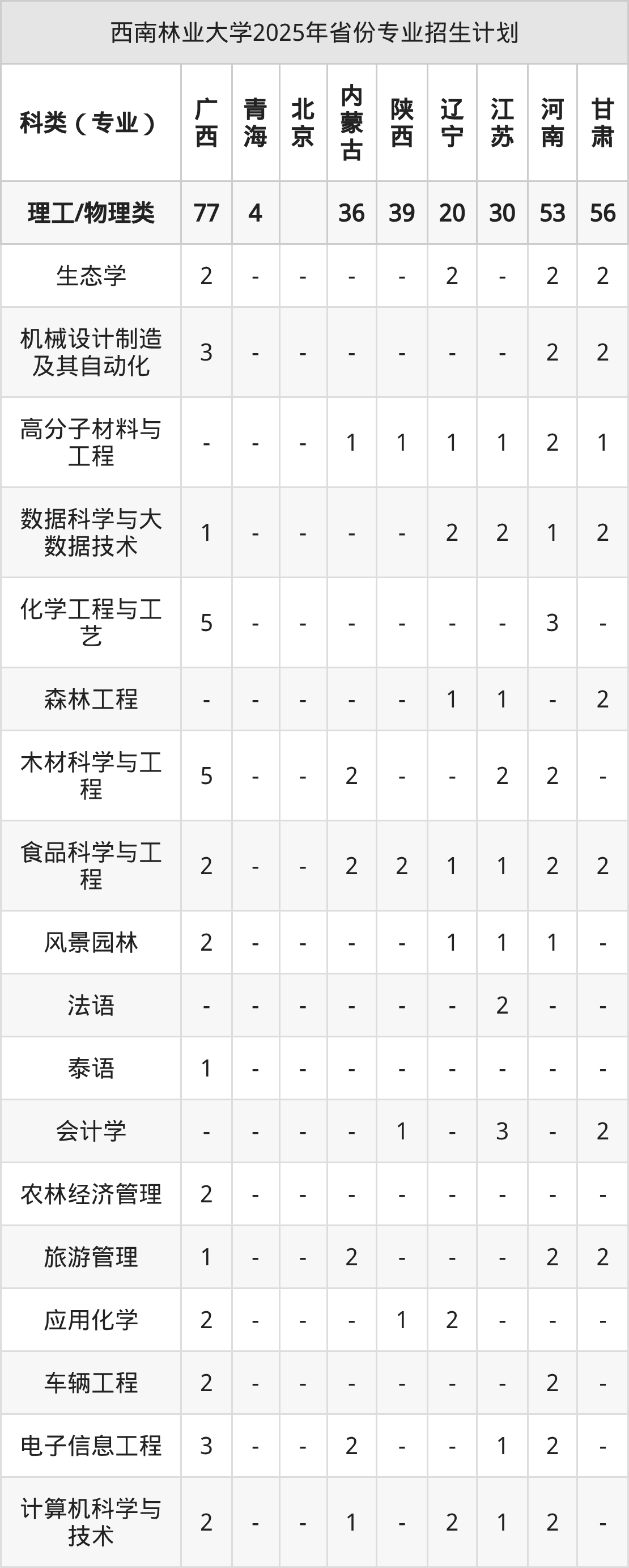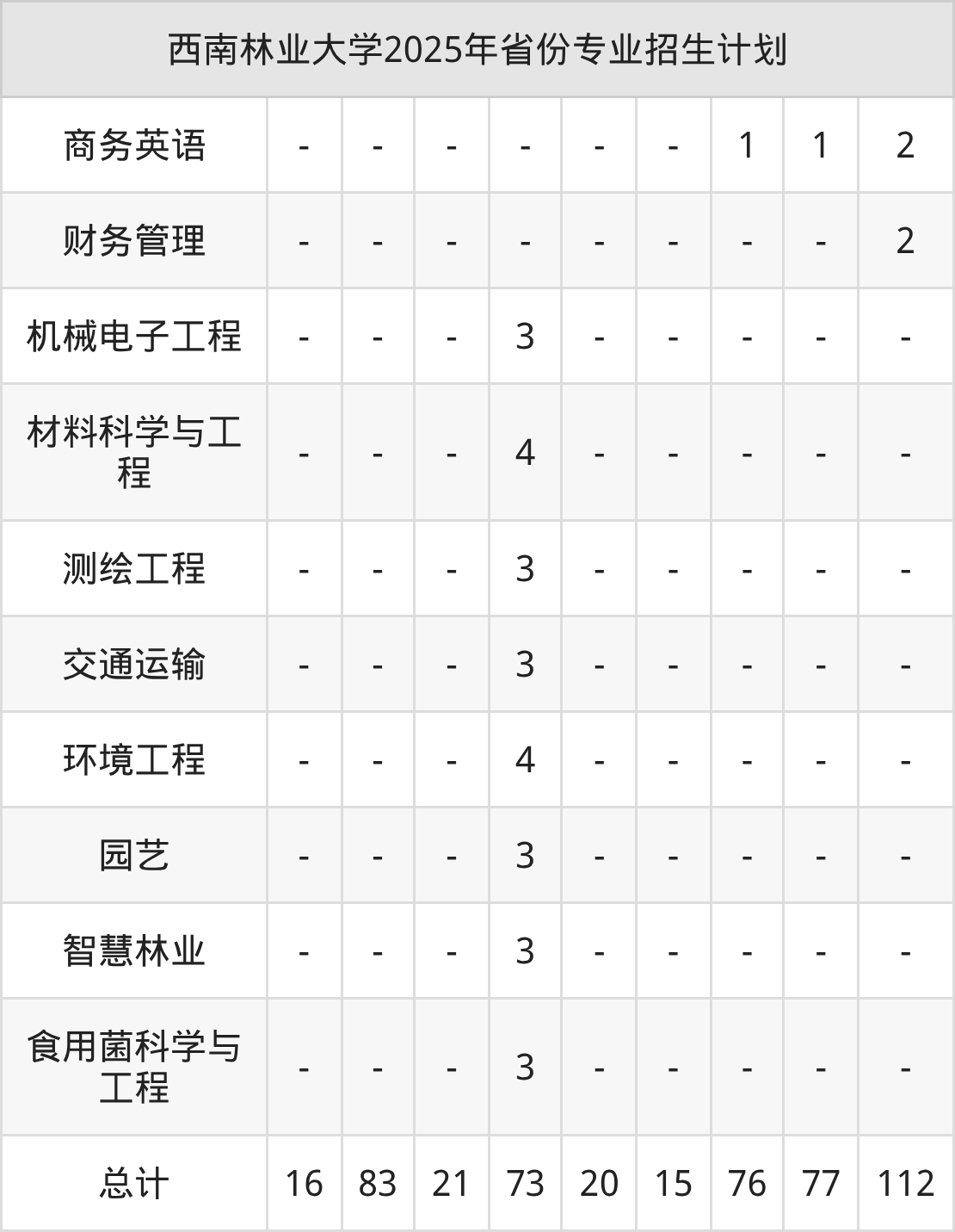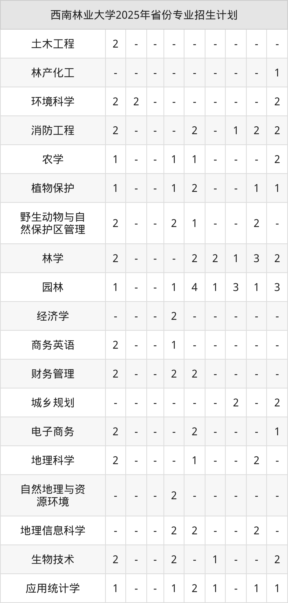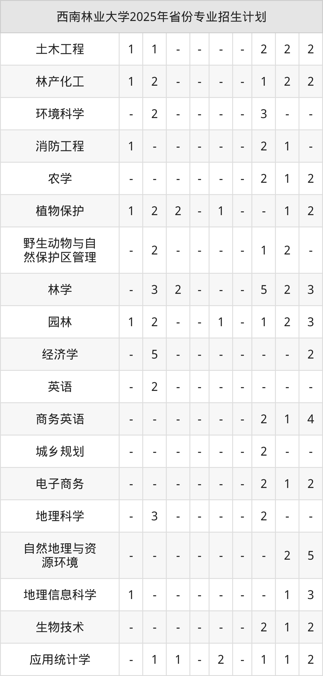 2026年西南林业大学本科招生计划待公布,下面附上2025年数据,暂供参考: