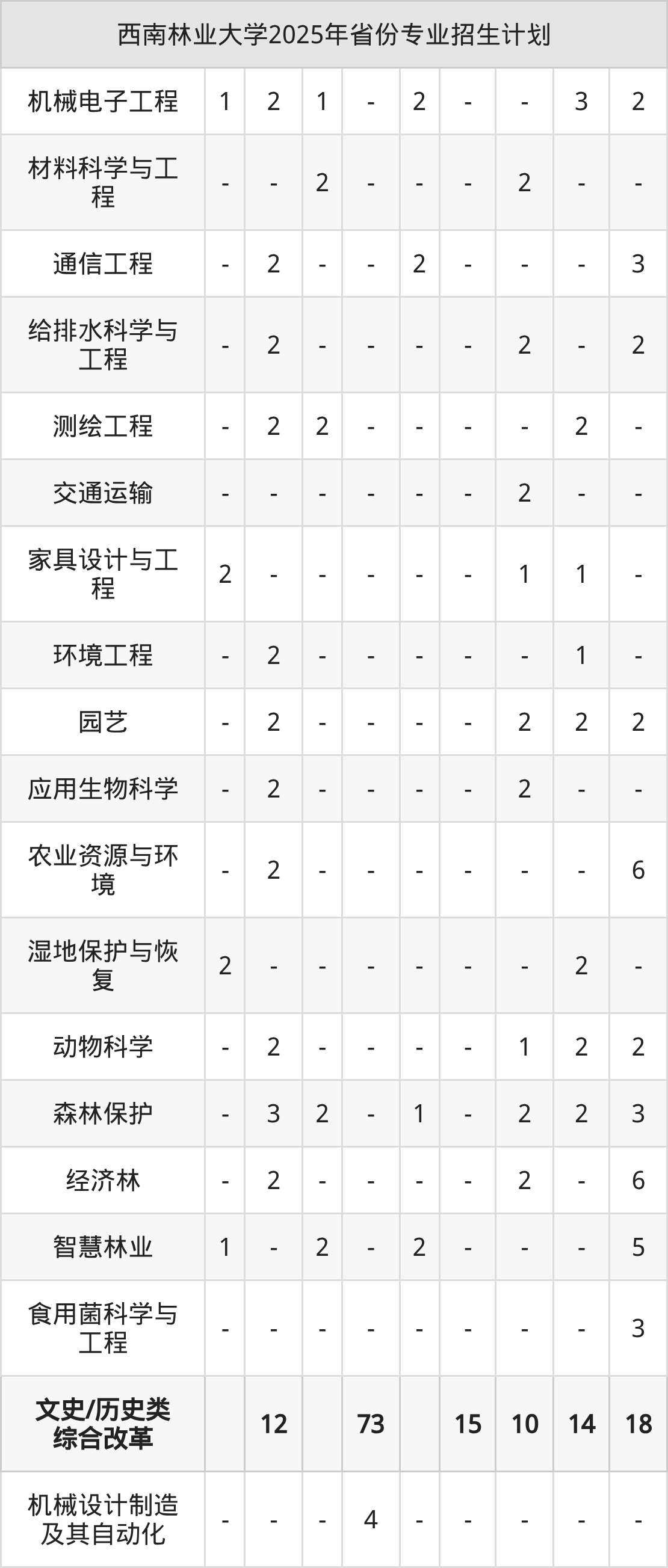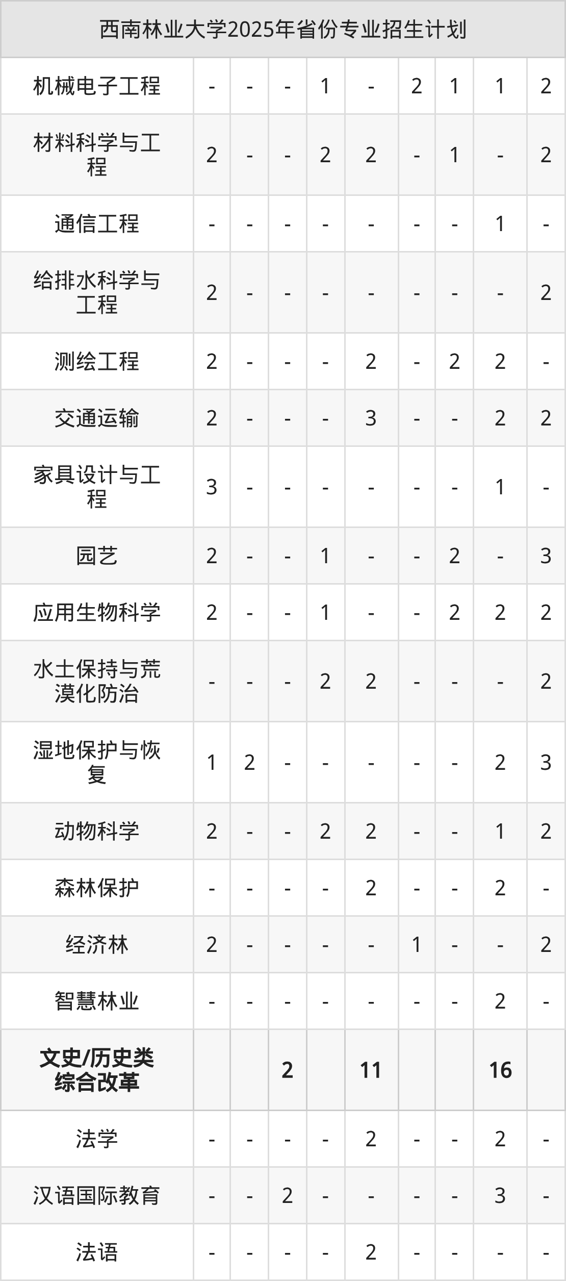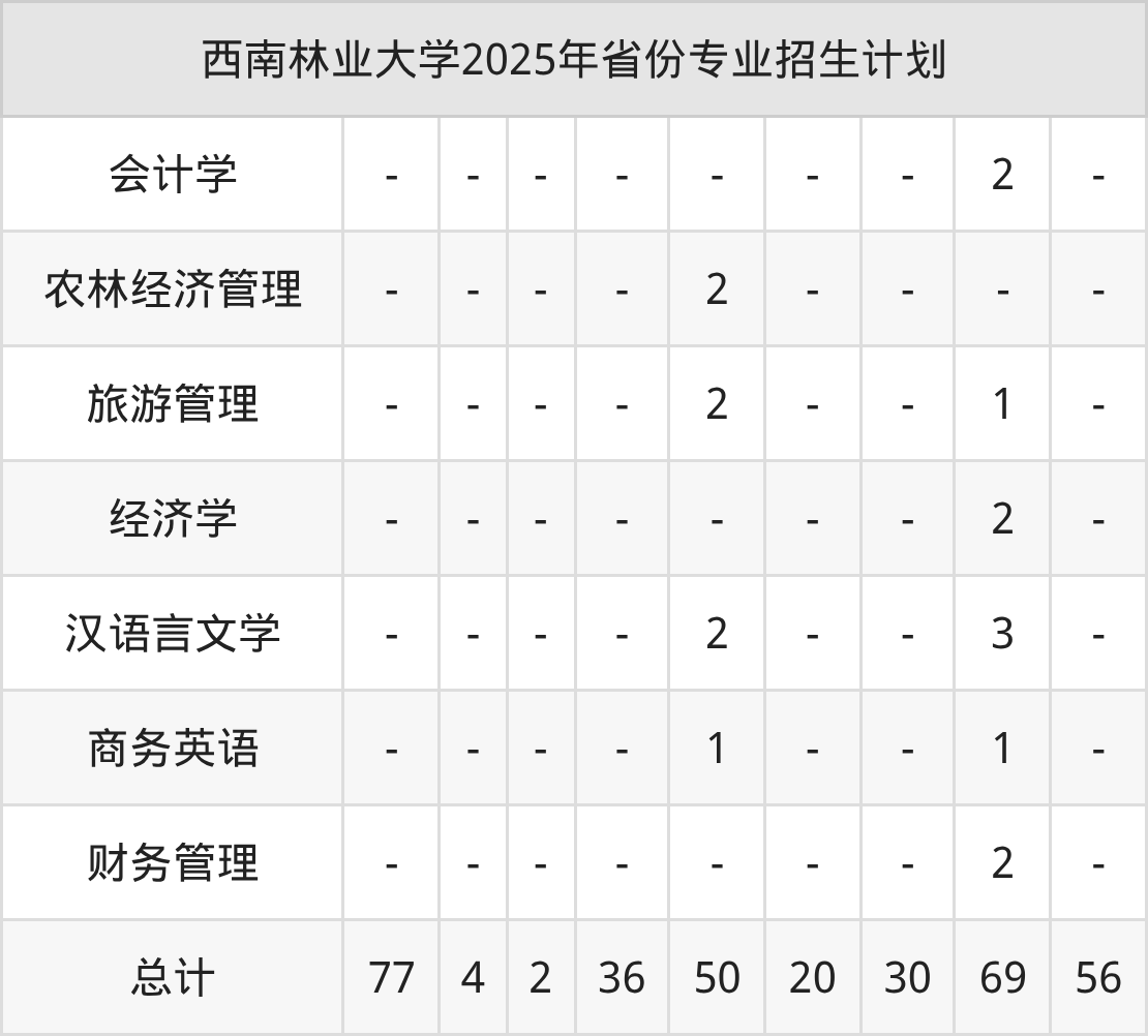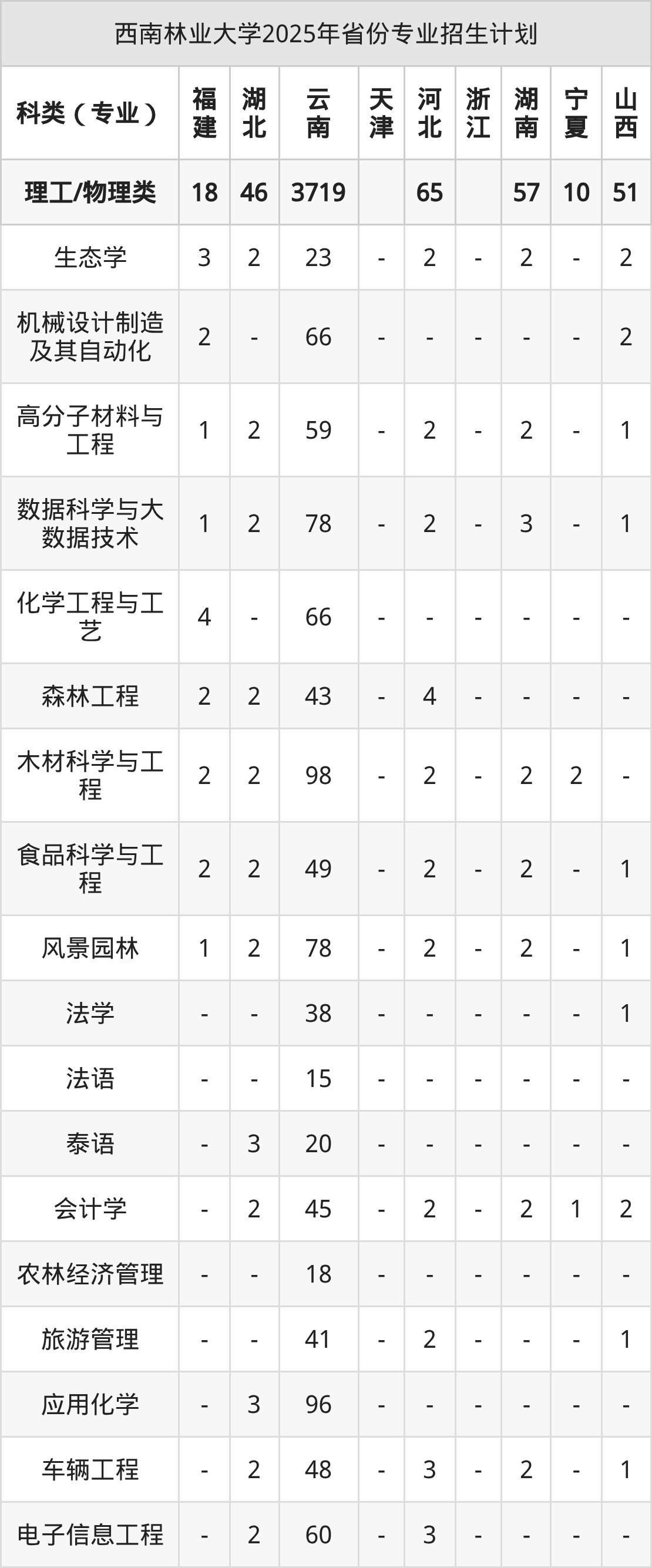 2026年西南林业大学本科招生计划待公布,下面附上2025年数据,暂供参考: