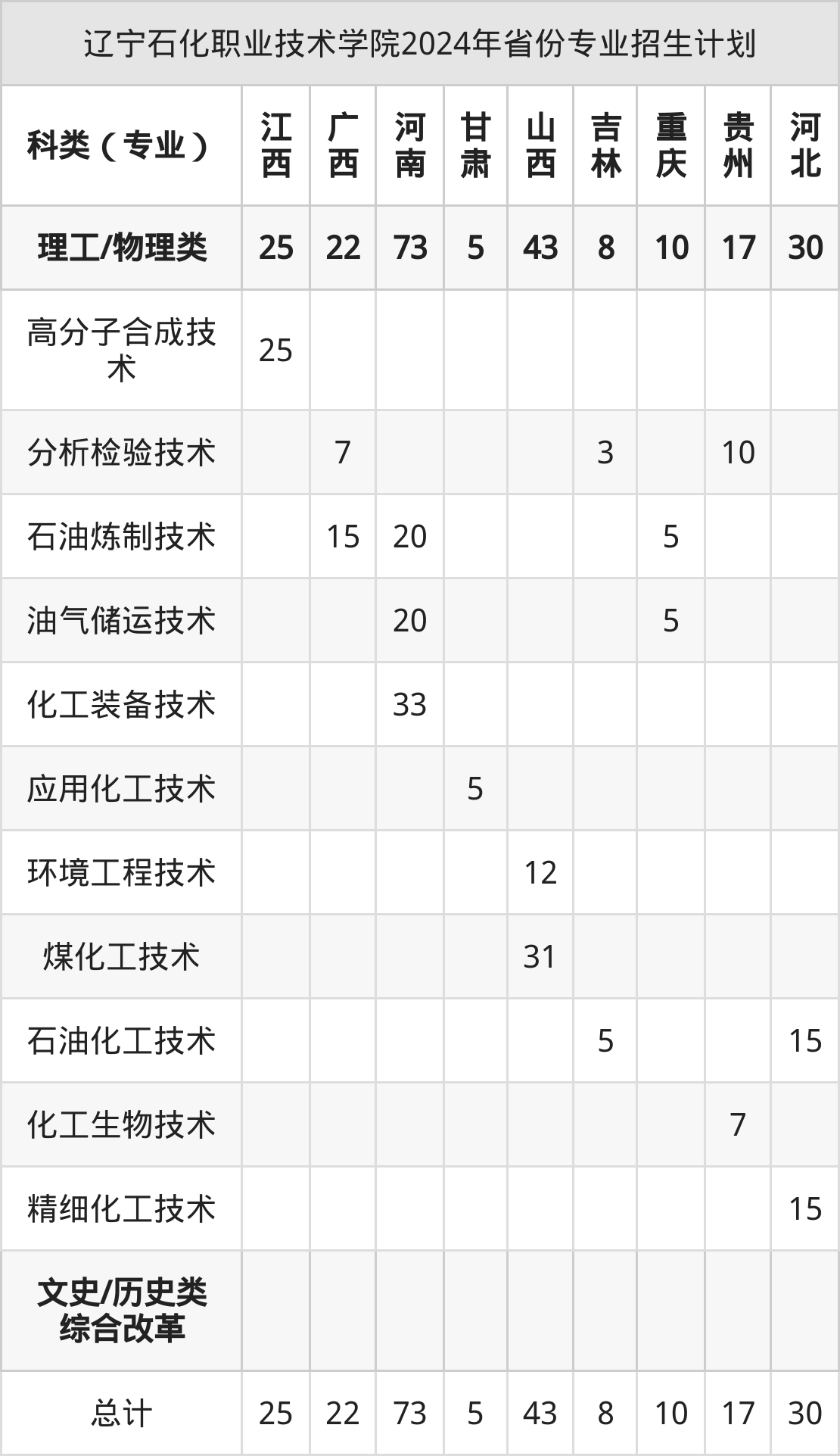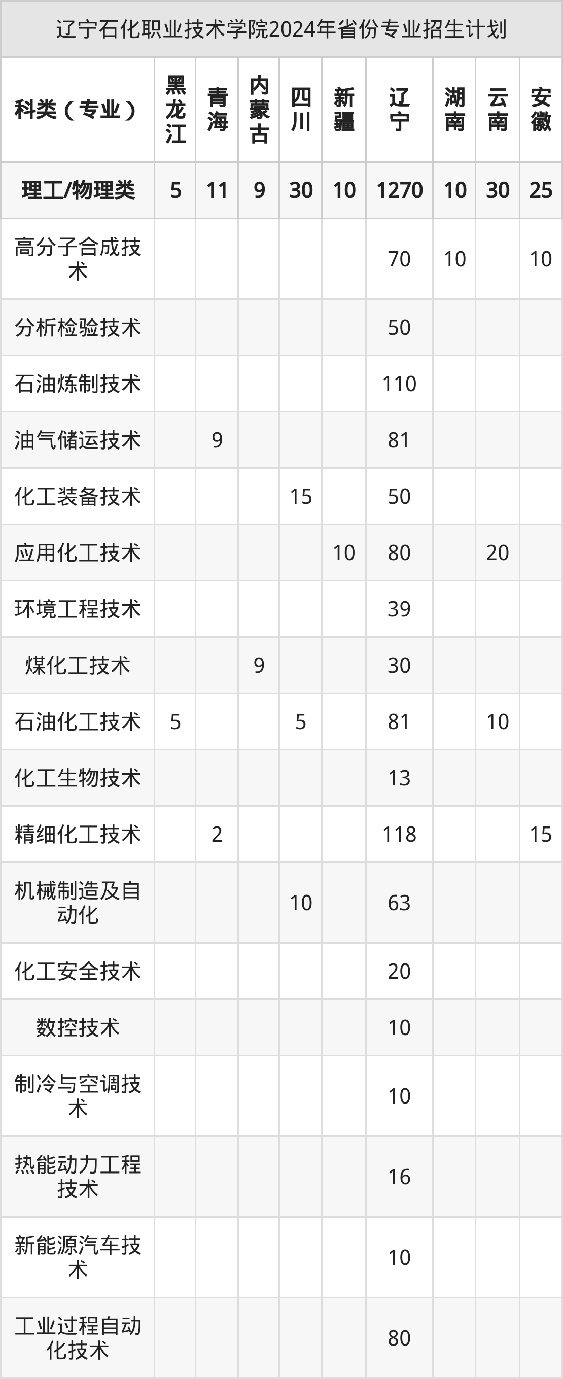 2025年辽宁石化职业技术学院专科招生计划待公布,下面附上2024年数据,暂供参考:
