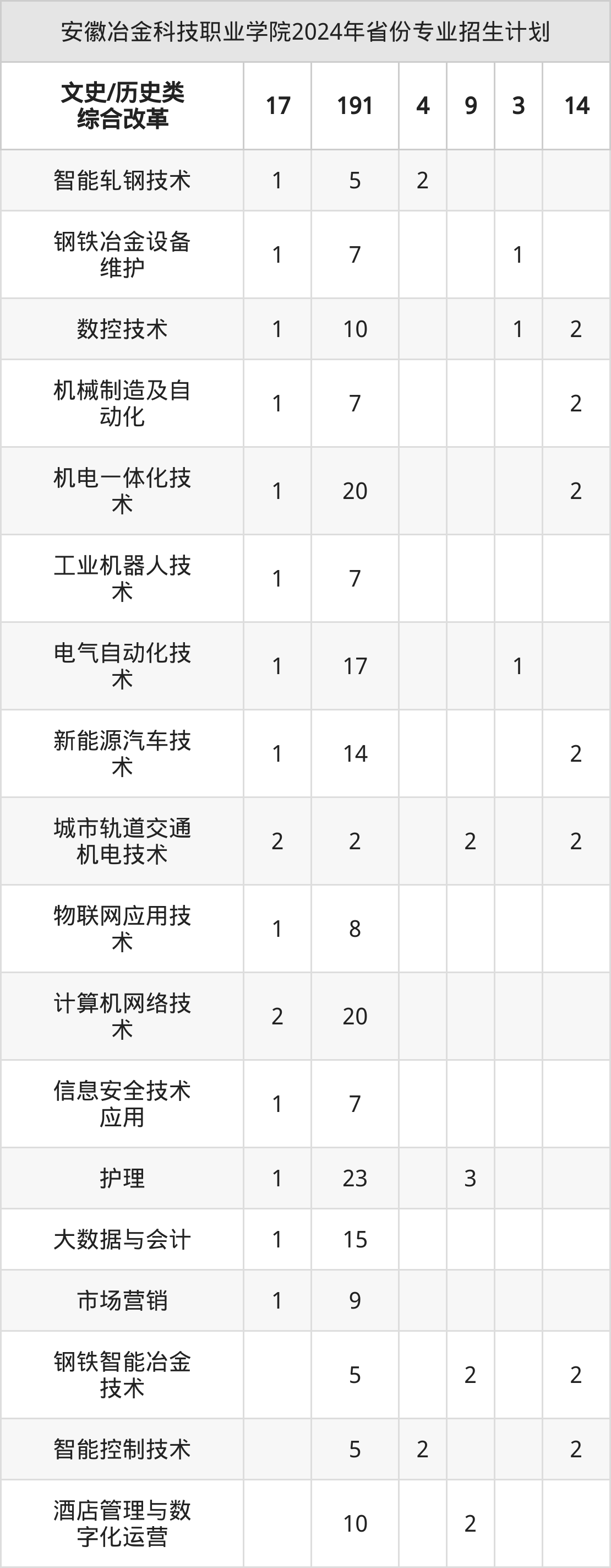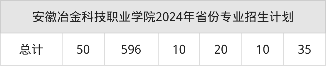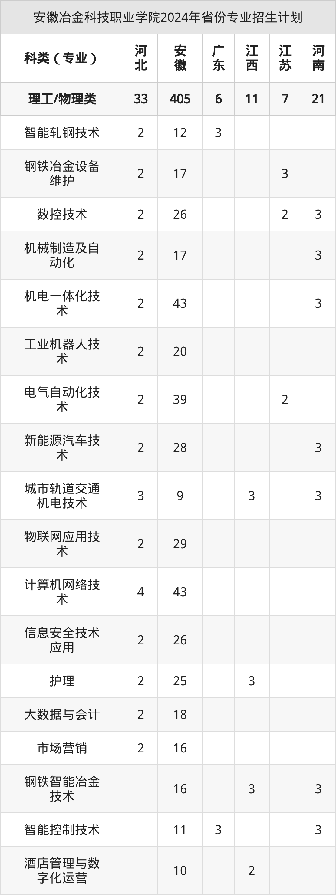 2025年安徽冶金科技职业学院专科招生计划待公布,下面附上2024年数据,暂供参考: