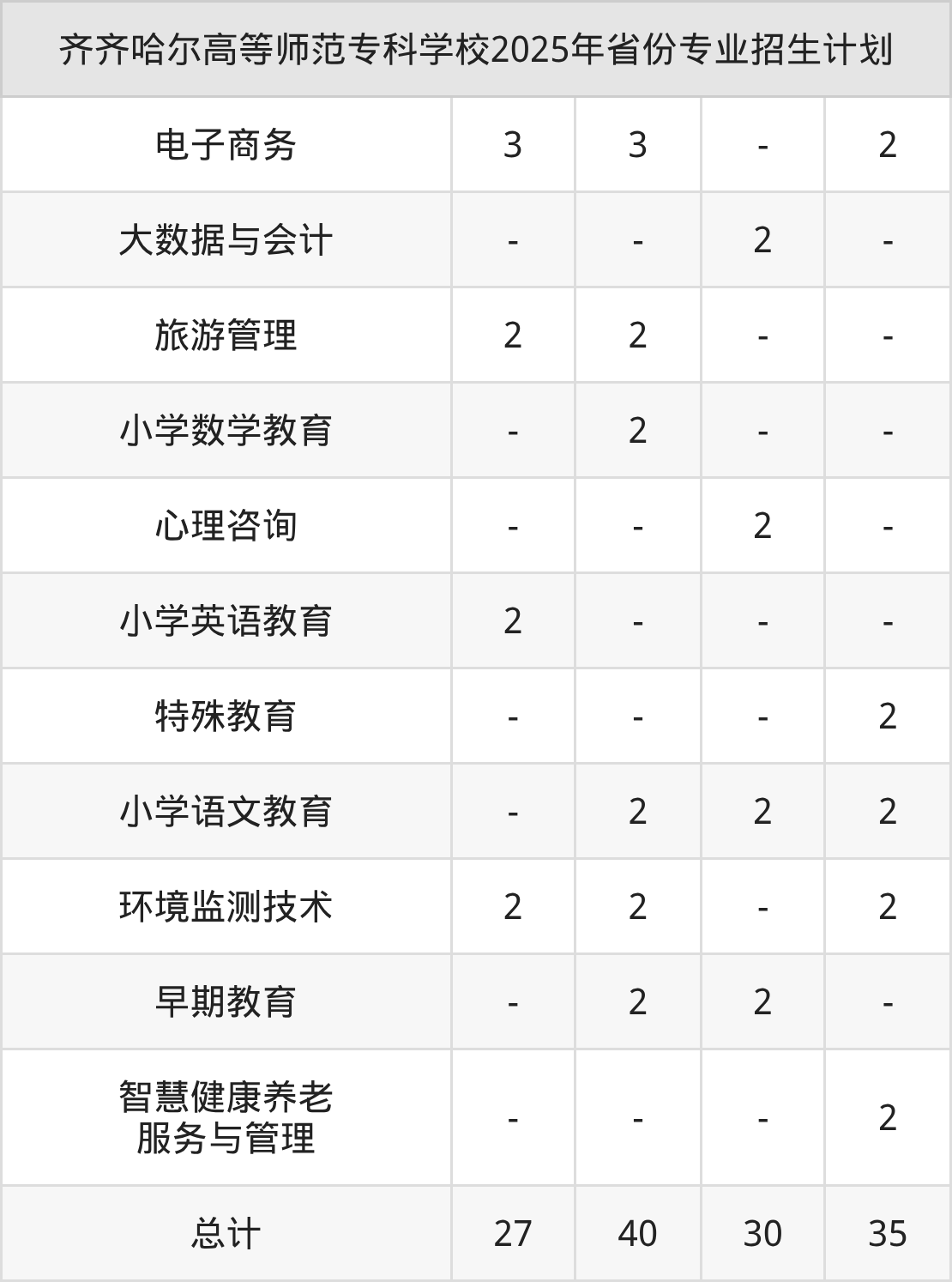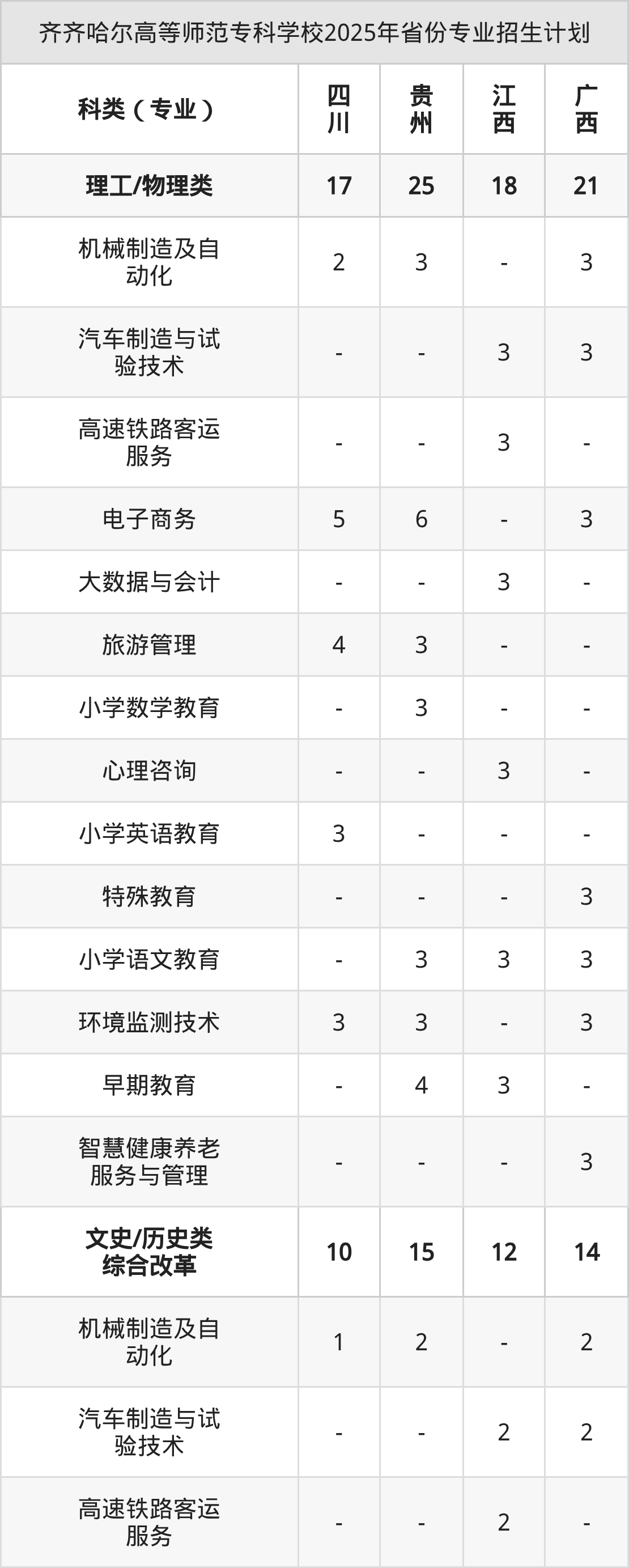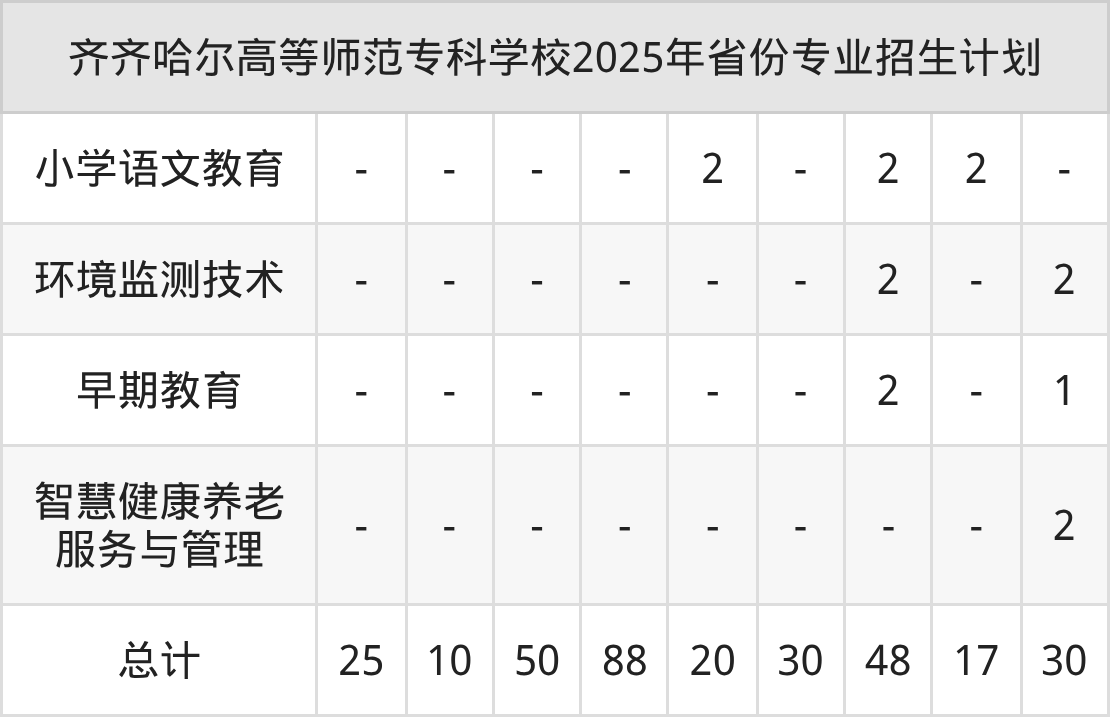 2026年齐齐哈尔高等师范专科学校专科招生计划待公布,下面附上2025年数据,暂供参考: