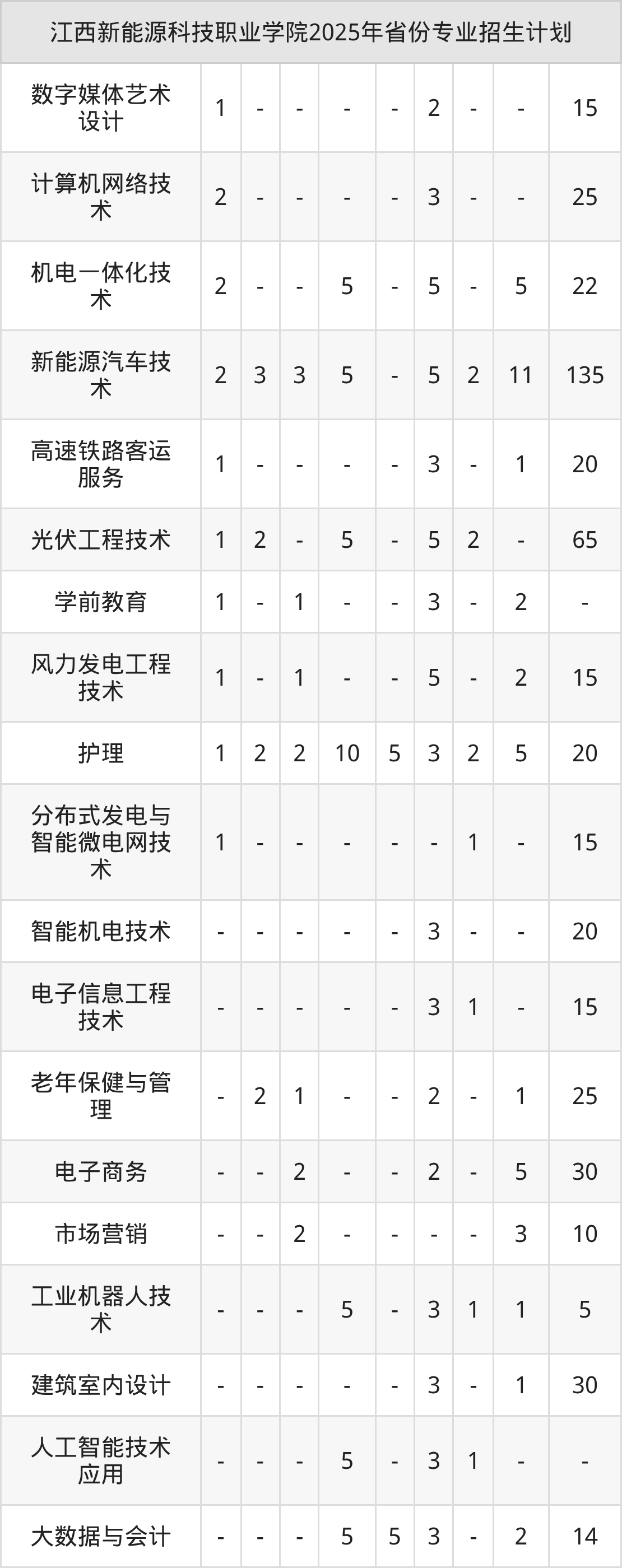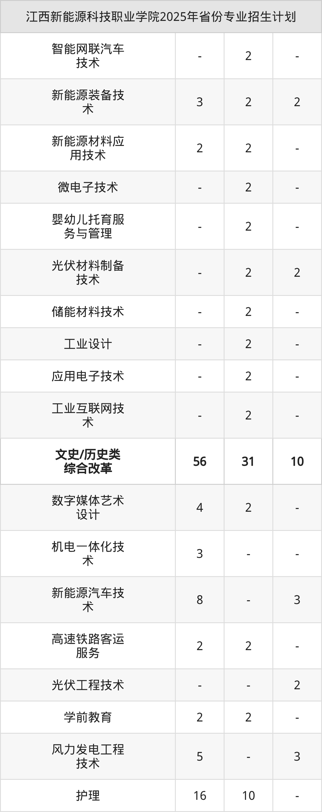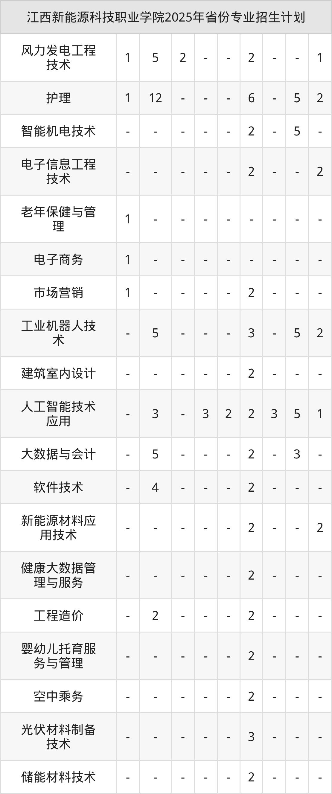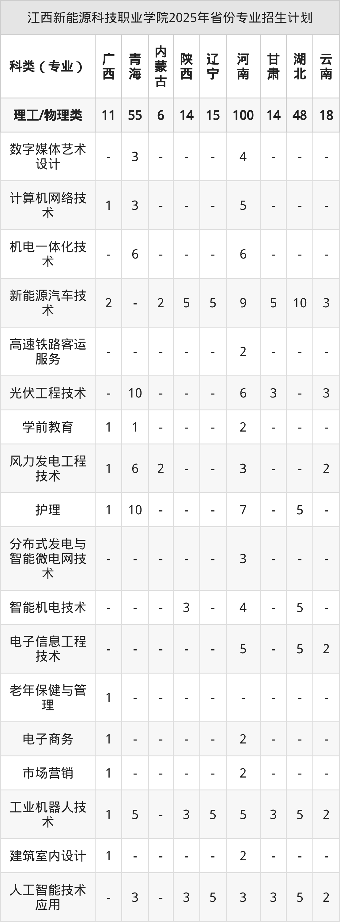 2026年江西新能源科技职业学院专科招生计划待公布,下面附上2025年数据,暂供参考: