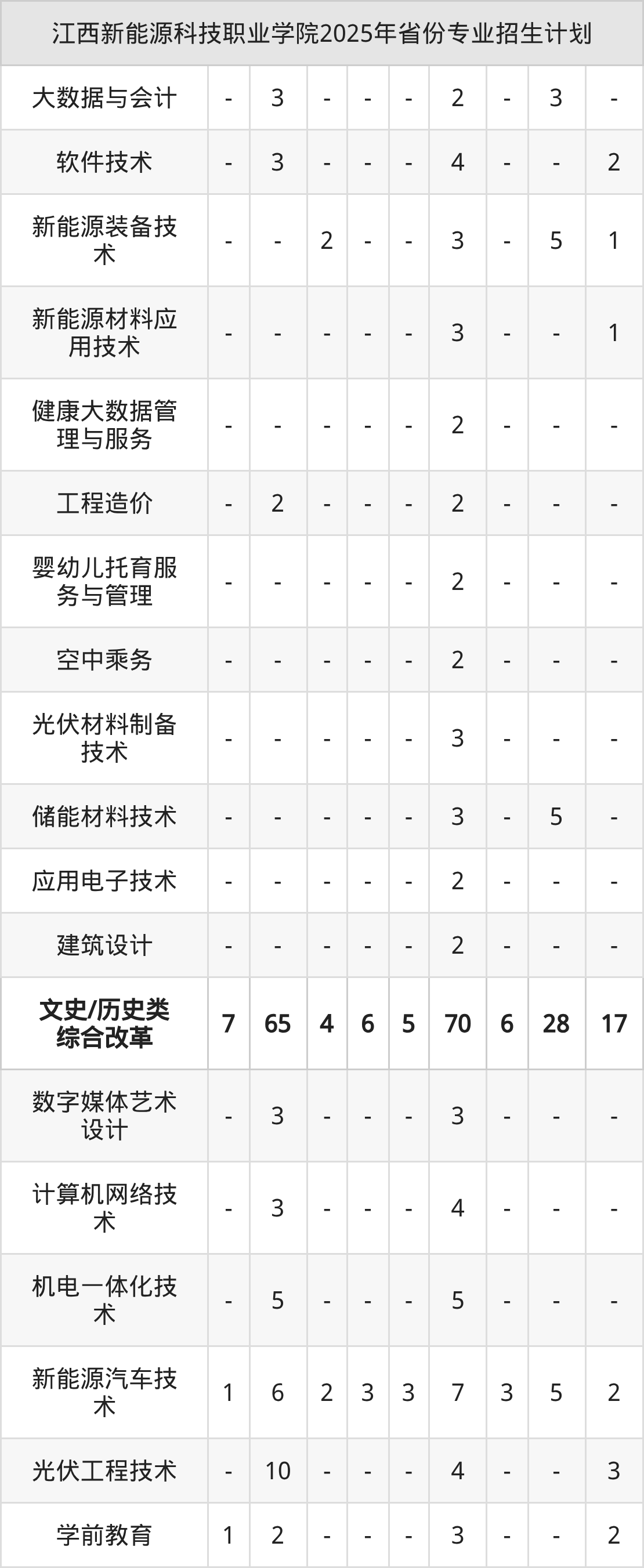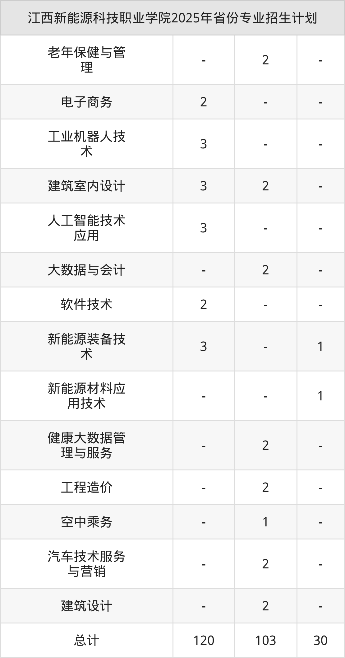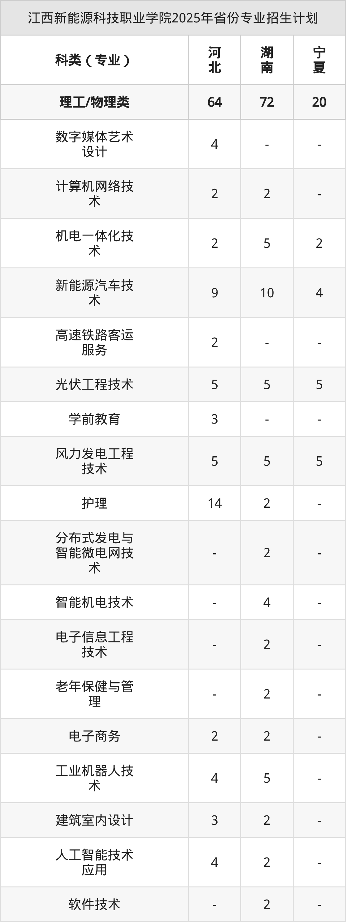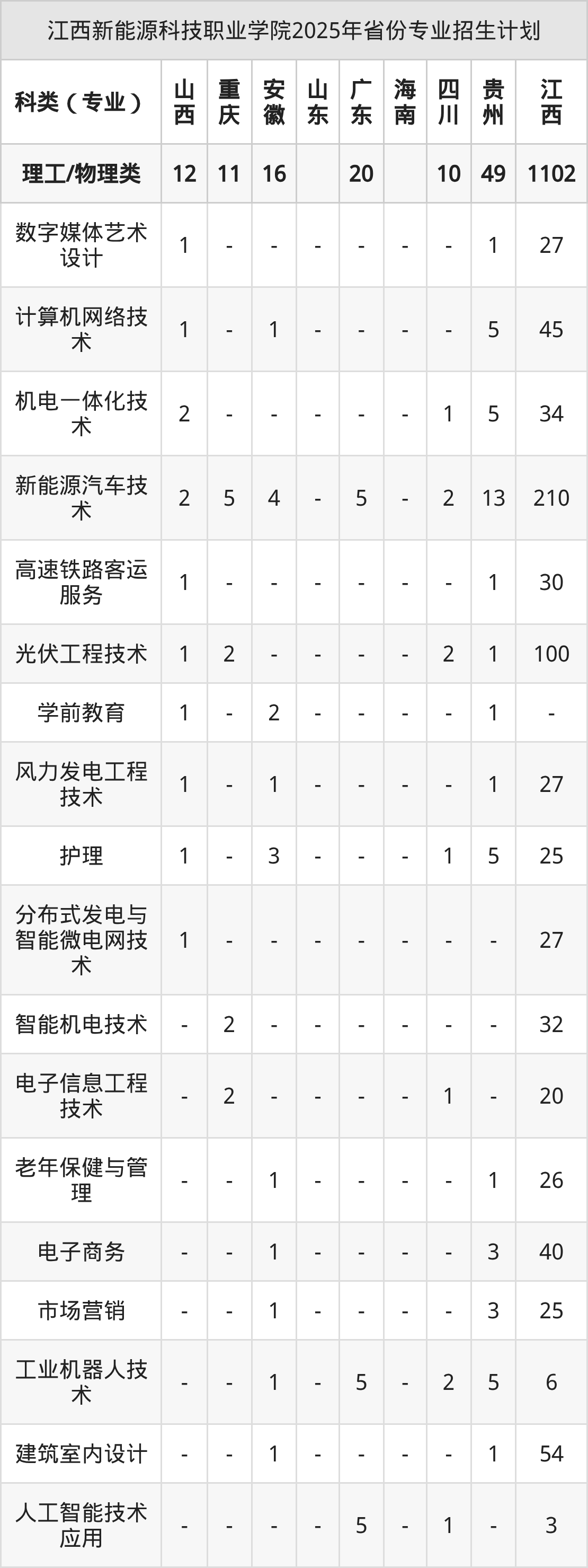 2026年江西新能源科技职业学院专科招生计划待公布,下面附上2025年数据,暂供参考: