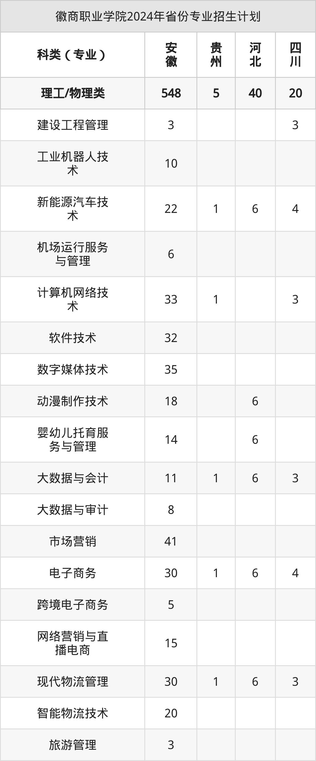 2025年徽商职业学院专科招生计划待公布,下面附上2024年数据,暂供参考: