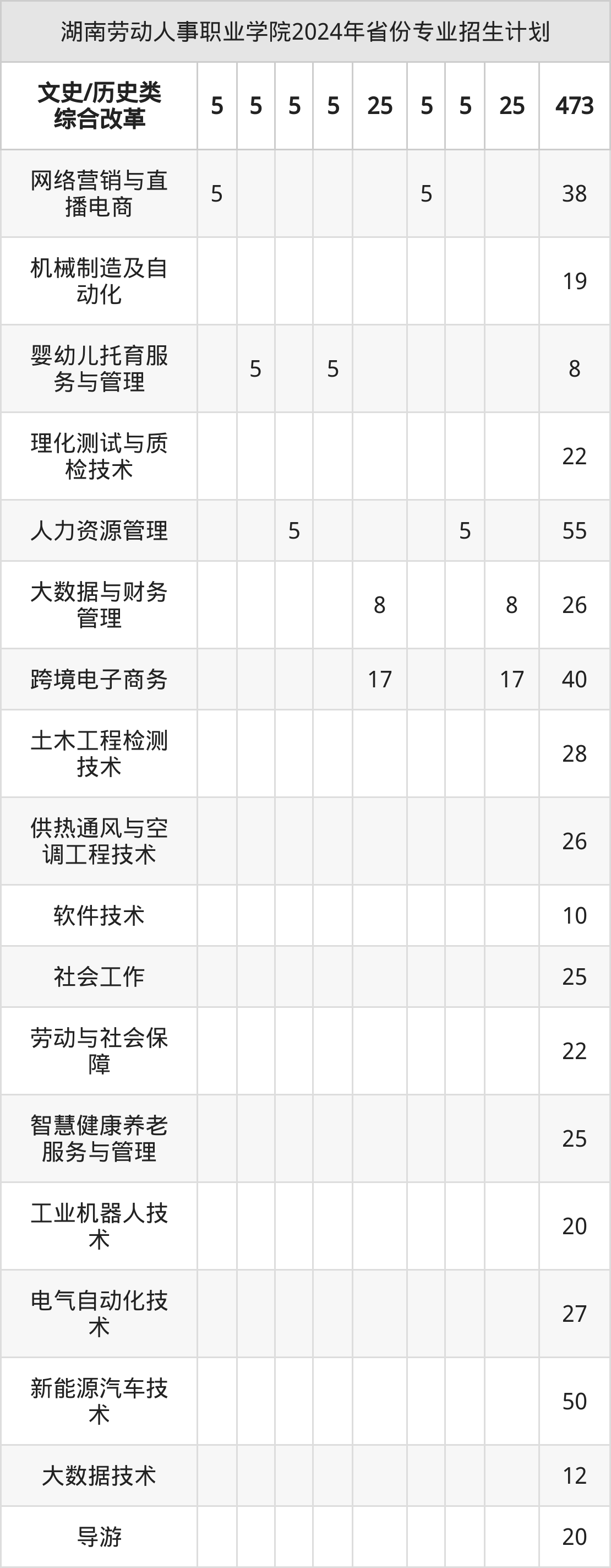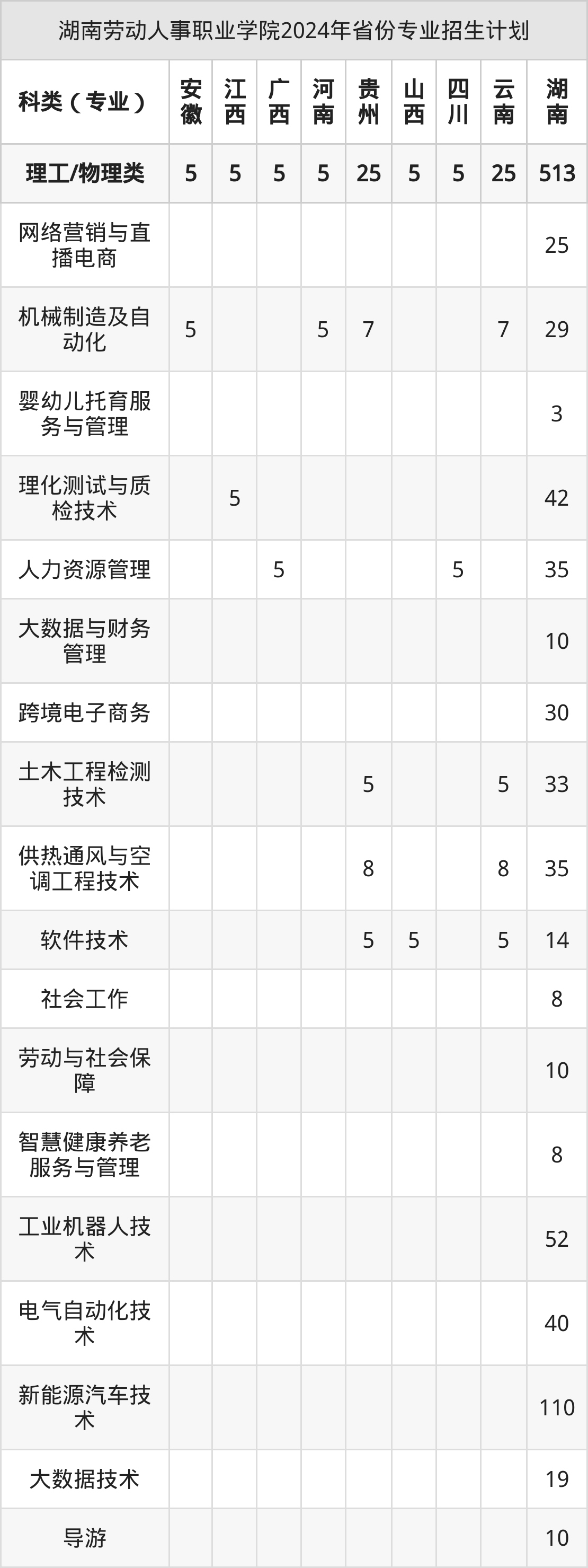 2025年湖南劳动人事职业学院专科招生计划待公布,下面附上2024年数据,暂供参考: