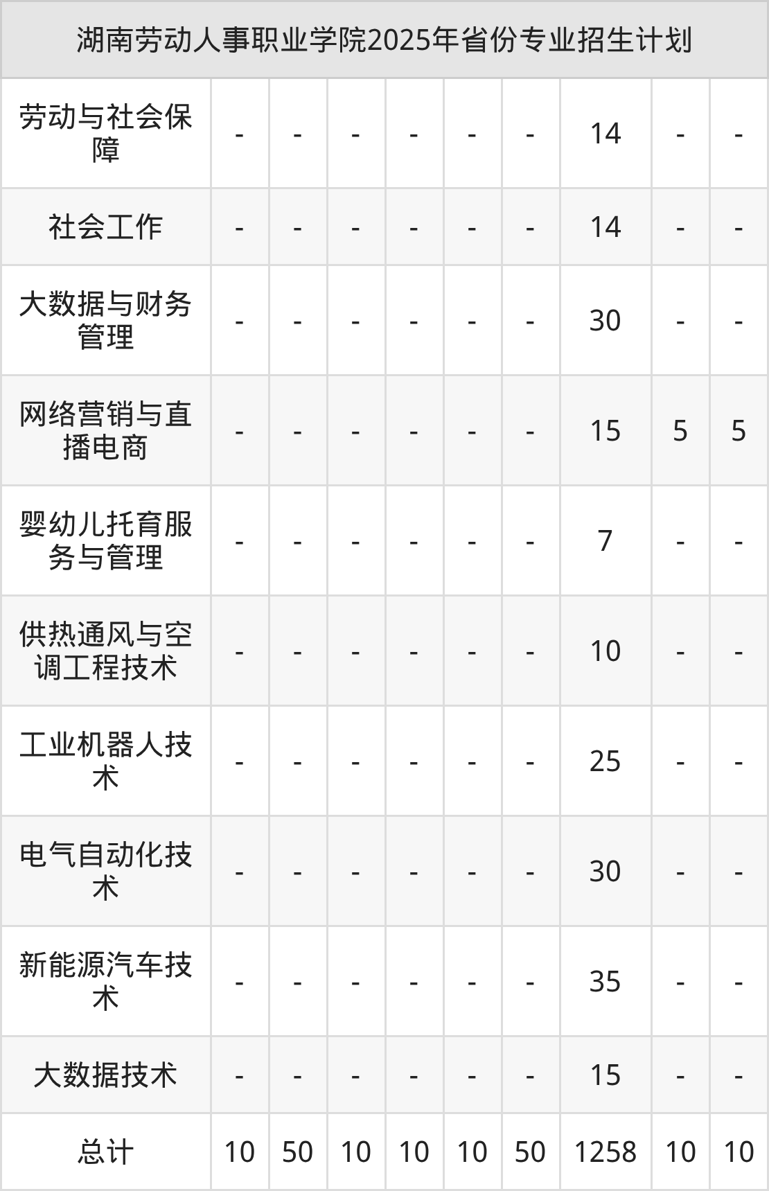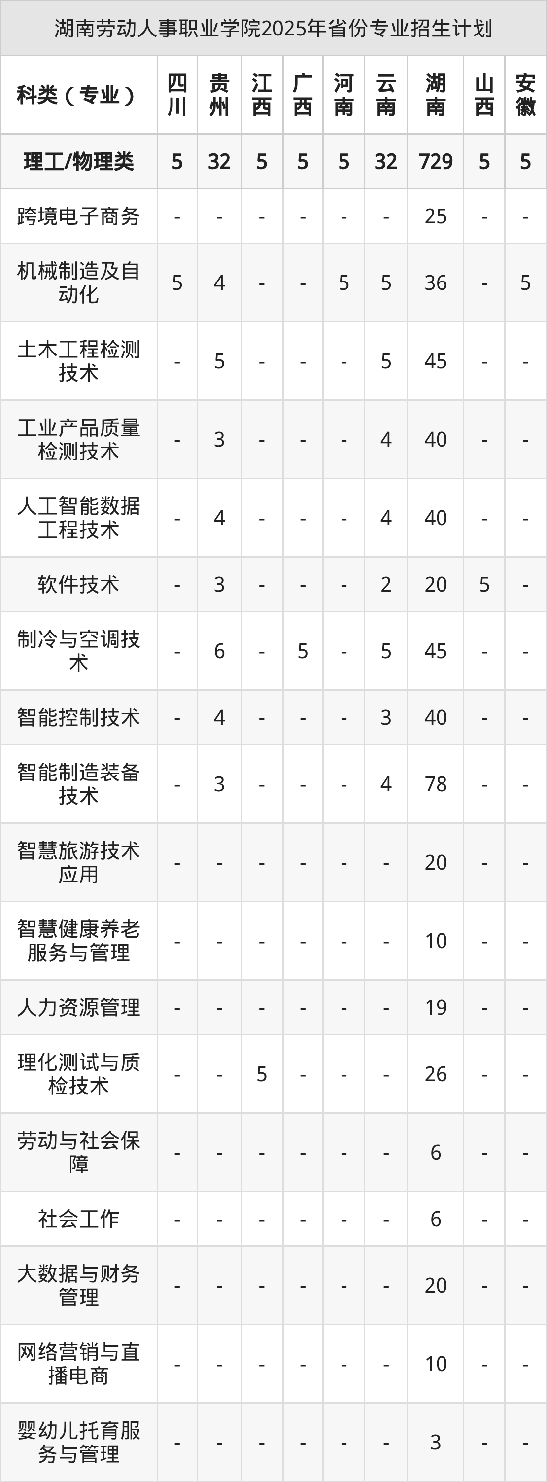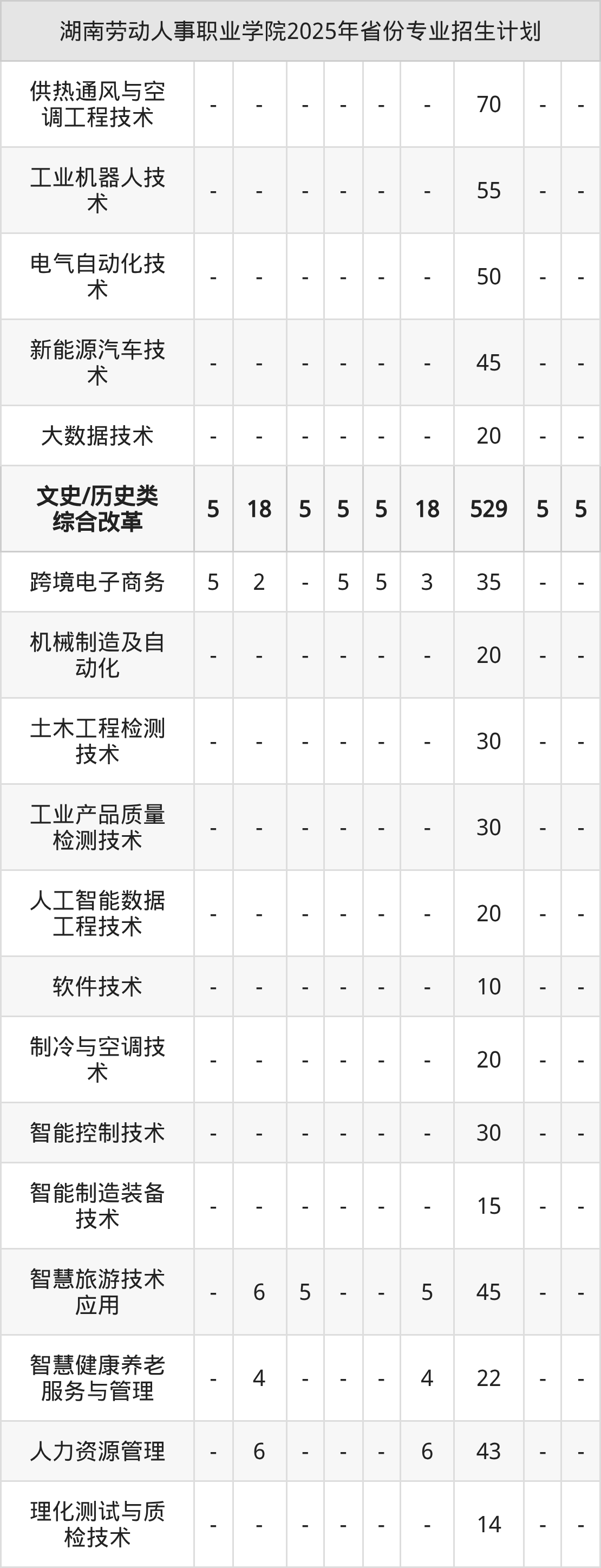 2026年湖南劳动人事职业学院专科招生计划待公布,下面附上2025年数据,暂供参考: