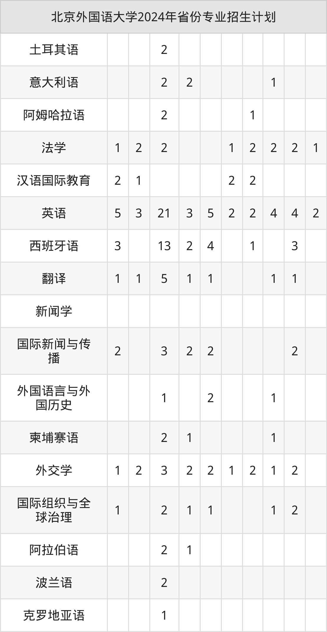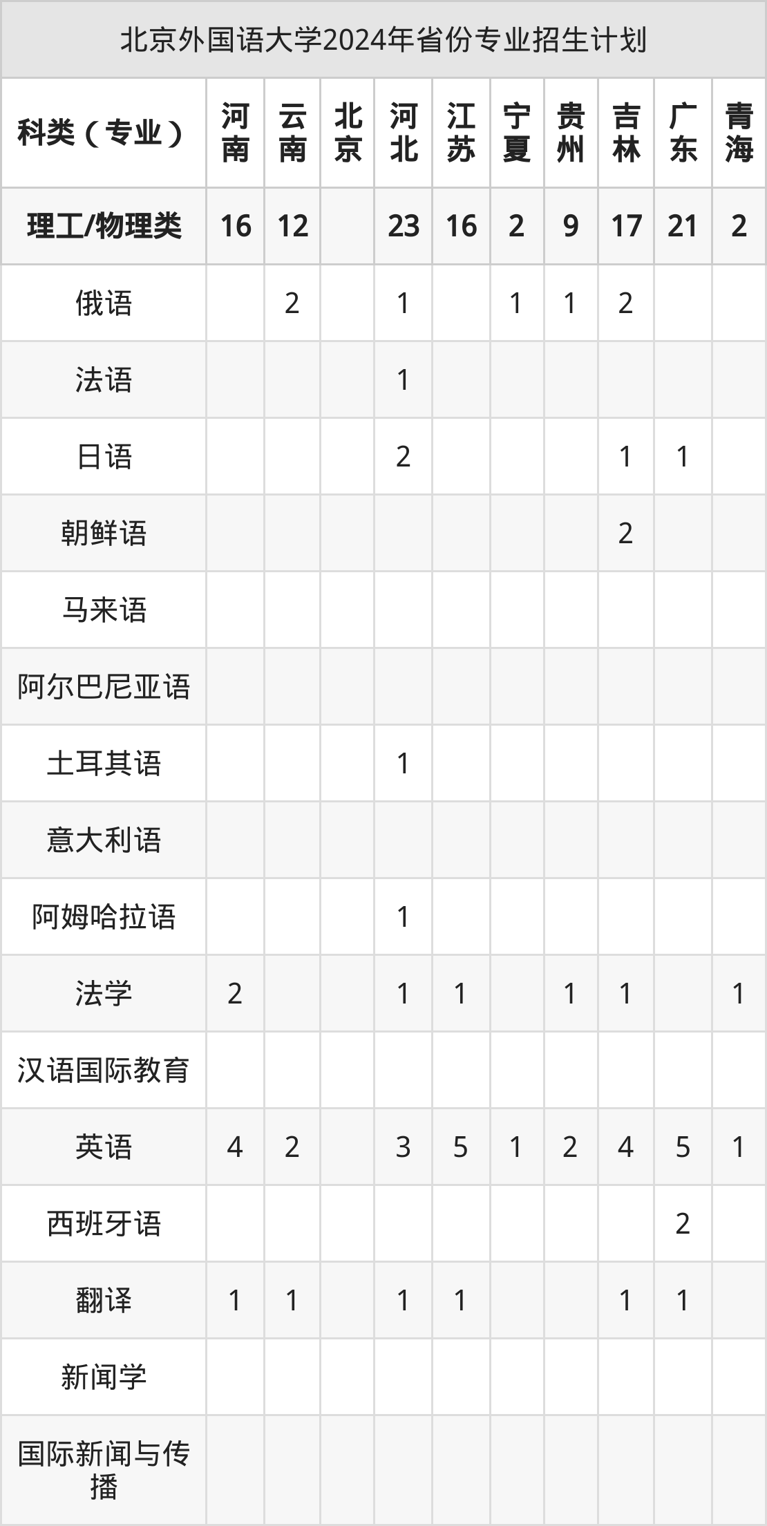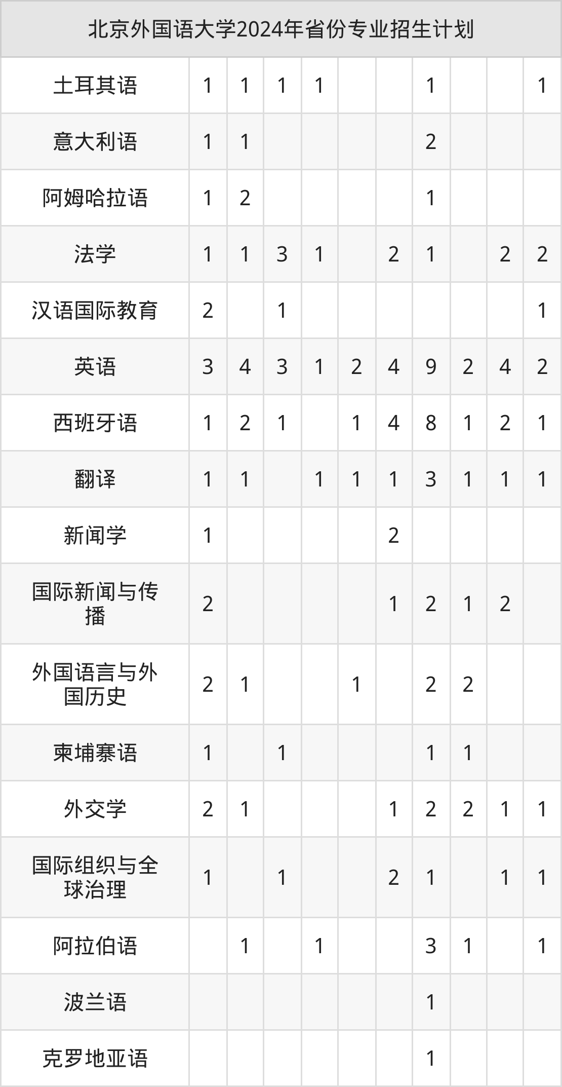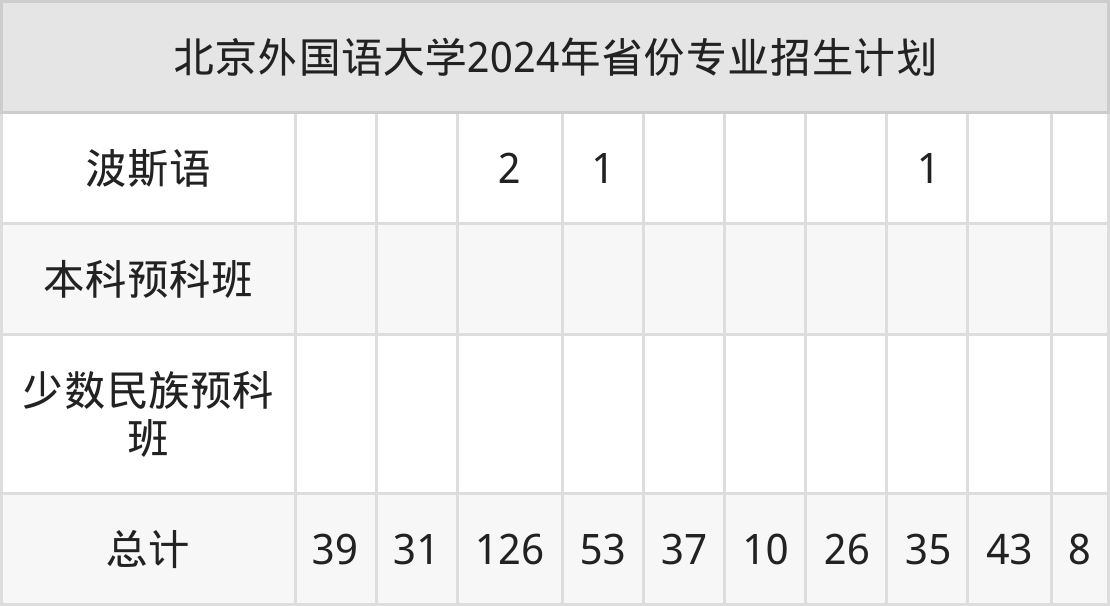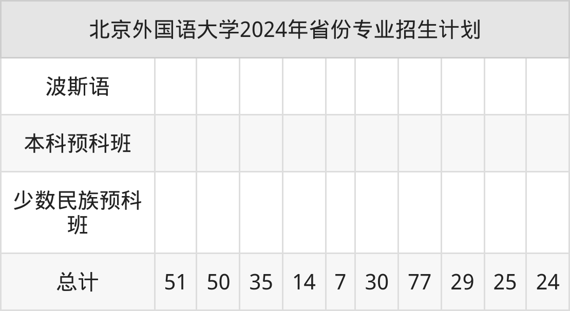 2025年北京外国语大学本科招生计划待公布,下面附上2024年数据,暂供参考: