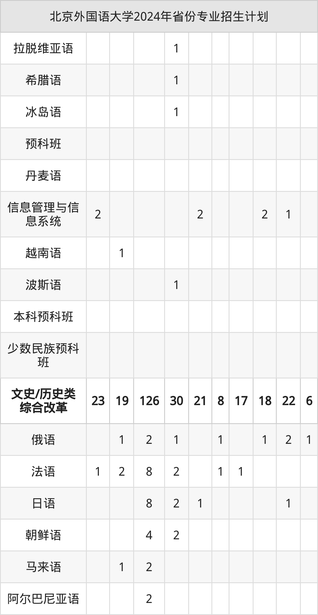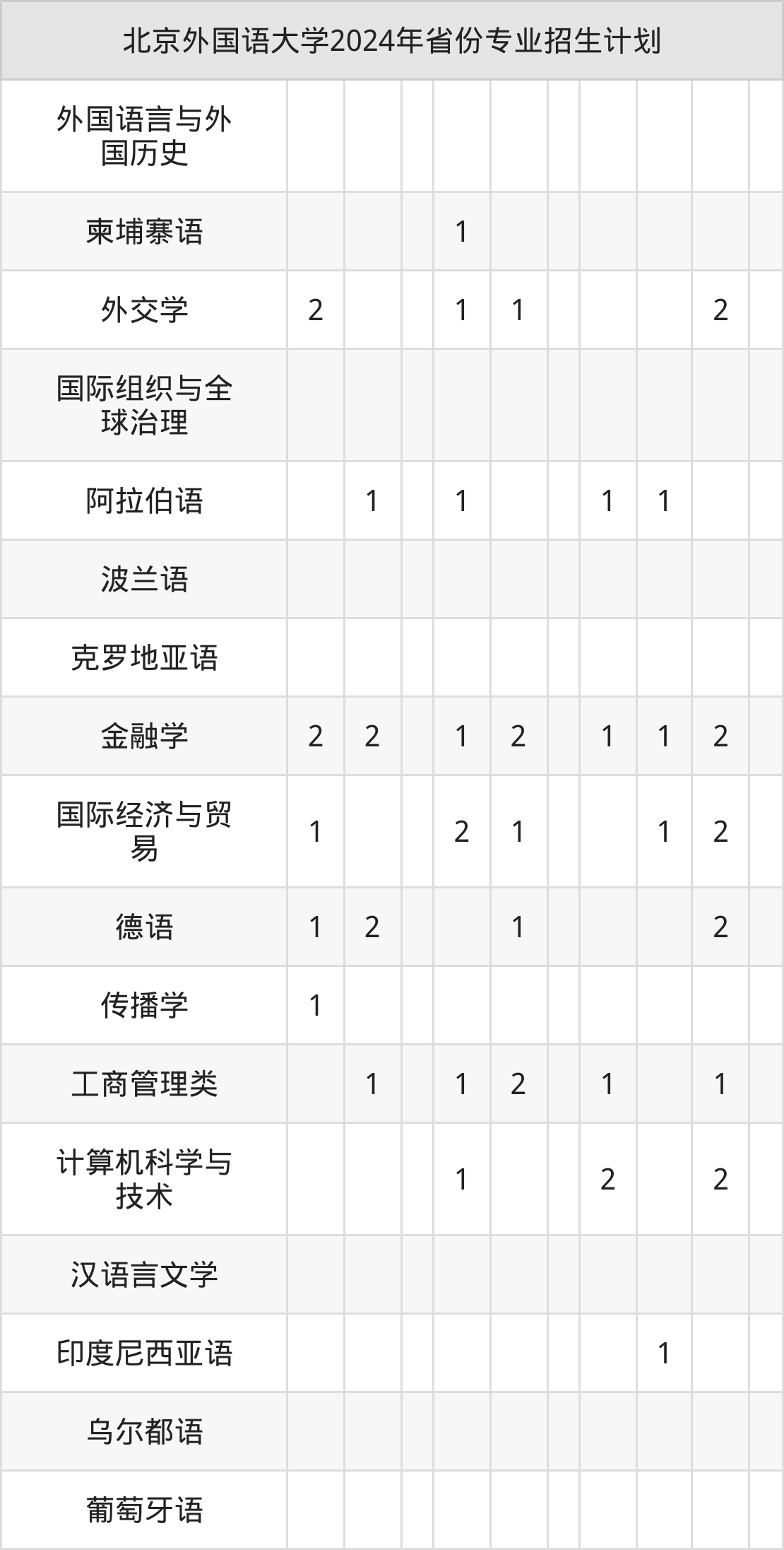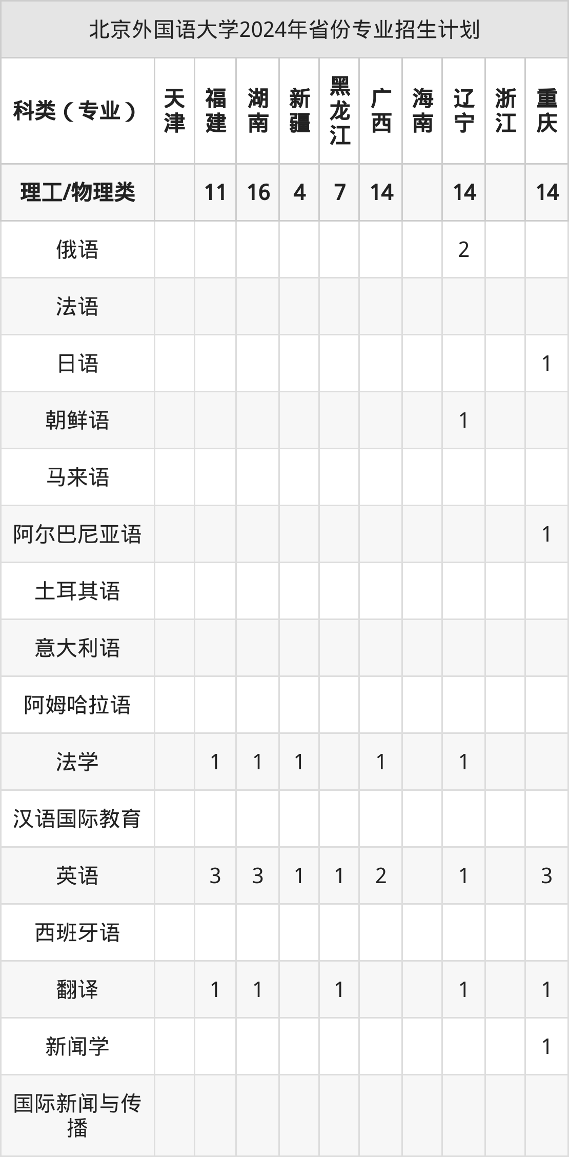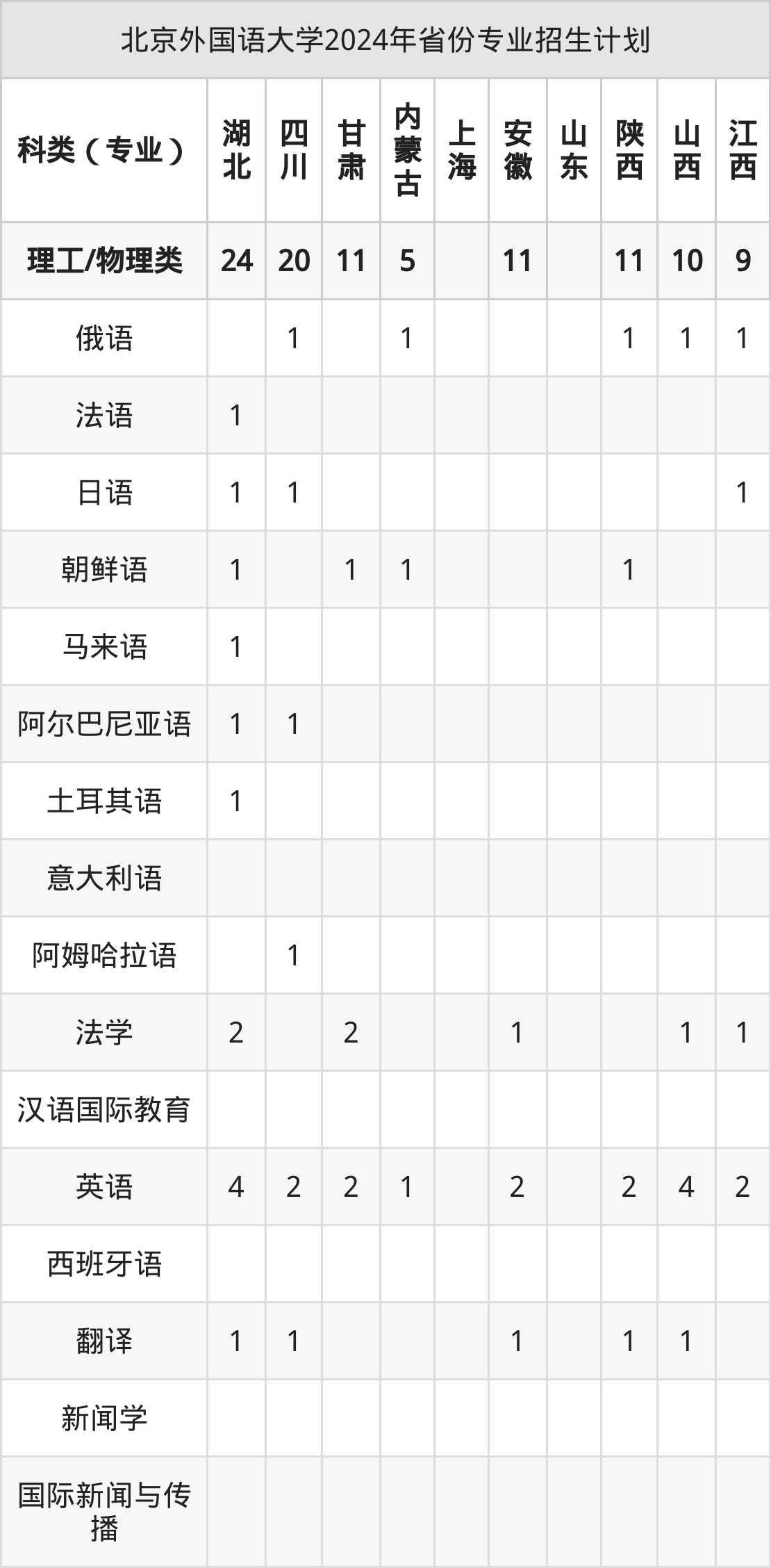 2025年北京外国语大学本科招生计划待公布,下面附上2024年数据,暂供参考: