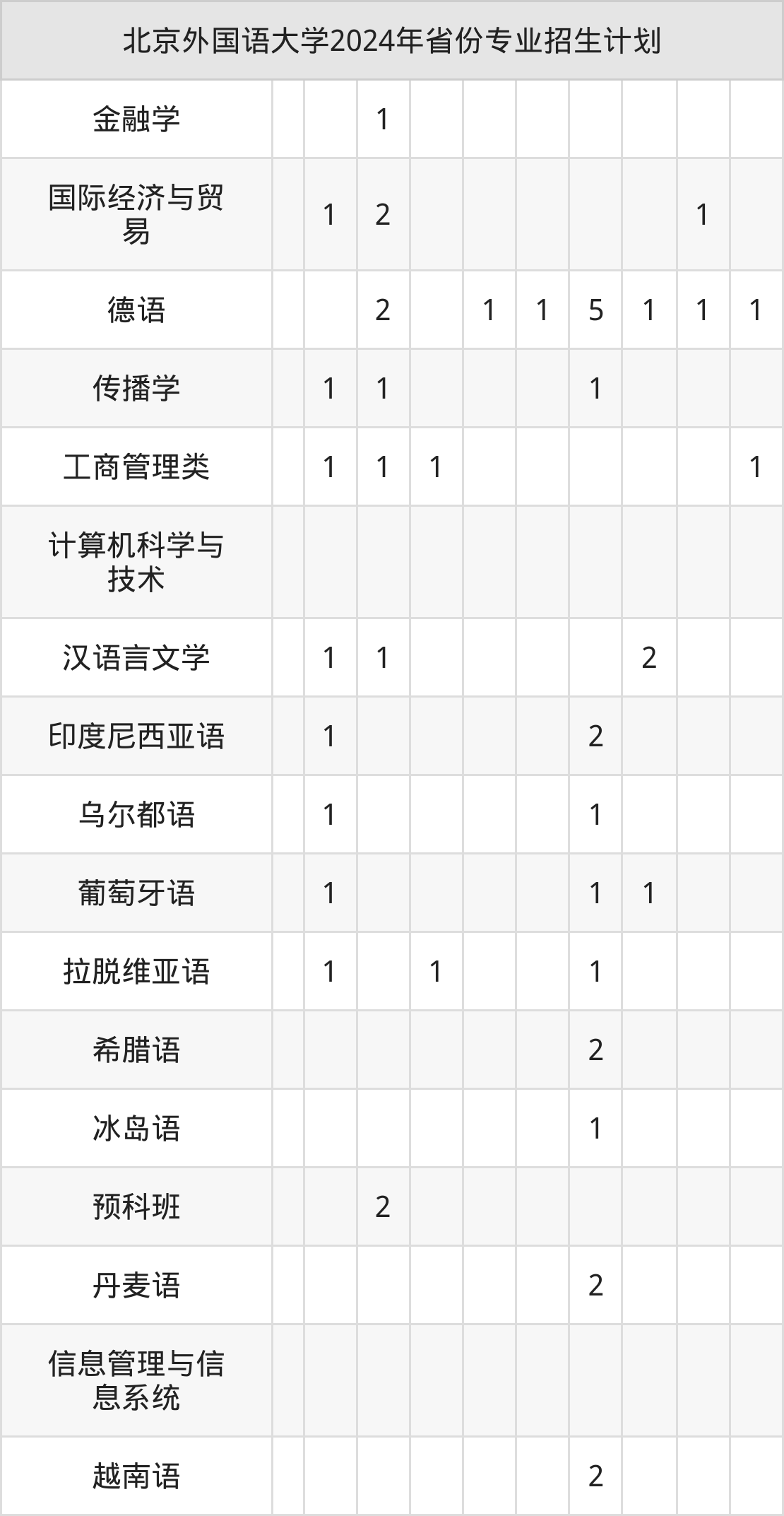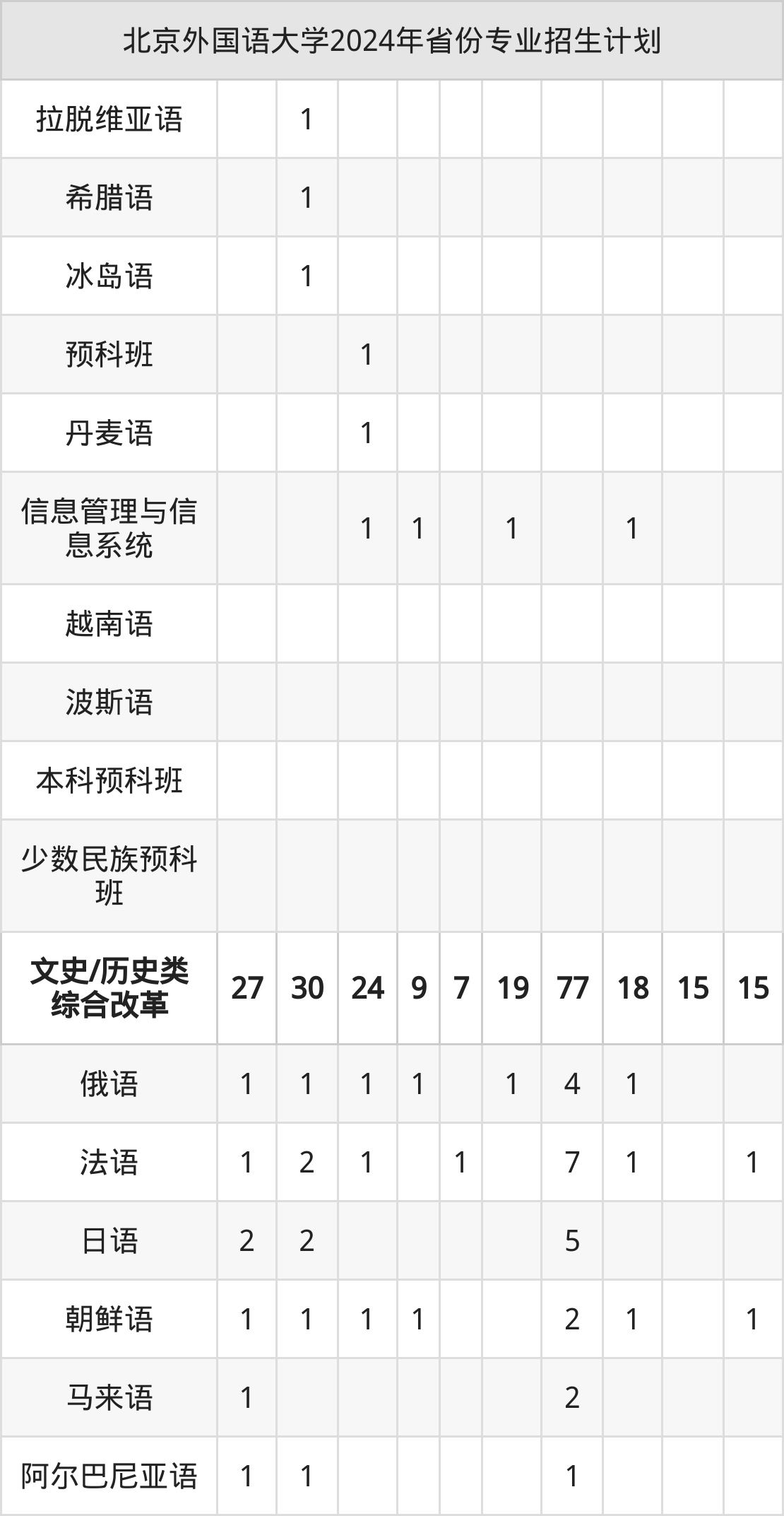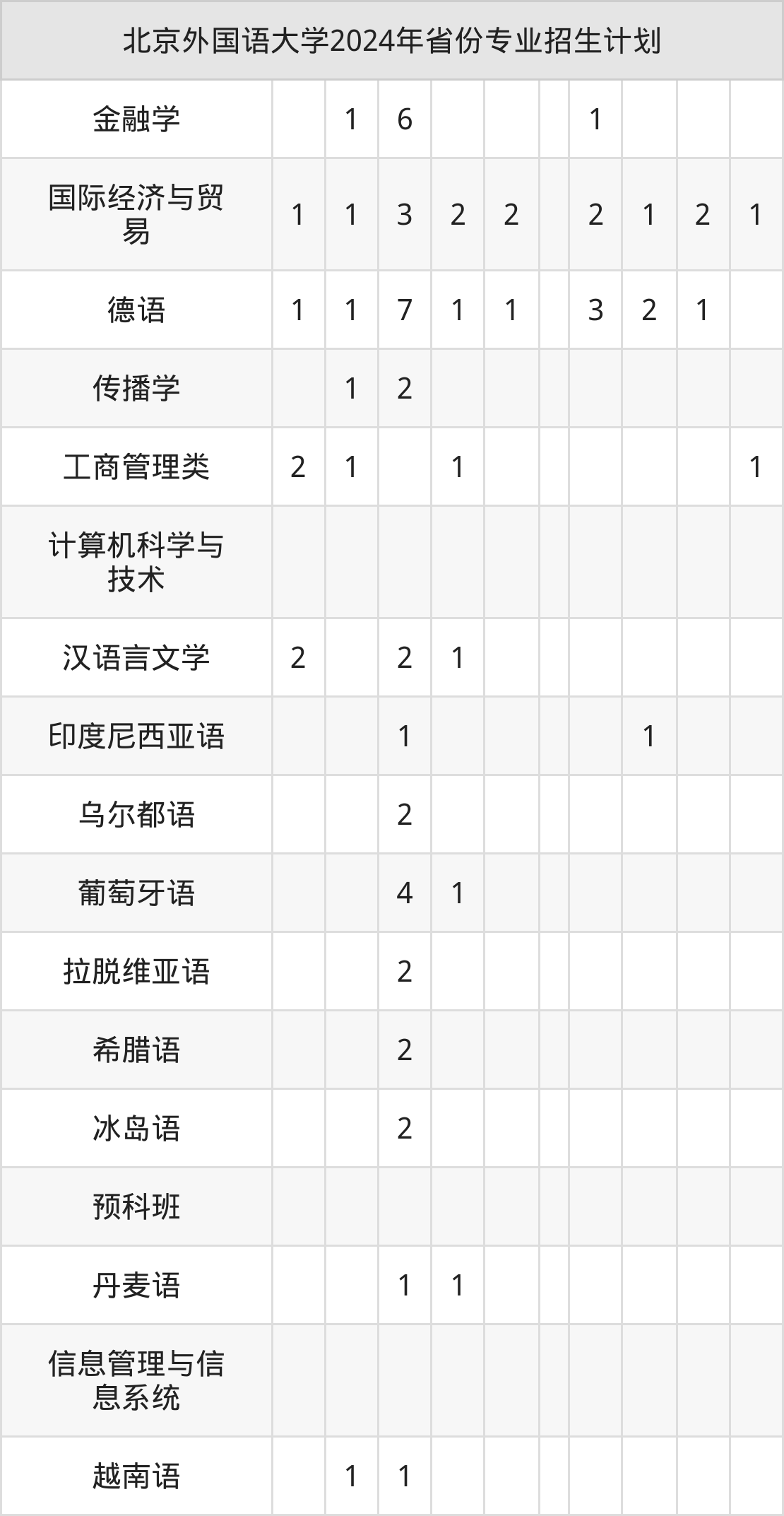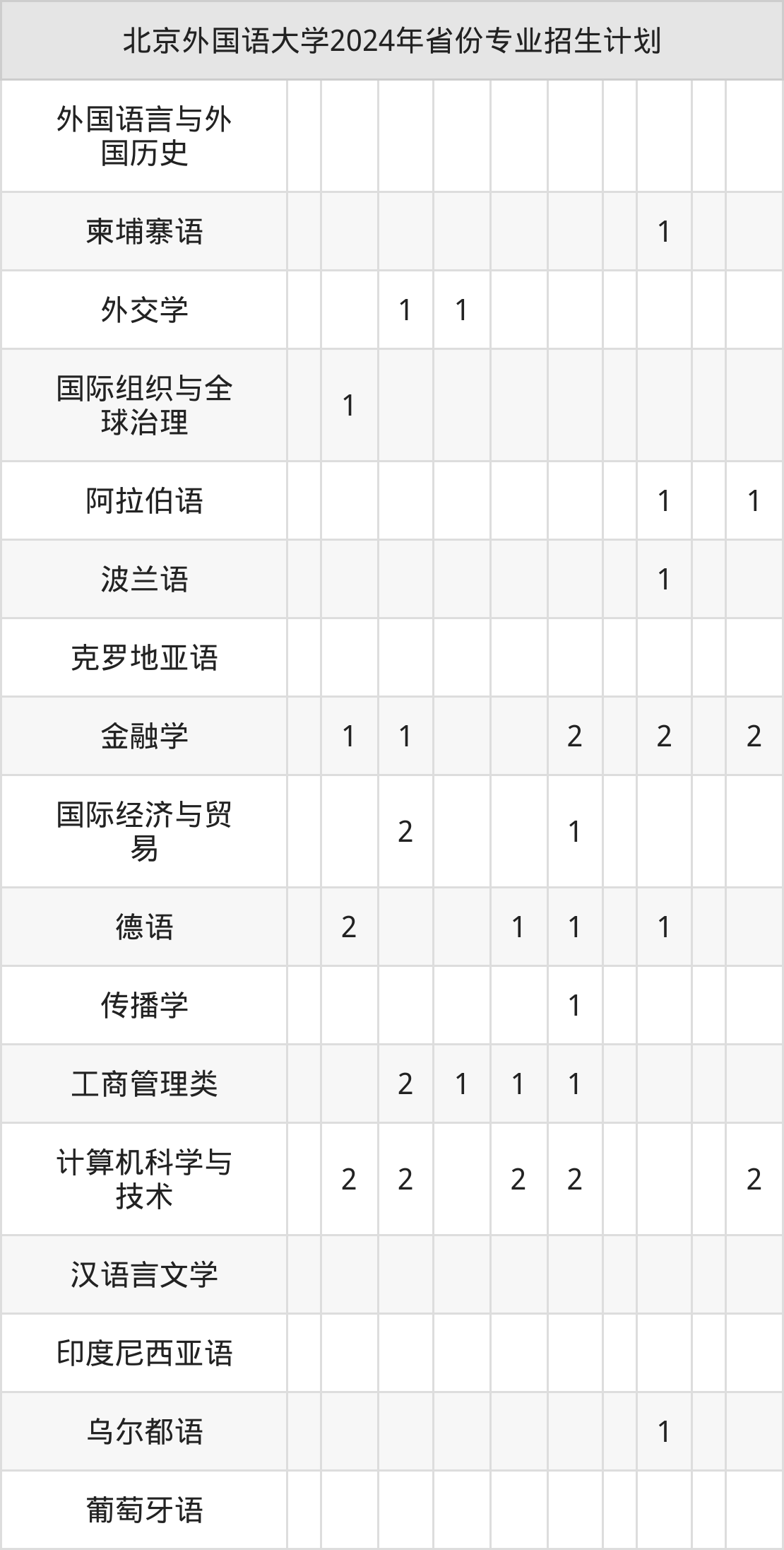 2025年北京外国语大学本科招生计划待公布,下面附上2024年数据,暂供参考: