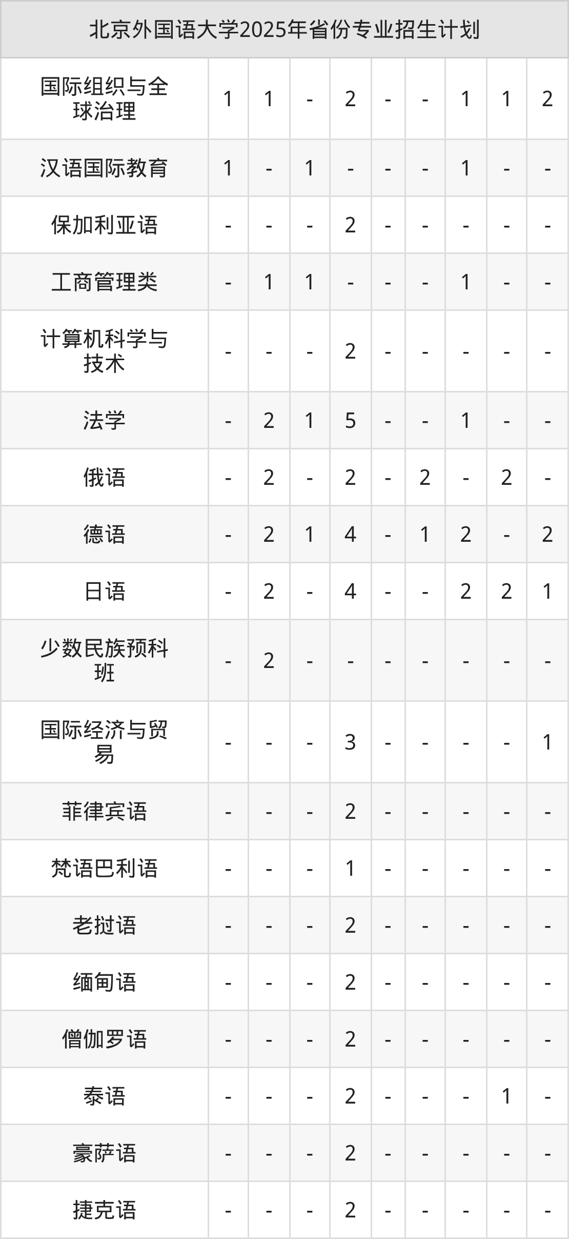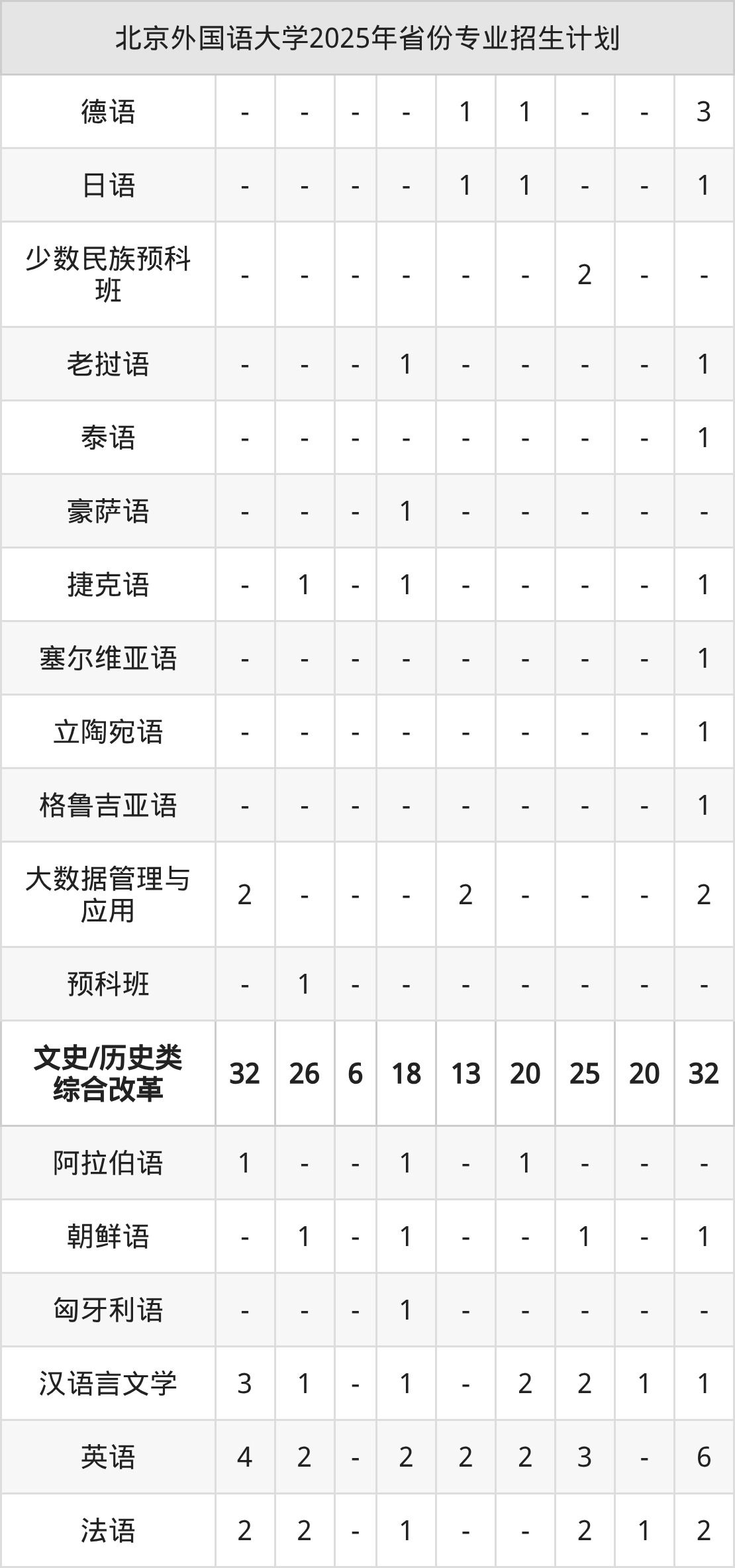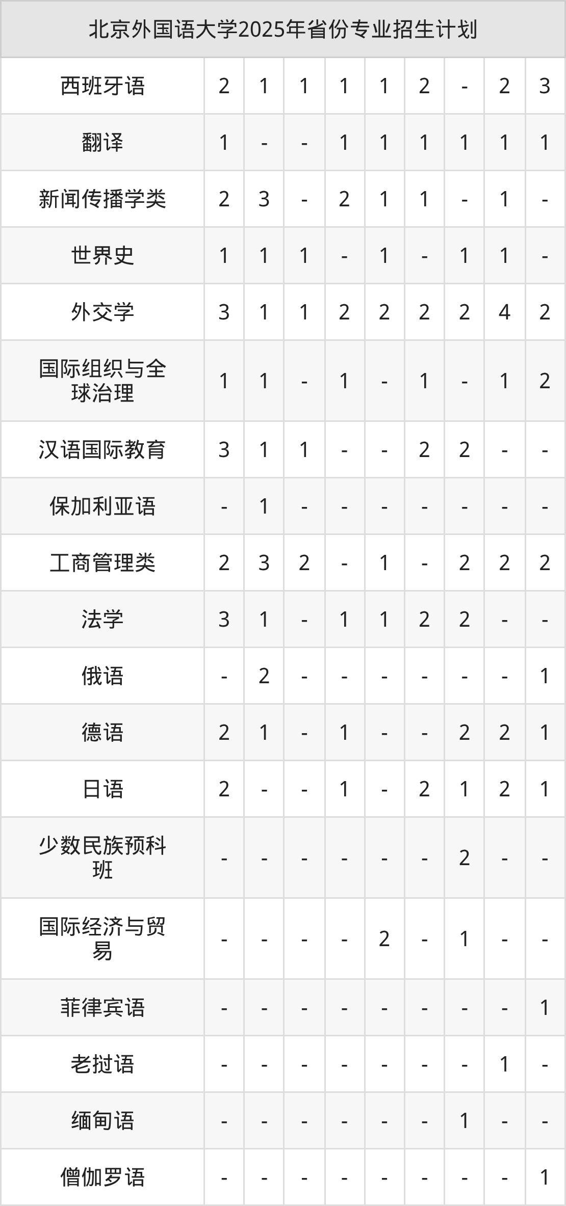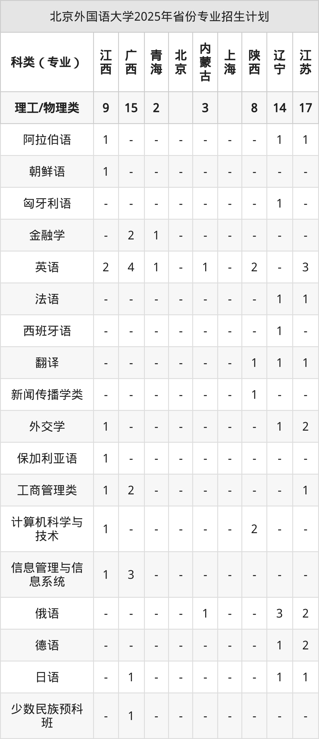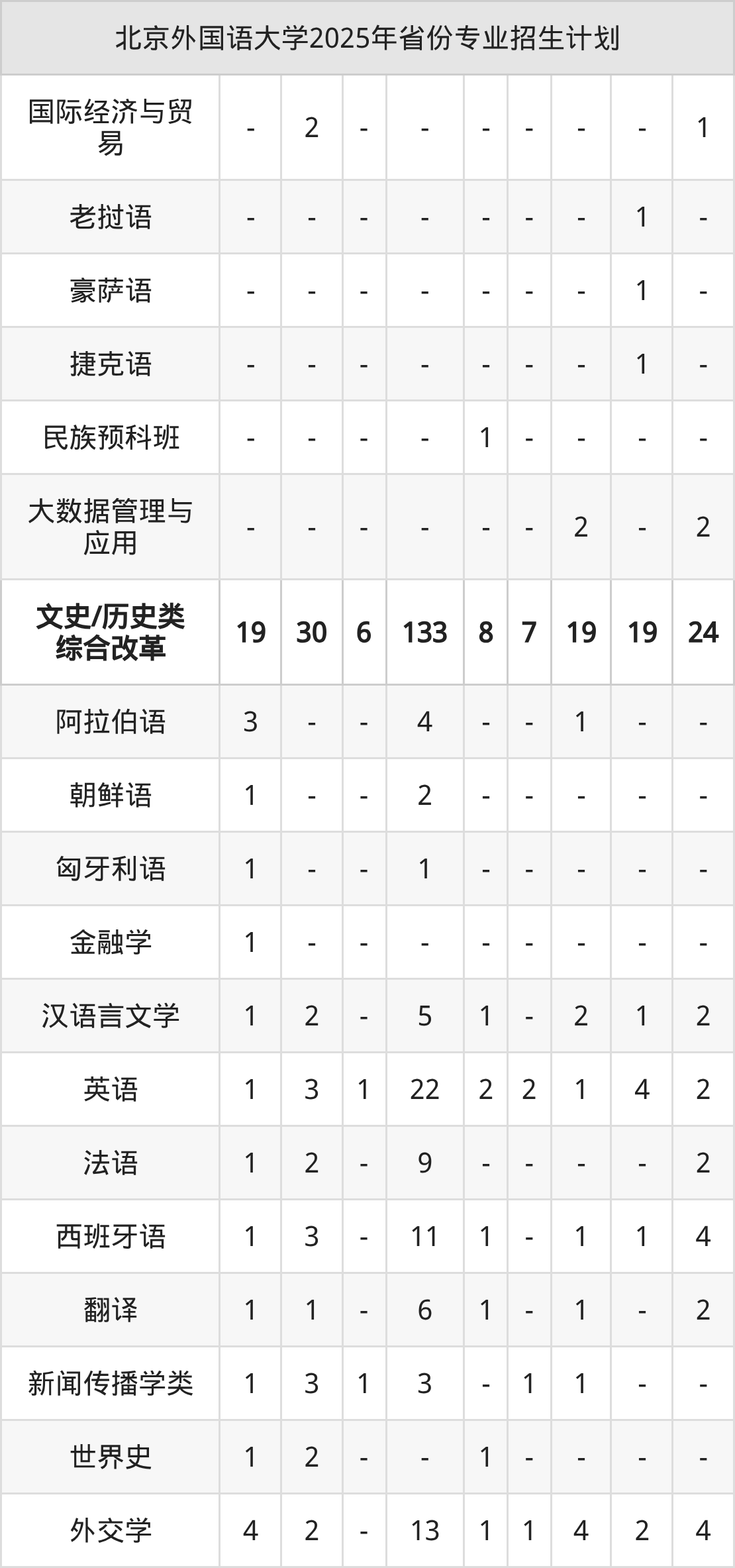 2026年北京外国语大学本科招生计划待公布,下面附上2025年数据,暂供参考: