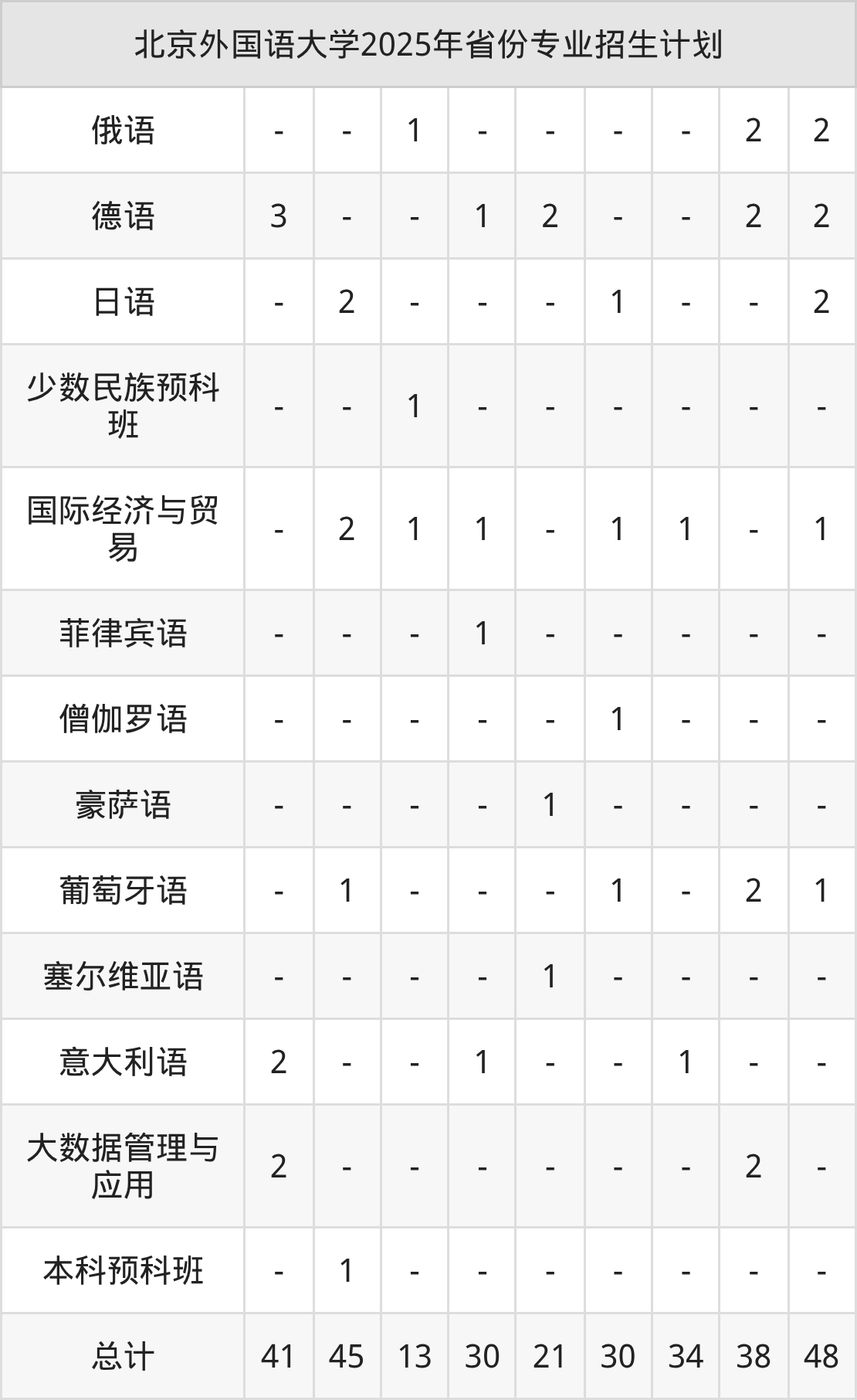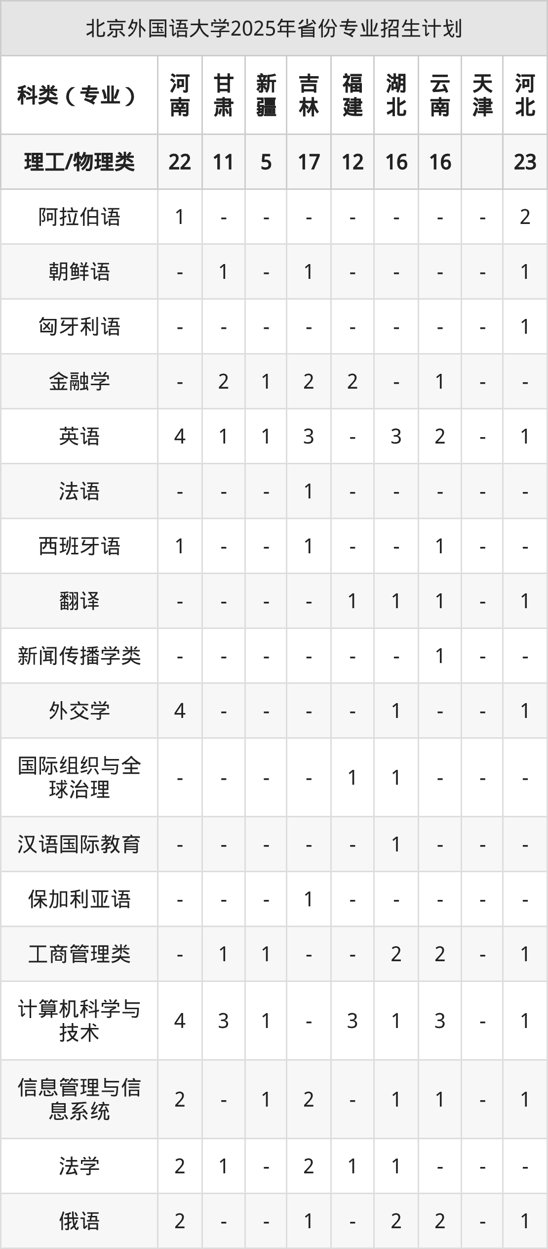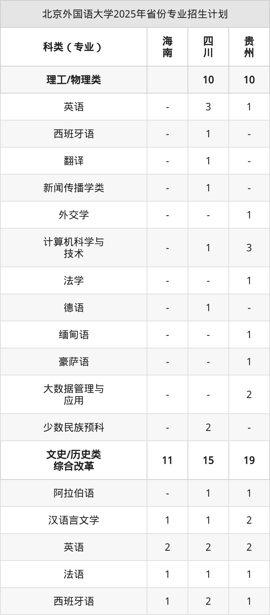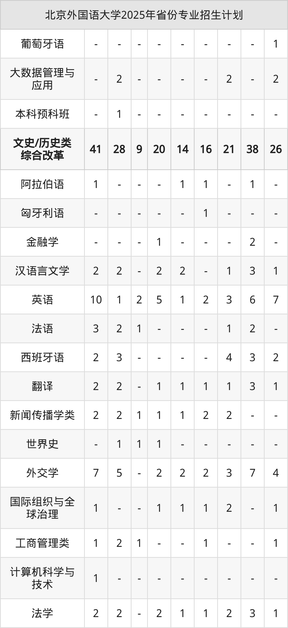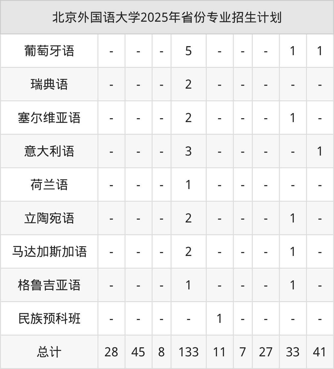 2026年北京外国语大学本科招生计划待公布,下面附上2025年数据,暂供参考: