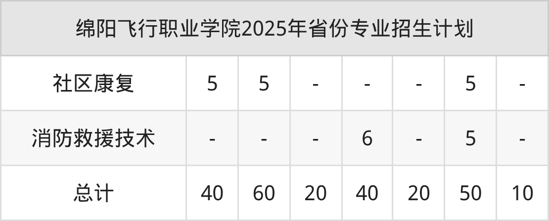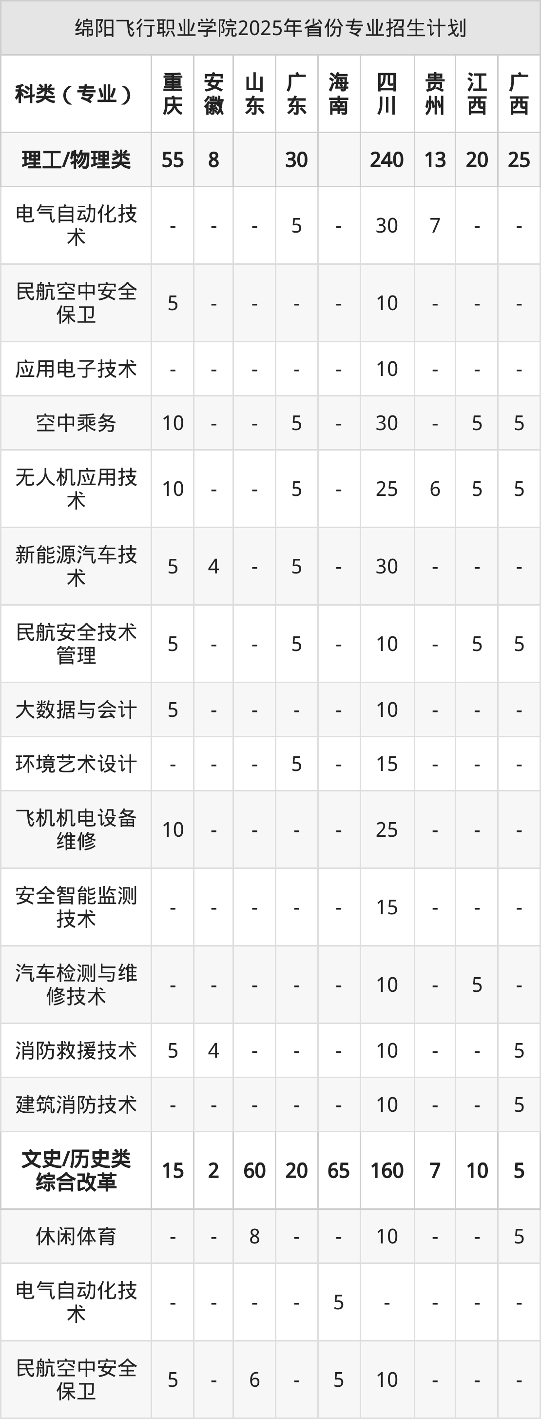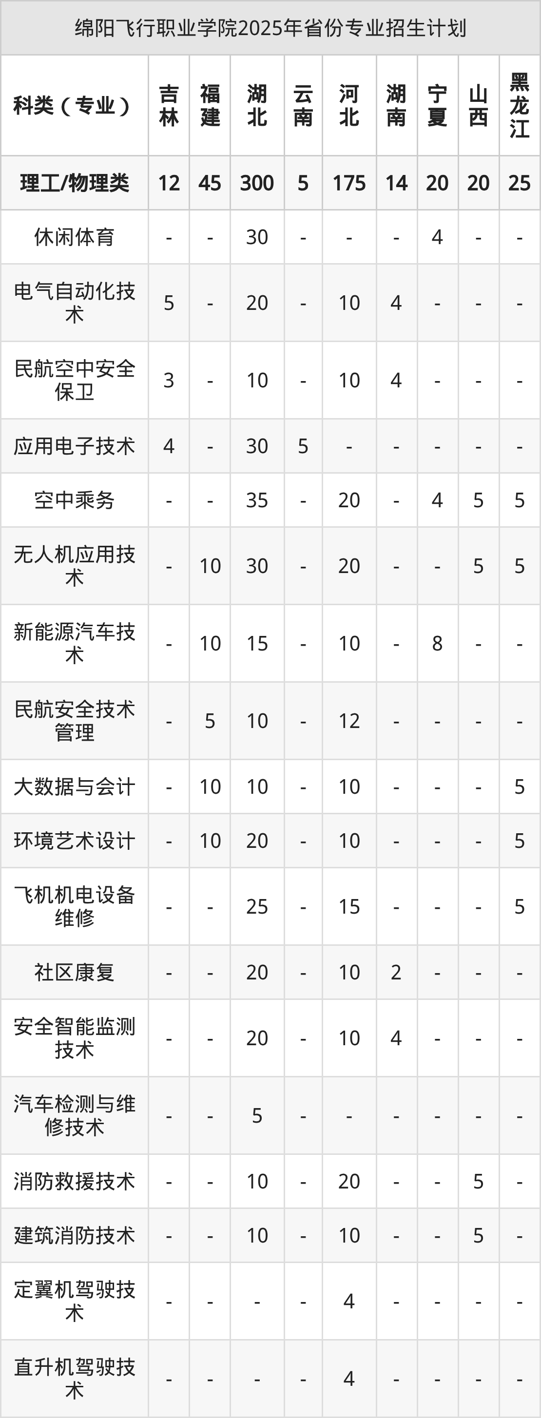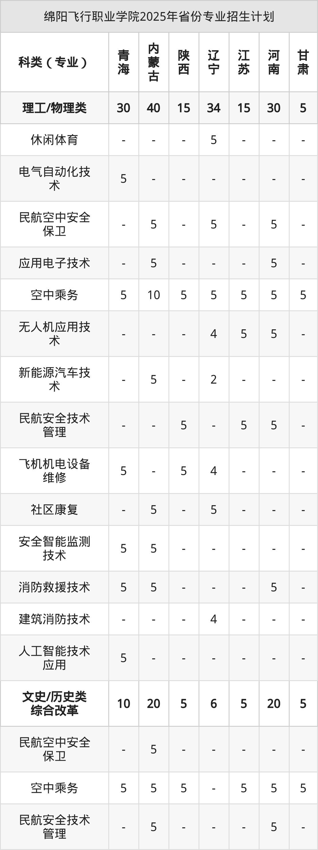 2026年绵阳飞行职业学院专科招生计划待公布,下面附上2025年数据,暂供参考: