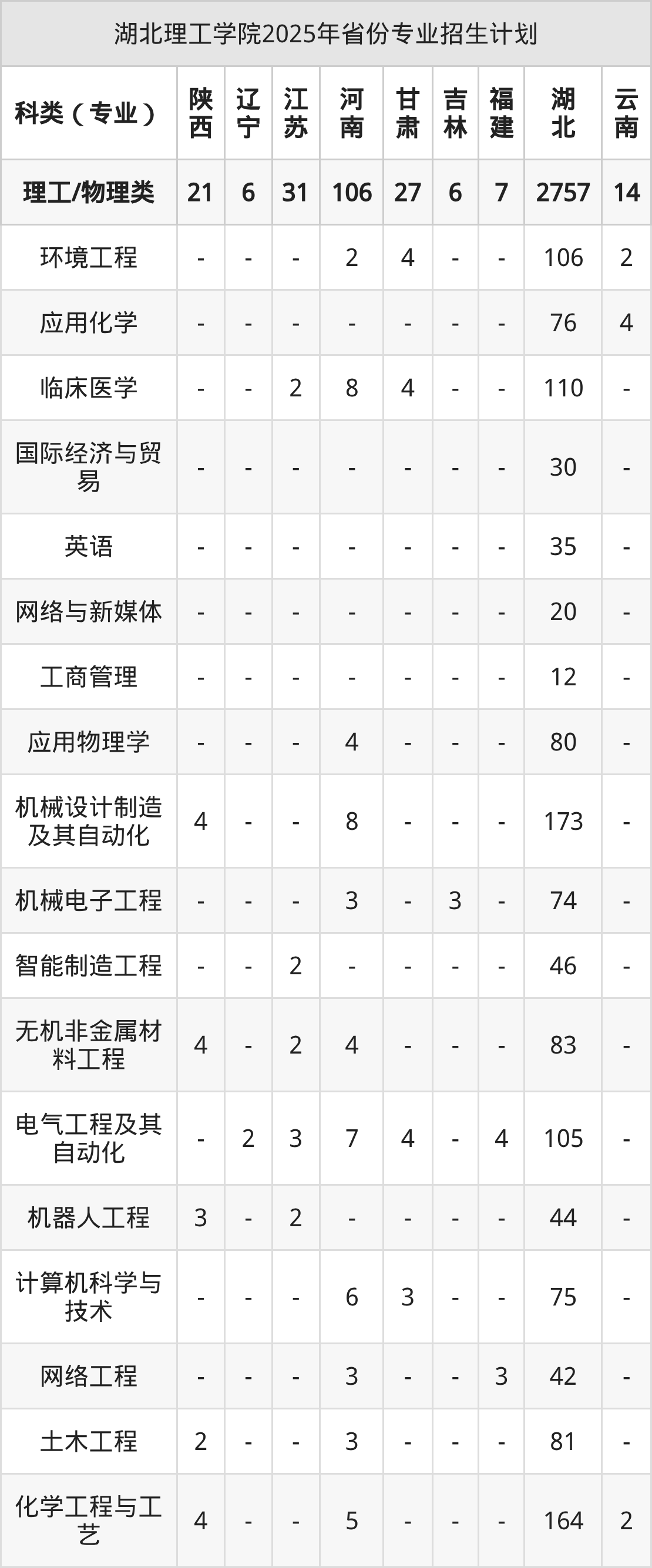 2026年湖北理工学院本科招生计划待公布,下面附上2025年数据,暂供参考: