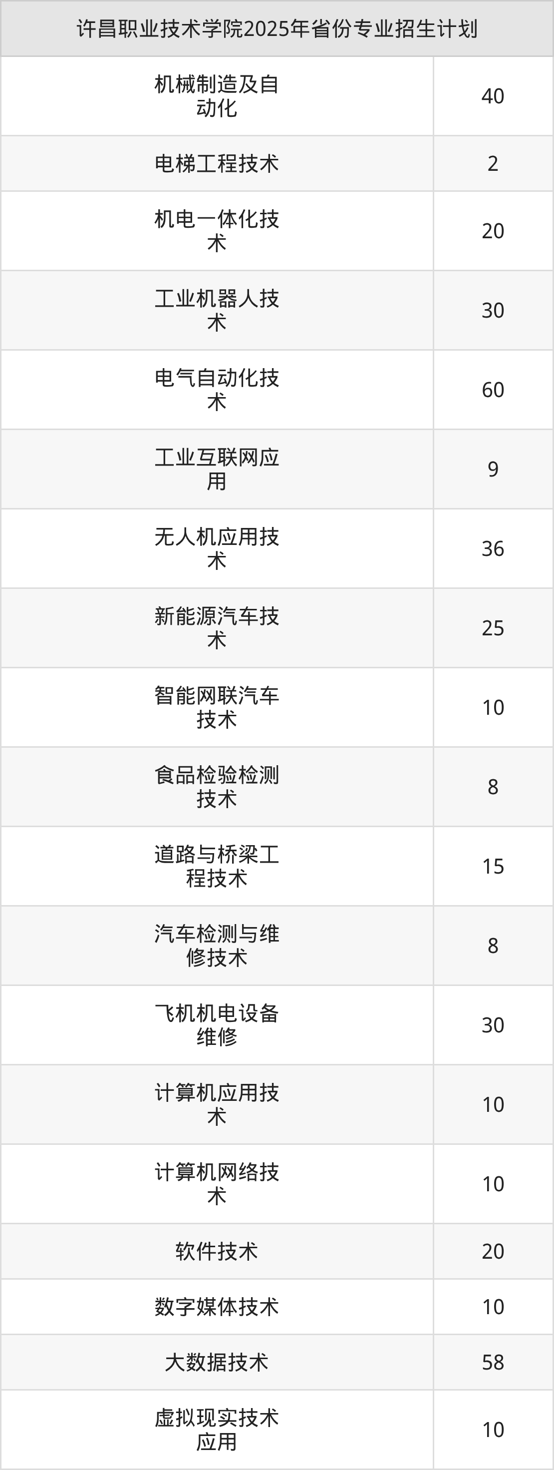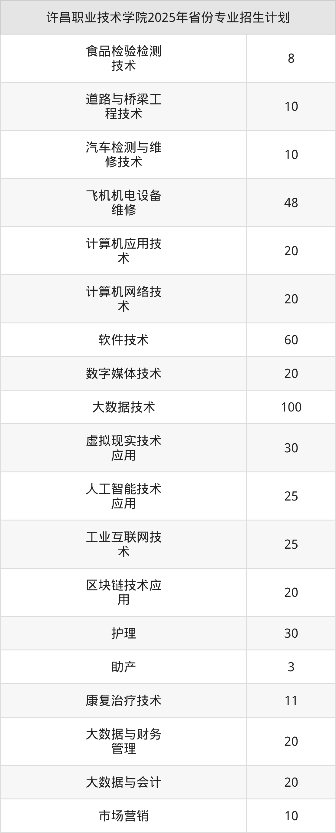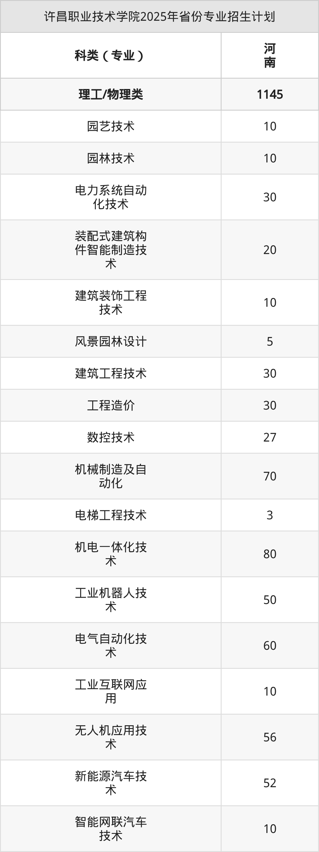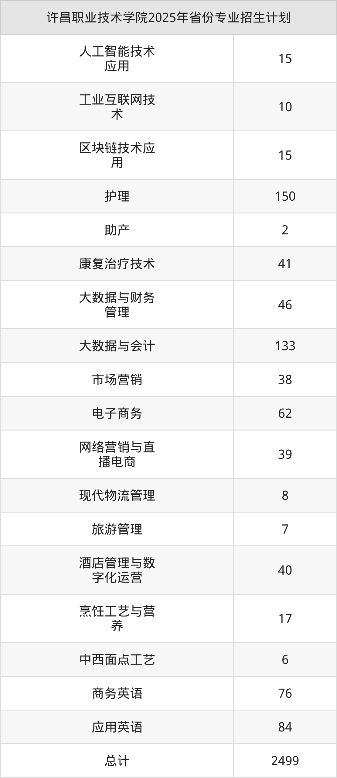 2026年许昌职业技术学院专科招生计划待公布,下面附上2025年数据,暂供参考: