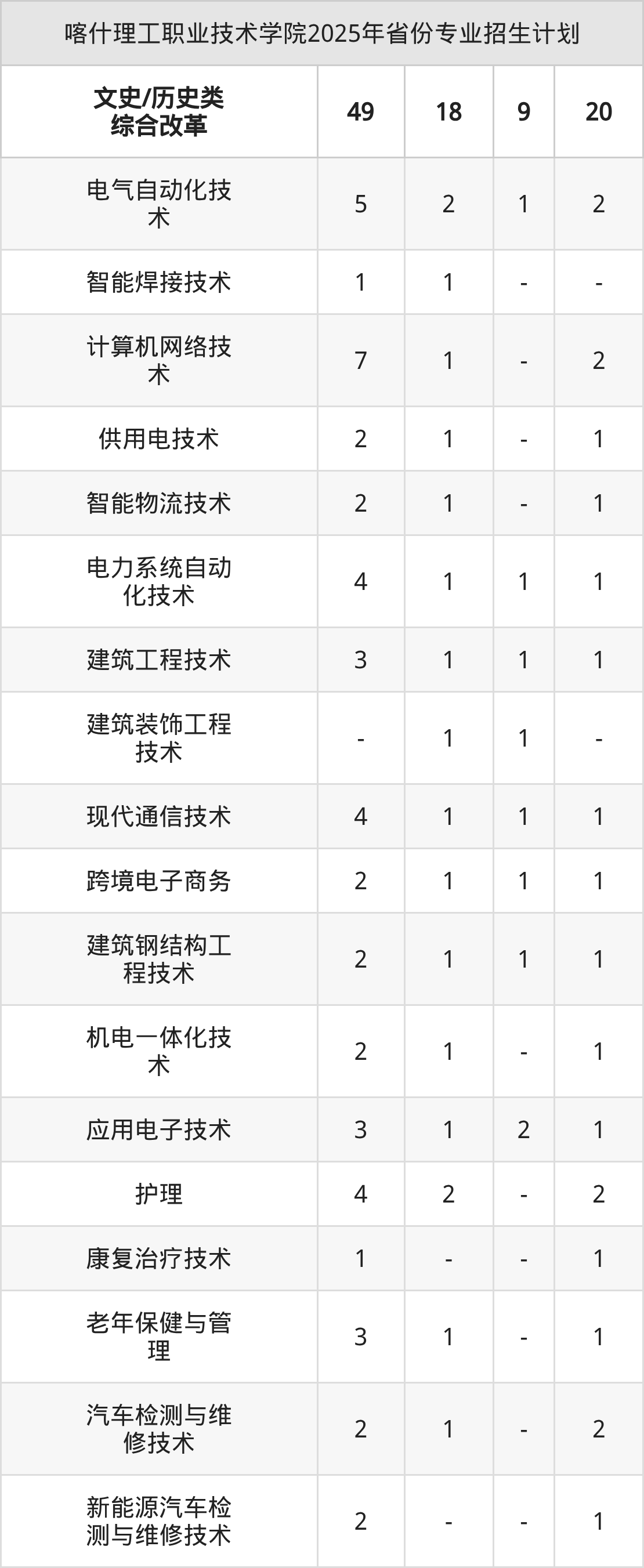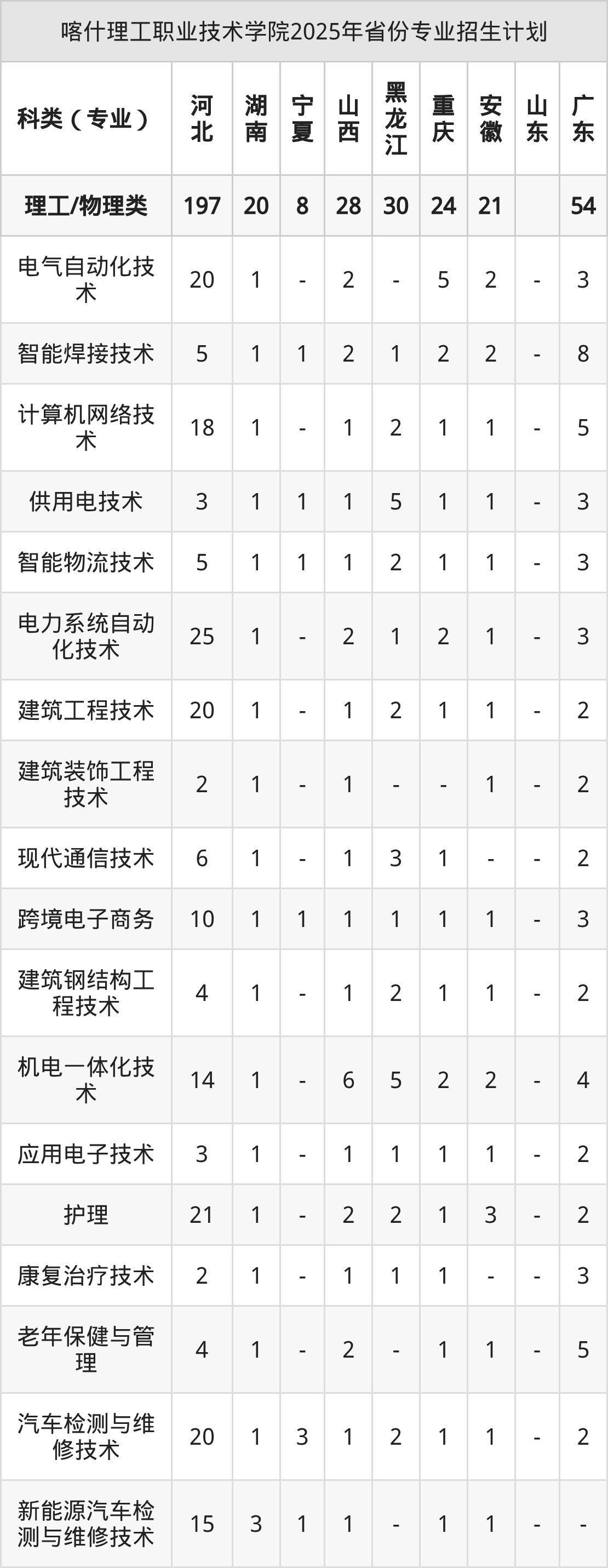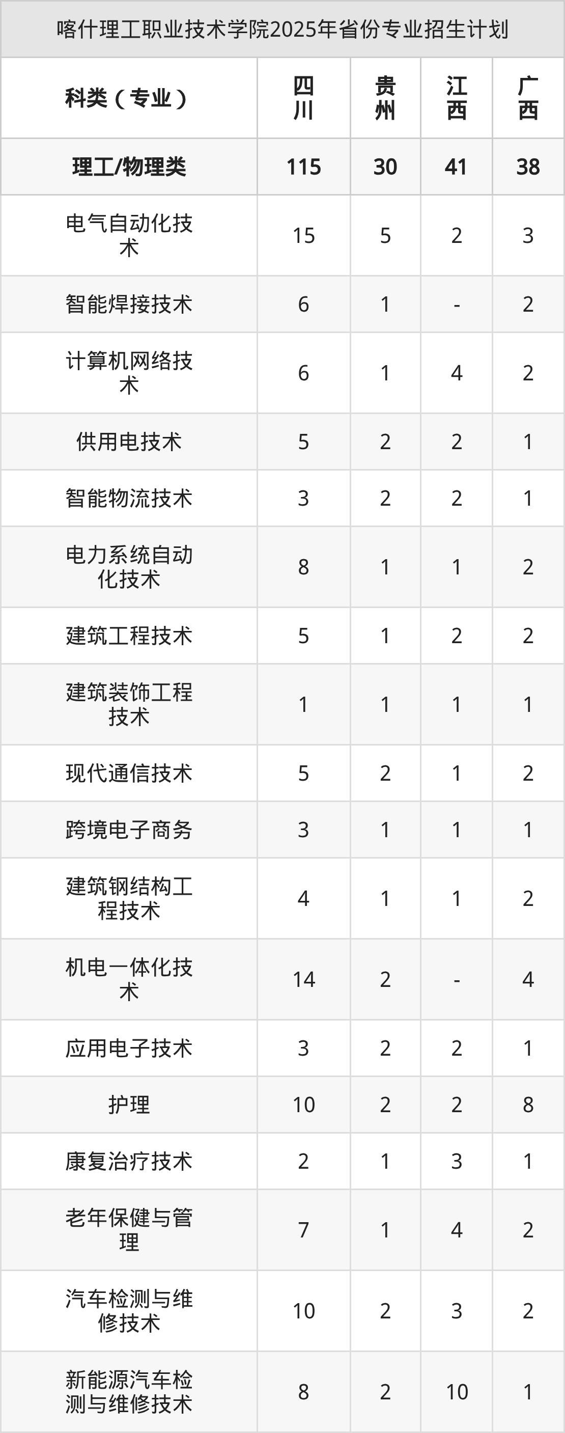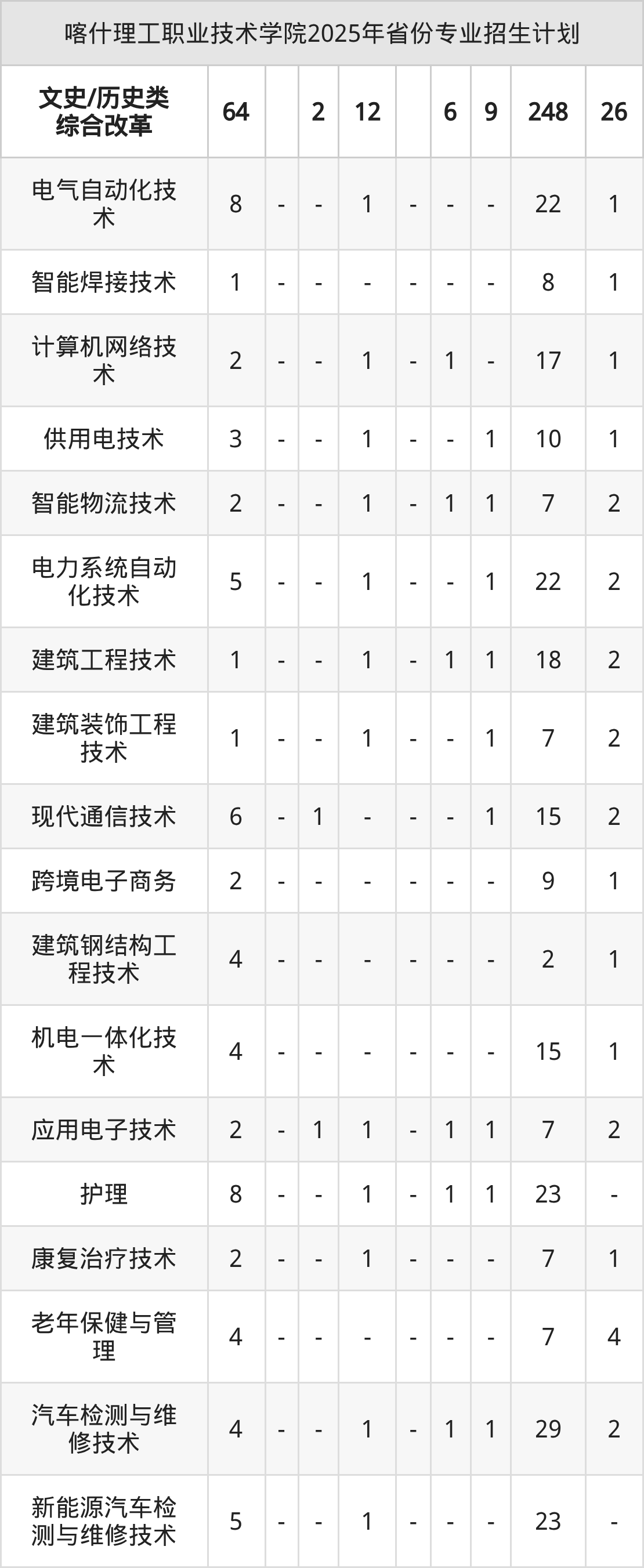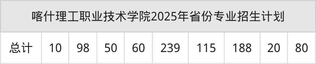 2026年喀什理工职业技术学院专科招生计划待公布,下面附上2025年数据,暂供参考: