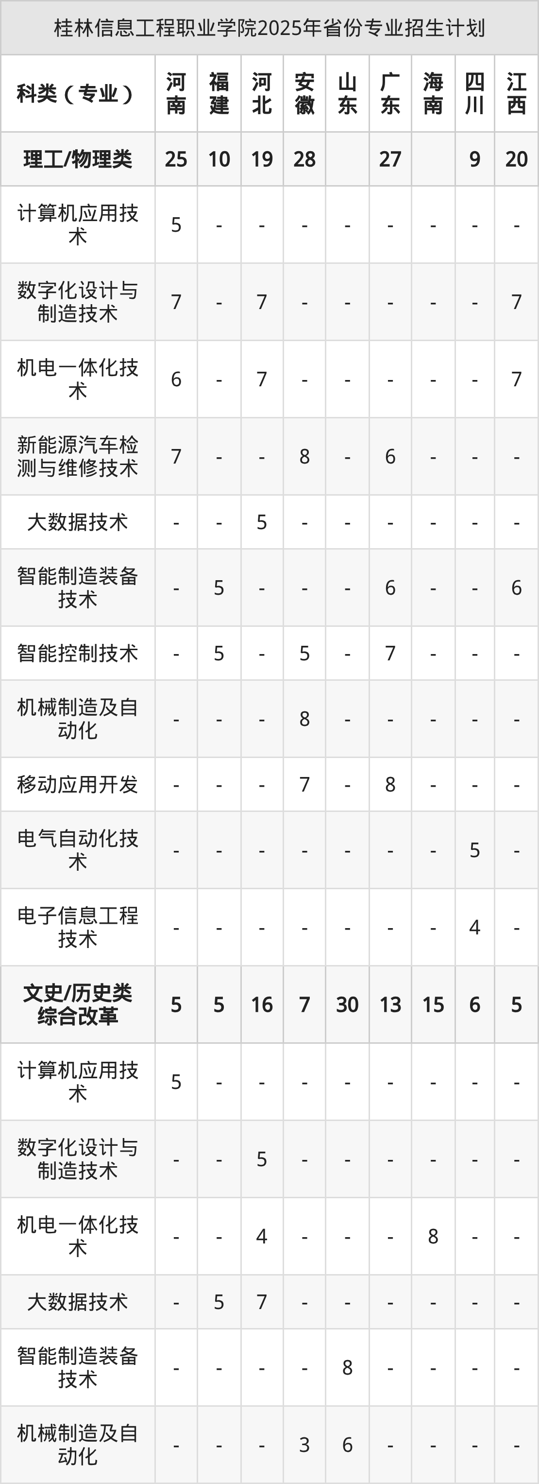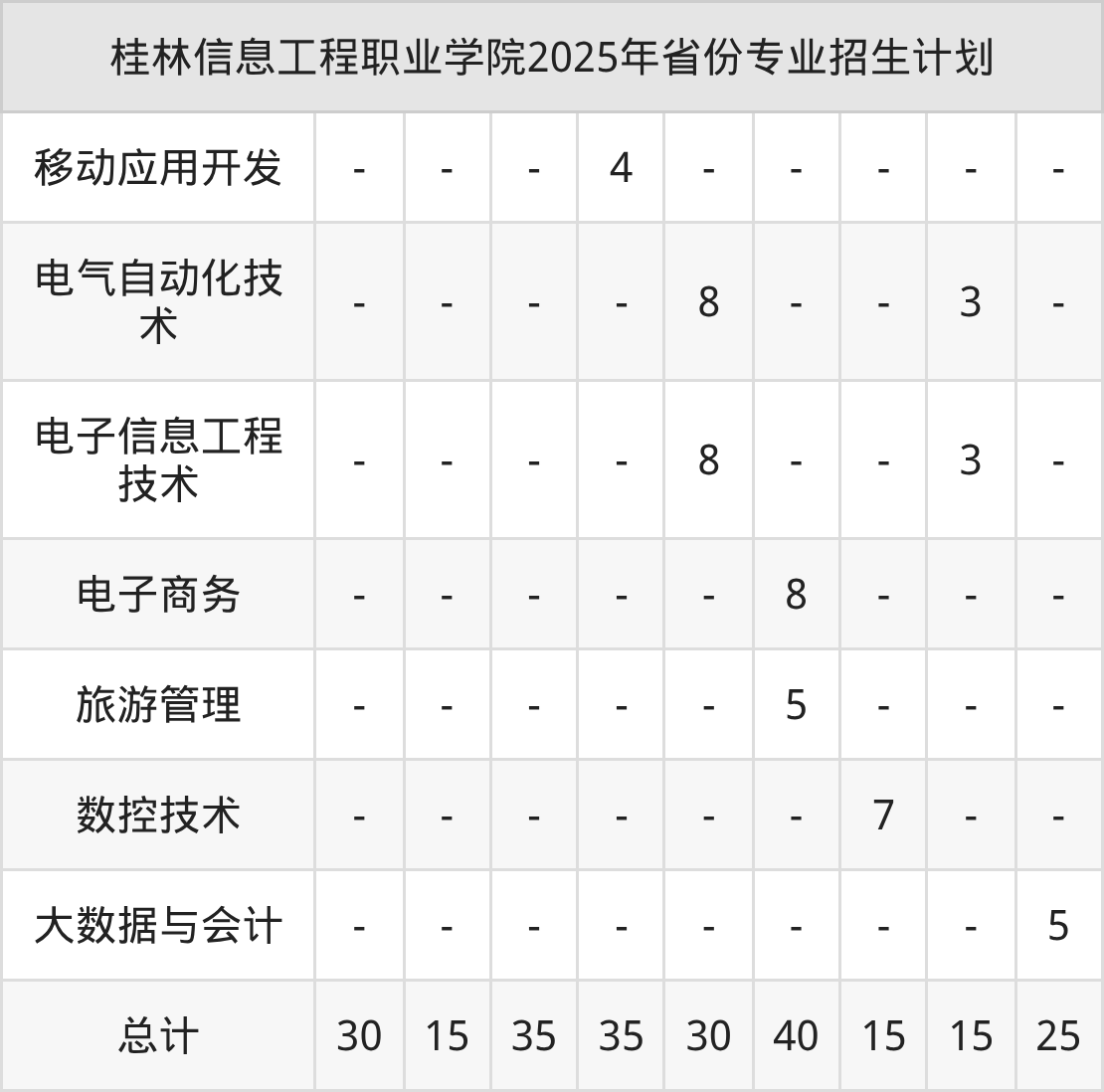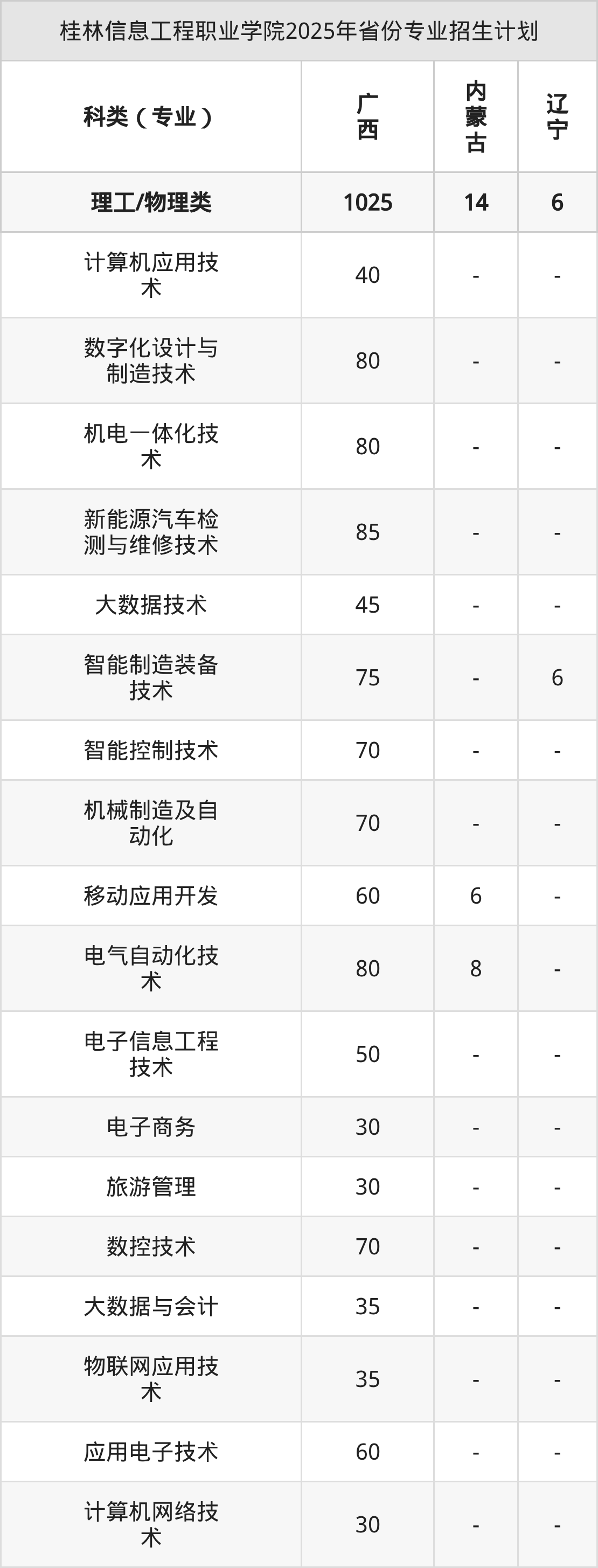 2026年桂林信息工程职业学院专科招生计划待公布,下面附上2025年数据,暂供参考: